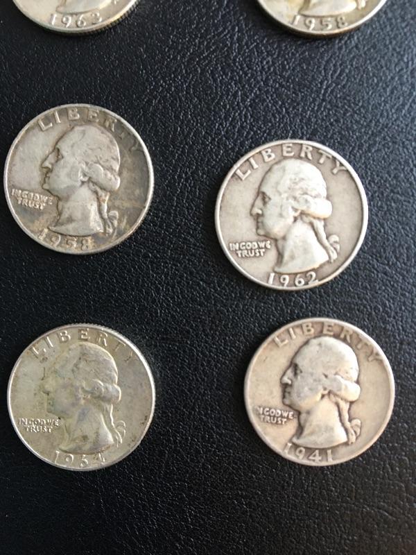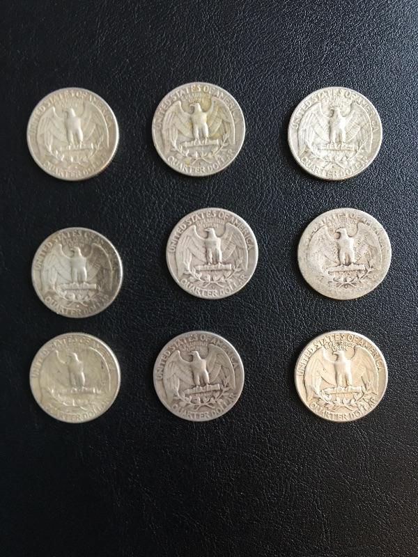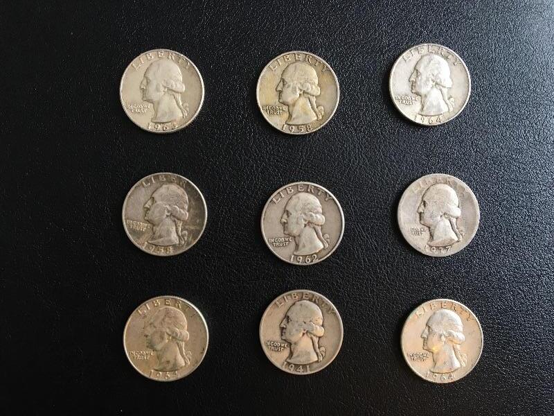 Collection of 9 Vintage Silver Quarters Pre 1965