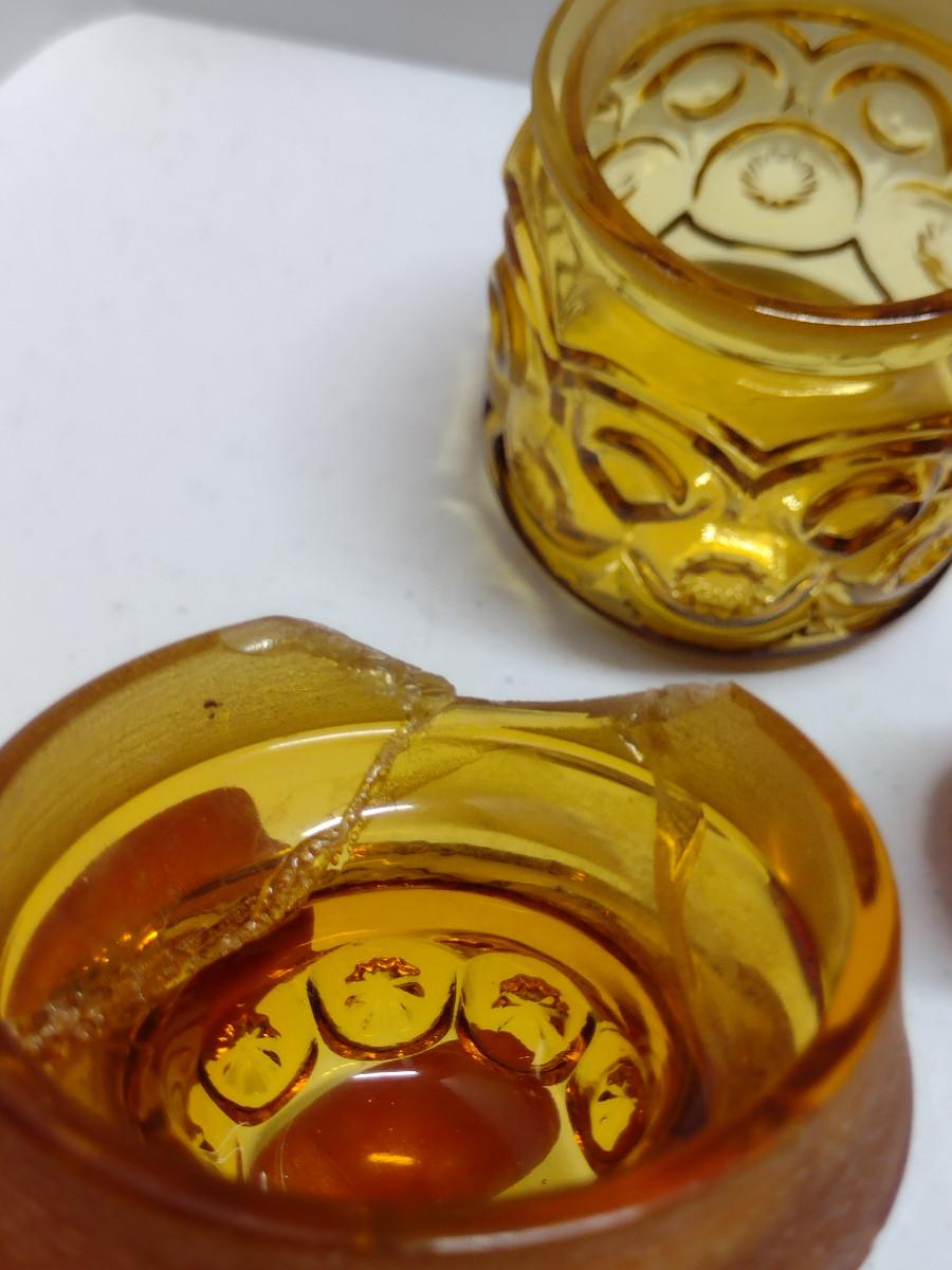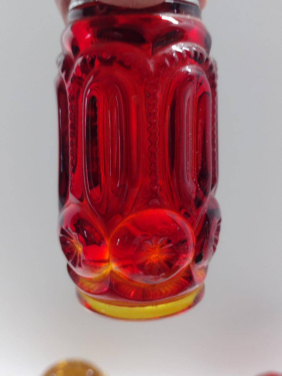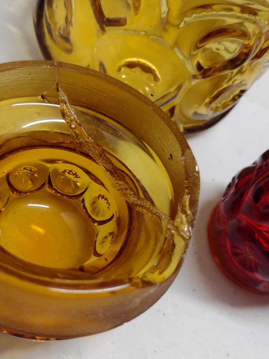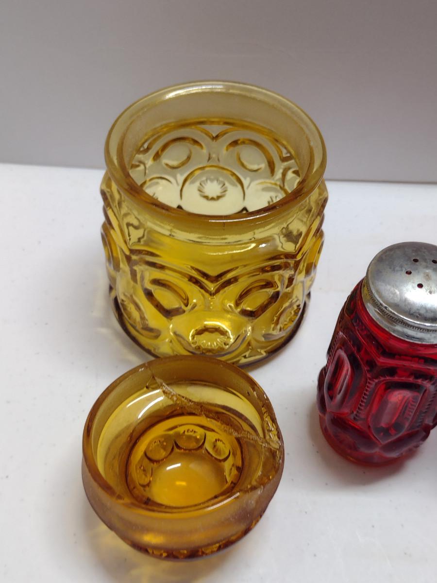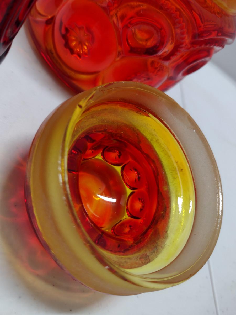 Collection of Amber and Amberina Glass- LE Smith Moon and Stars. Amber canister has damaged lid- please see all pictures. Amberina canister has chipped lid.