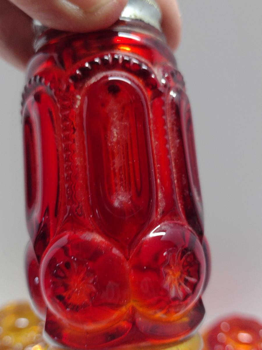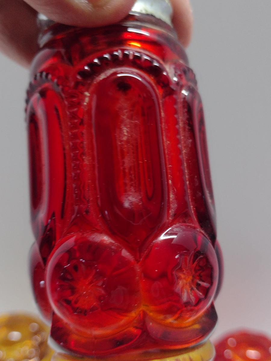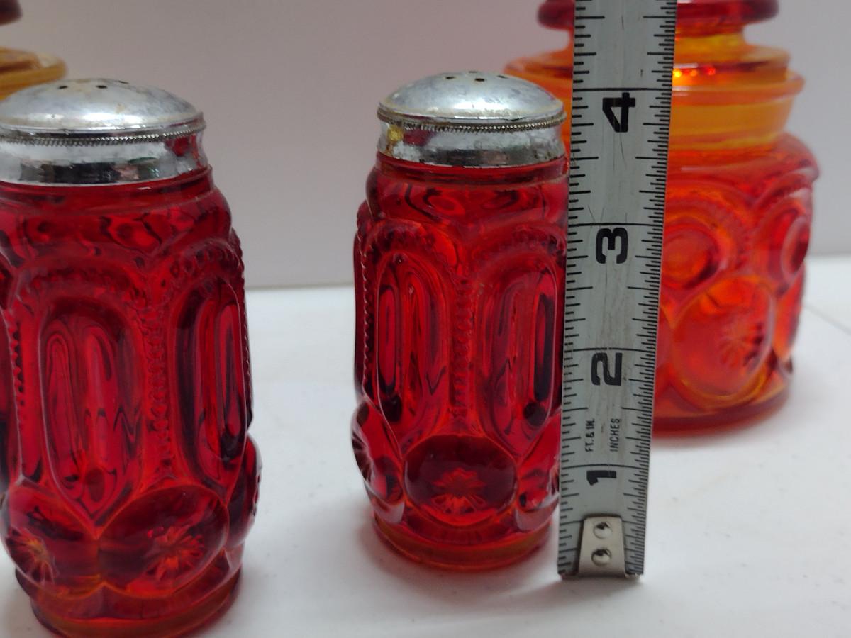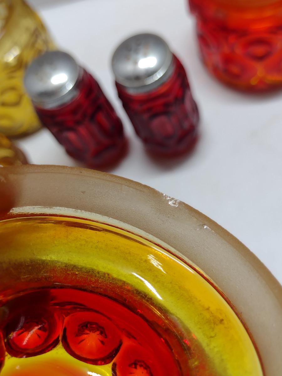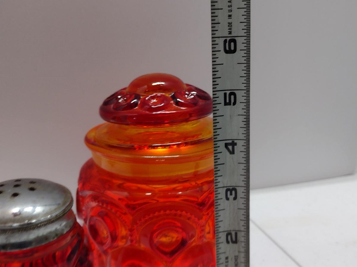 Collection of Amber and Amberina Glass- LE Smith Moon and Stars- Two Canisters and Salt & Pepper Shakers