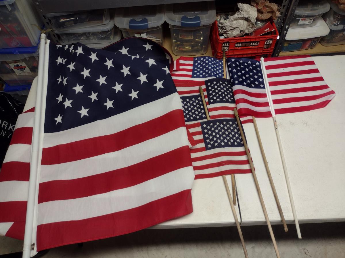 Collection of American Flags. Largest is approx 60" x 34 1/2".