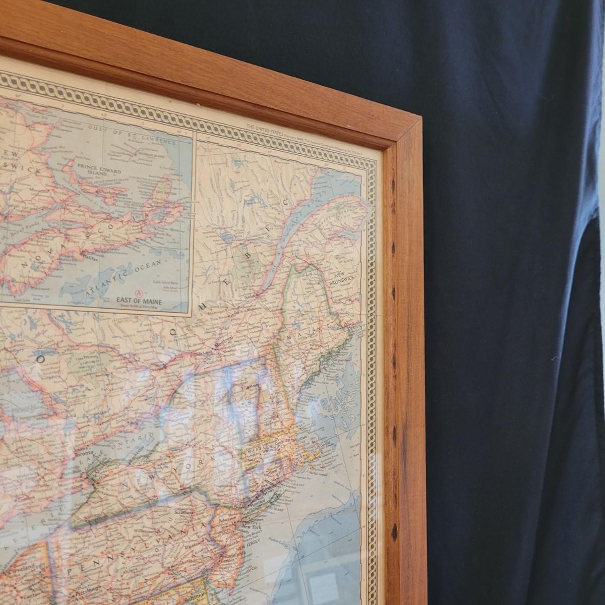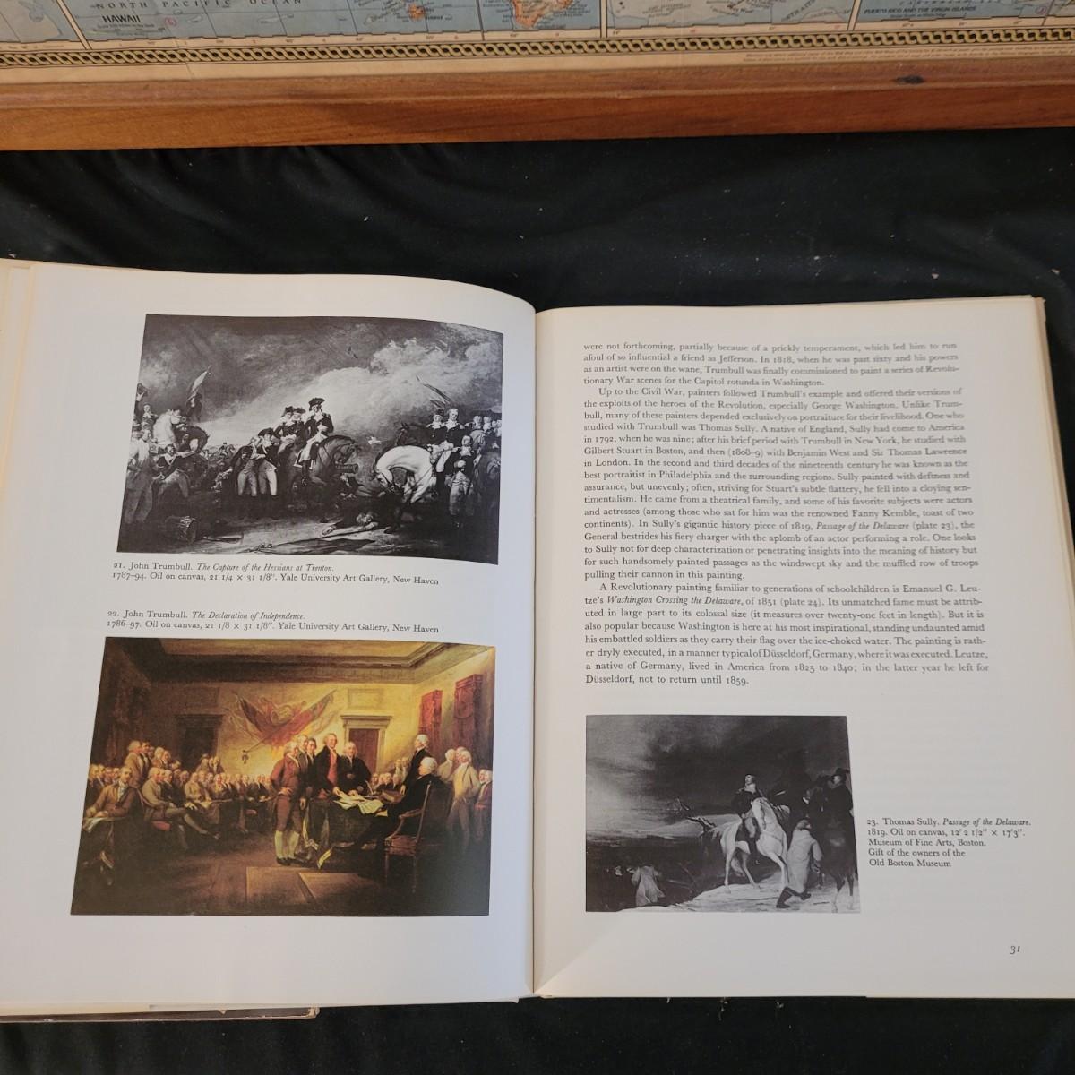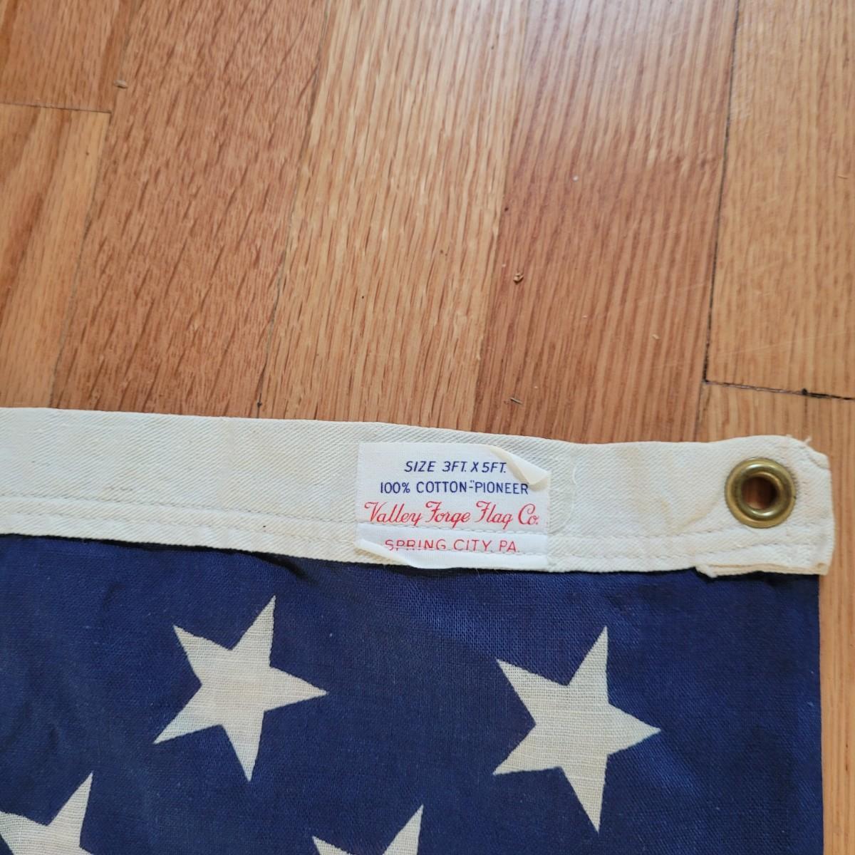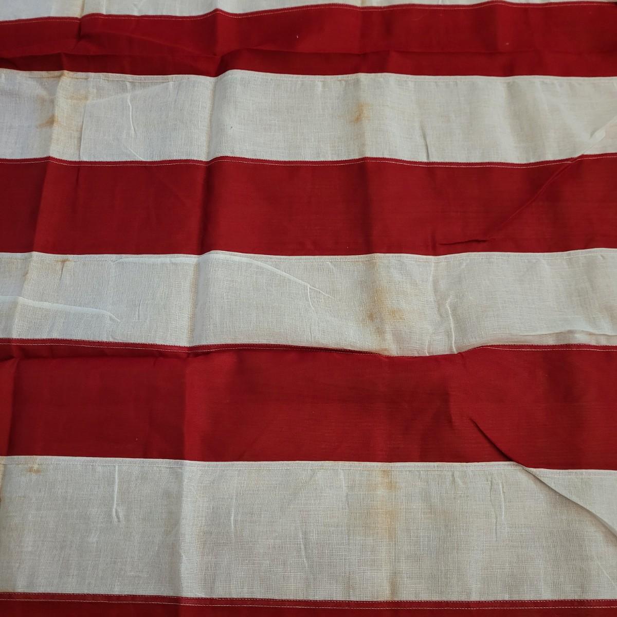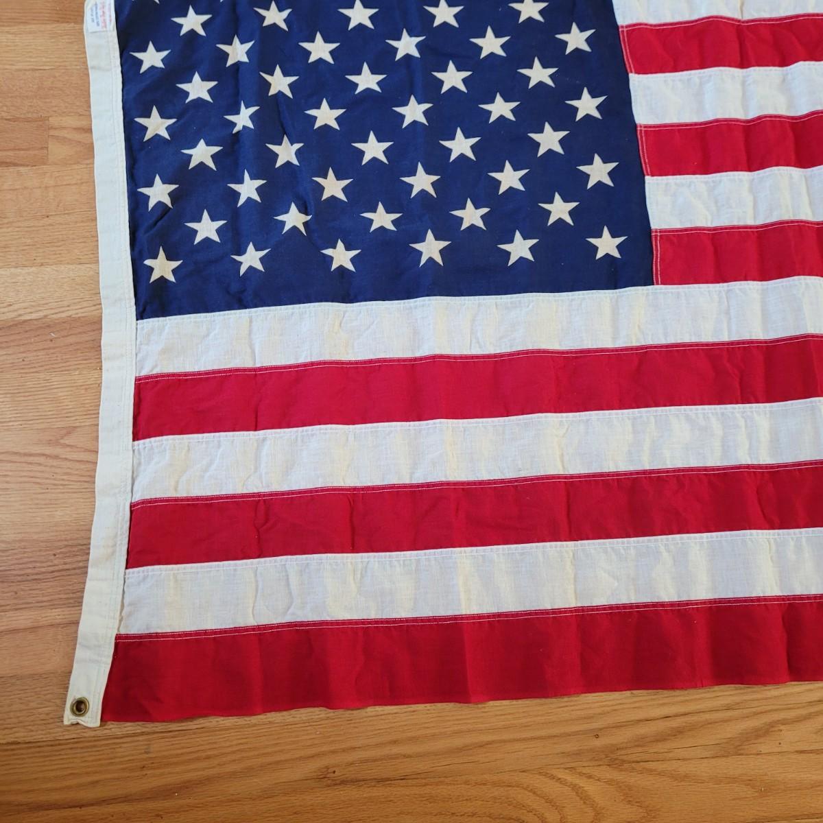 Americana collection includes a large 32"L x45"W solid wooden framed map of the U.S. Frame is heavy and has hardware attached to the top for hanging. Other items include a large 5' x9.5' flag, a flag kit with a smaller 3' x5' flag, a Revolutionary War themed jar, books and mirror with wooden eagle engraving. Jar measures approximately 6"DIA x10.5"H. The large flag is structurally in good condition, but does have some discoloration. Same with the smaller flag, but it shows much less discoloration. Local pickup only.