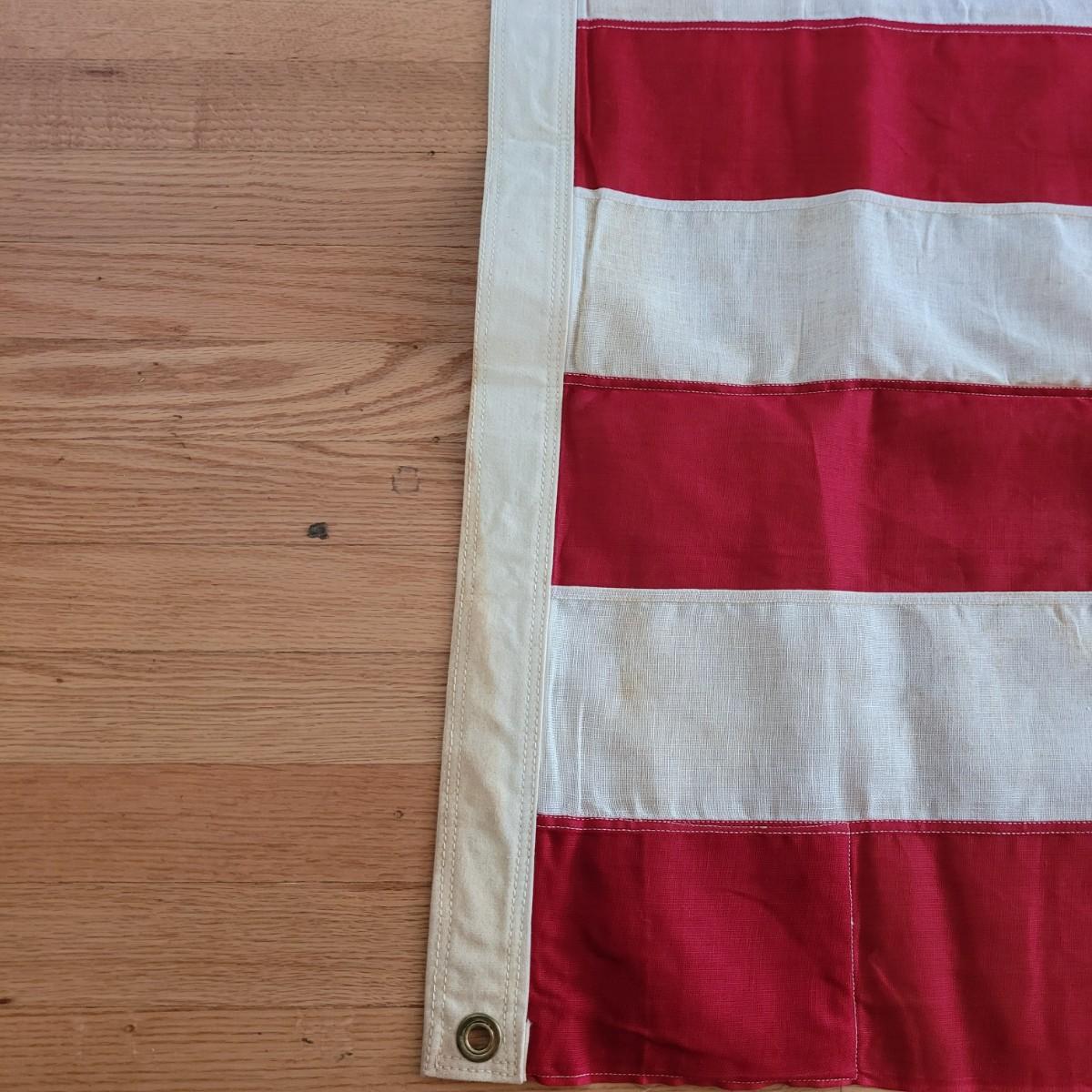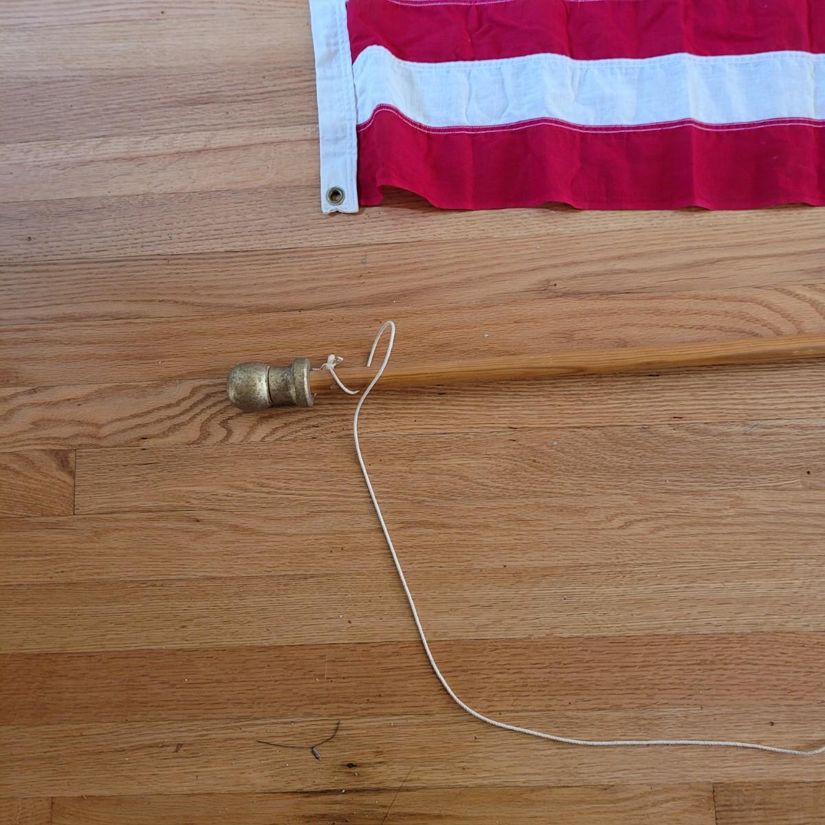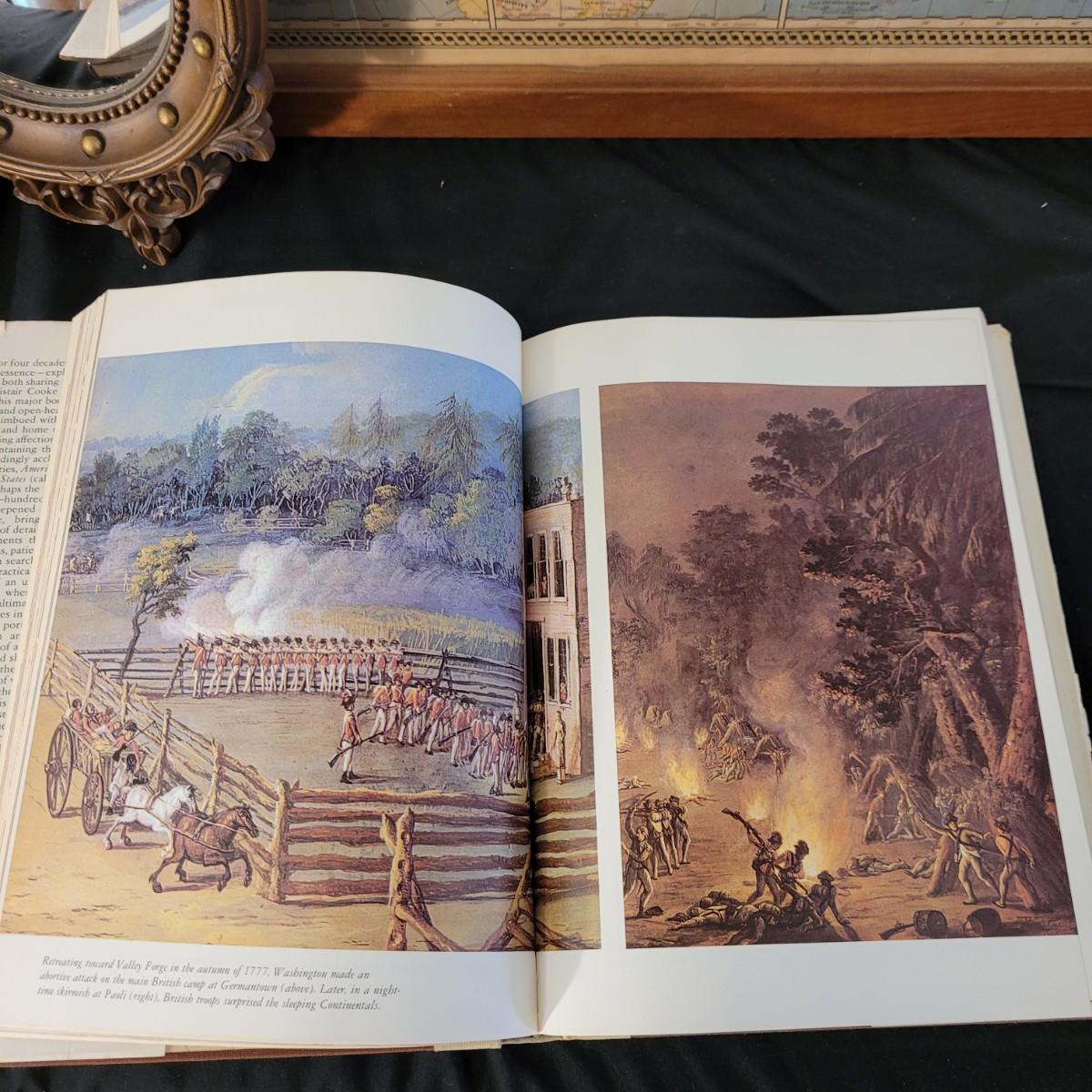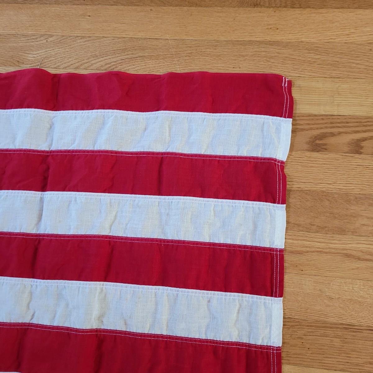 Americana collection includes a large 32"L x45"W solid wooden framed map of the U.S. Frame is heavy and has hardware attached to the top for hanging. Other items include a large 5' x9.5' flag, a flag kit with a smaller 3' x5' flag, a Revolutionary War themed jar, books and mirror with wooden eagle engraving. Jar measures approximately 6"DIA x10.5"H. The large flag is structurally in good condition, but does have some discoloration. Same with the smaller flag, but it shows much less discoloration. Local pickup only.