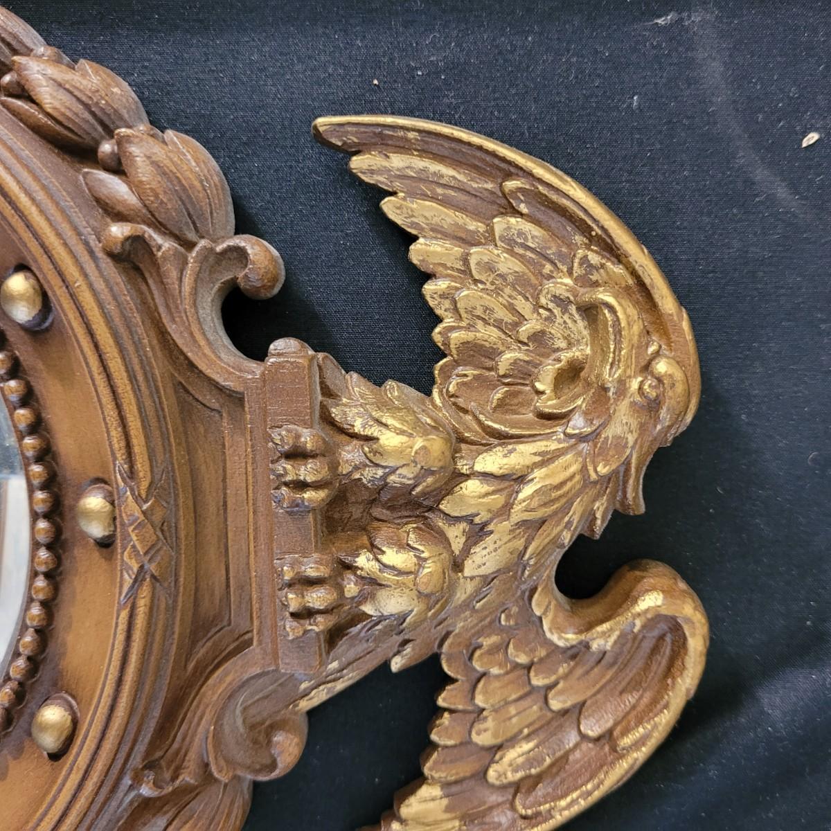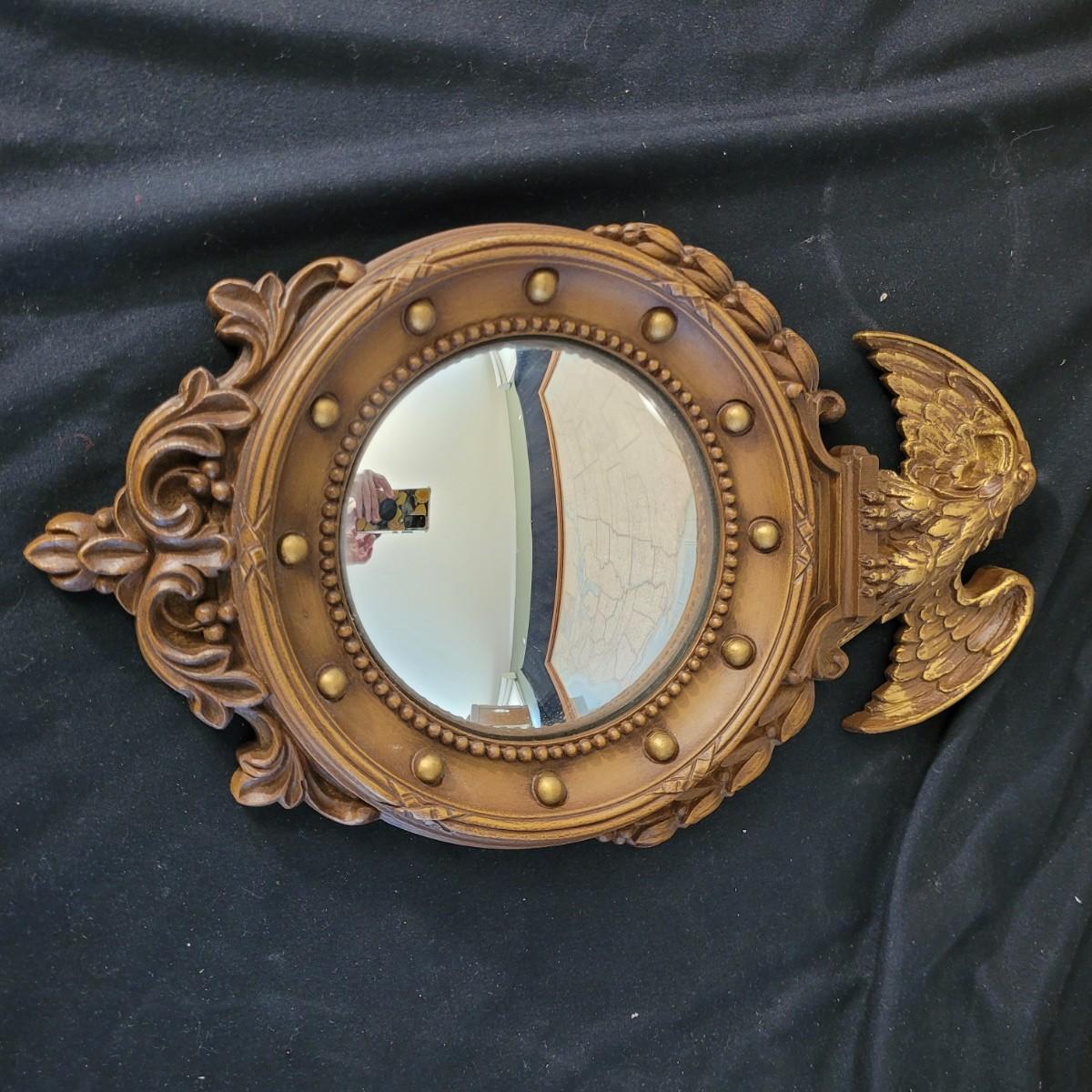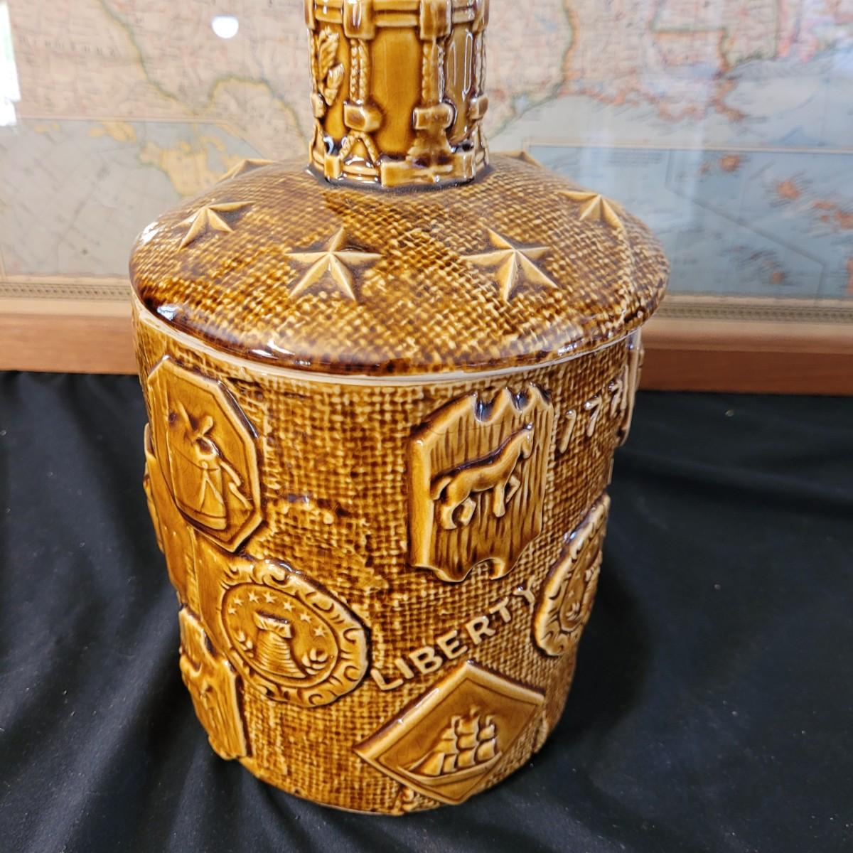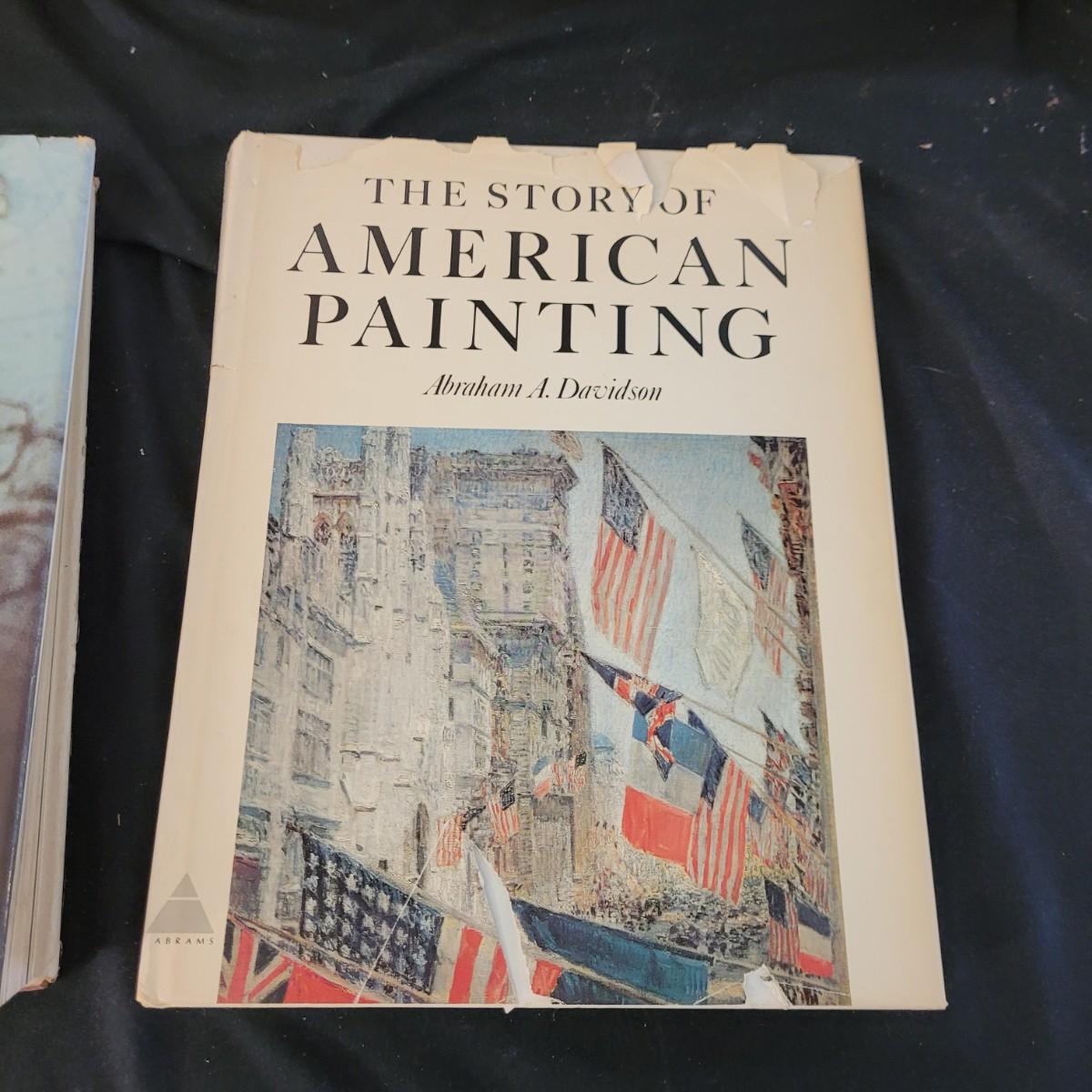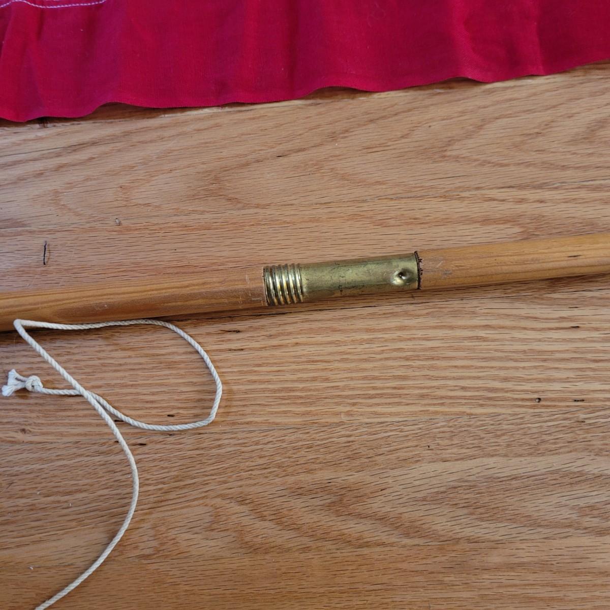 Americana collection includes a large 32"L x45"W solid wooden framed map of the U.S. Frame is heavy and has hardware attached to the top for hanging. Other items include a large 5' x9.5' flag, a flag kit with a smaller 3' x5' flag, a Revolutionary War themed jar, books and mirror with wooden eagle engraving. Jar measures approximately 6"DIA x10.5"H. The large flag is structurally in good condition, but does have some discoloration. Same with the smaller flag, but it shows much less discoloration. Local pickup only.