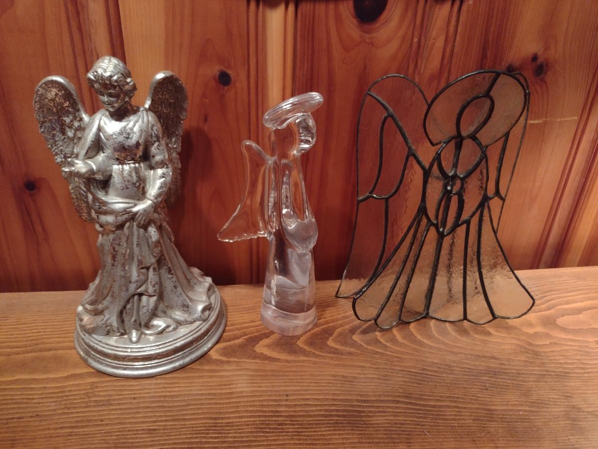Collection of Angel Figurines- Stained Glass, Molded Glass and Department 56.
