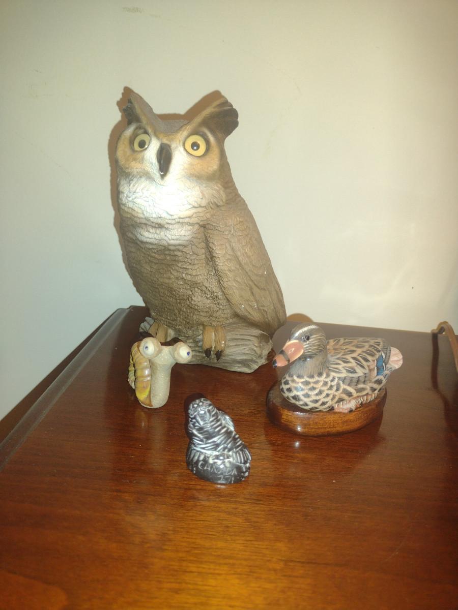 Collection of Animal Figurines. Owl is Sandicast.