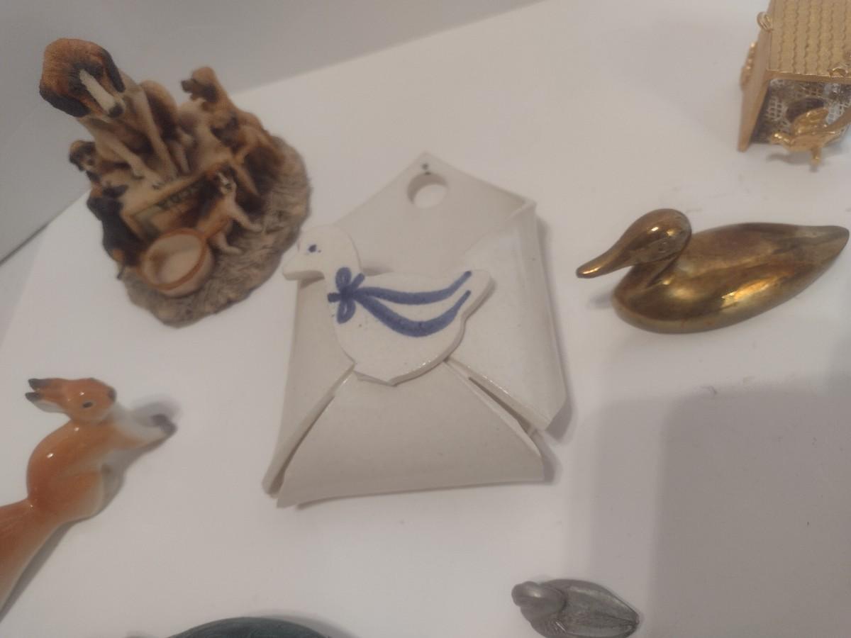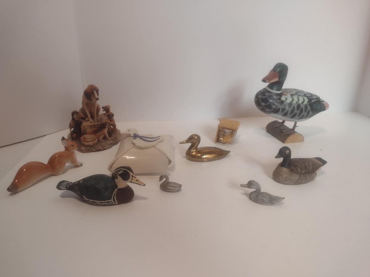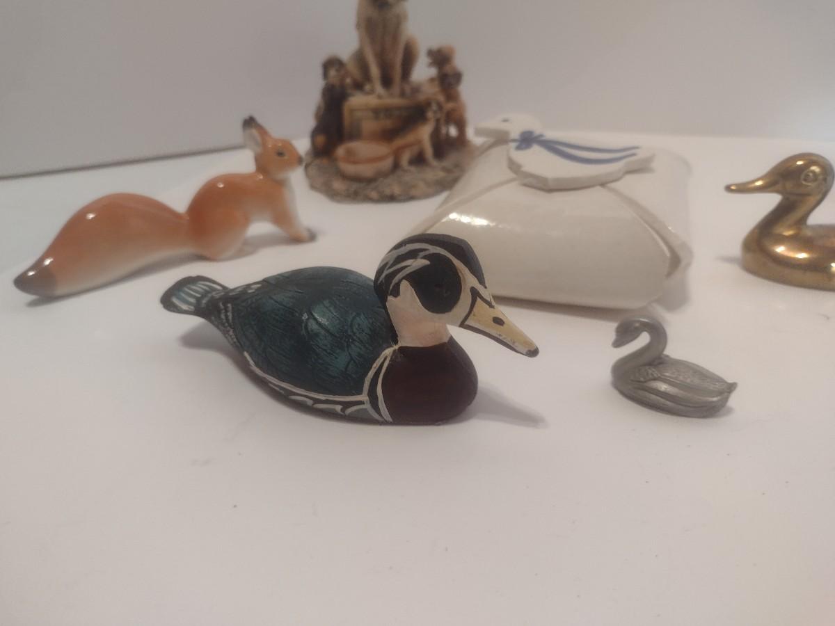 Collection of Animal Figurines Ceramic, Wood, Pewter, Brass