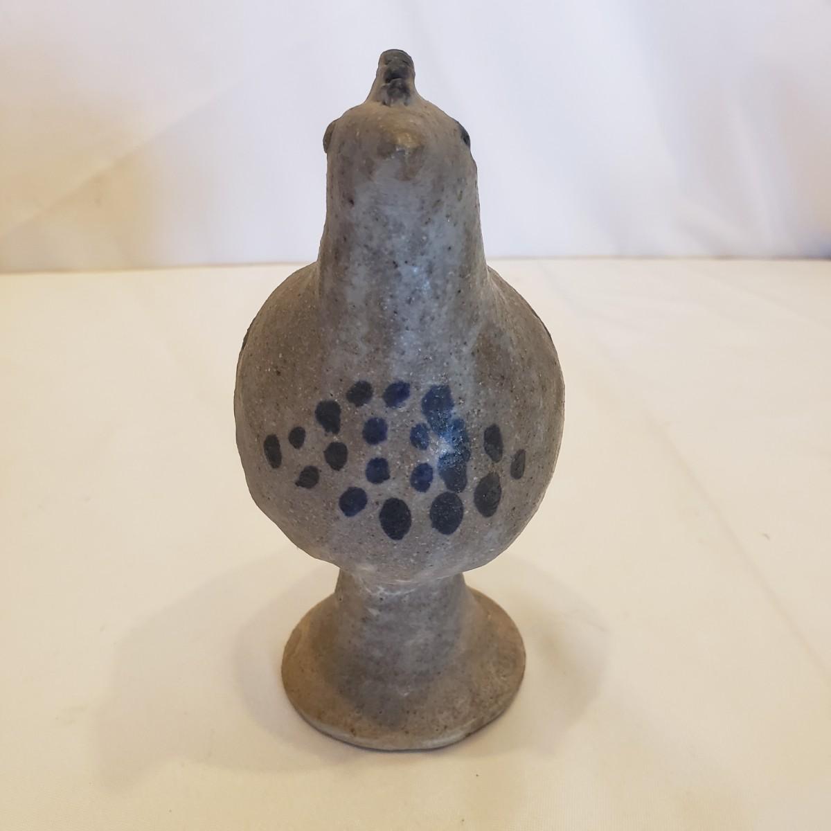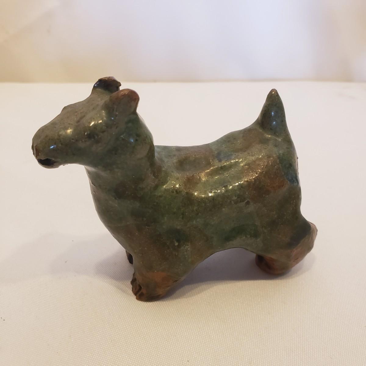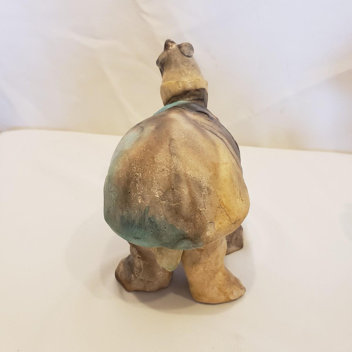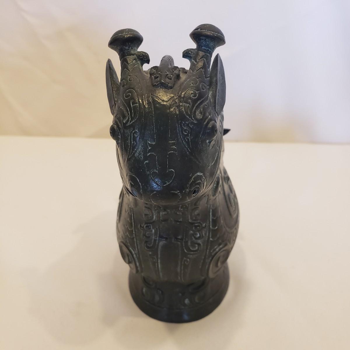 This animal themed lot features seven pieces of art. Lot includes a pottery turtle, owl, dog and bird, while the horse and bird on a marble block are metal. The bird has a tag from Alva Museum Replicas. The walrus appears to be signed by Inuit artist Peter Parr. The metal horse-like creature is stamped; it has a removable lid and measures 7" x 3" x 7"H. The owl has a hole for a possible incense stick.