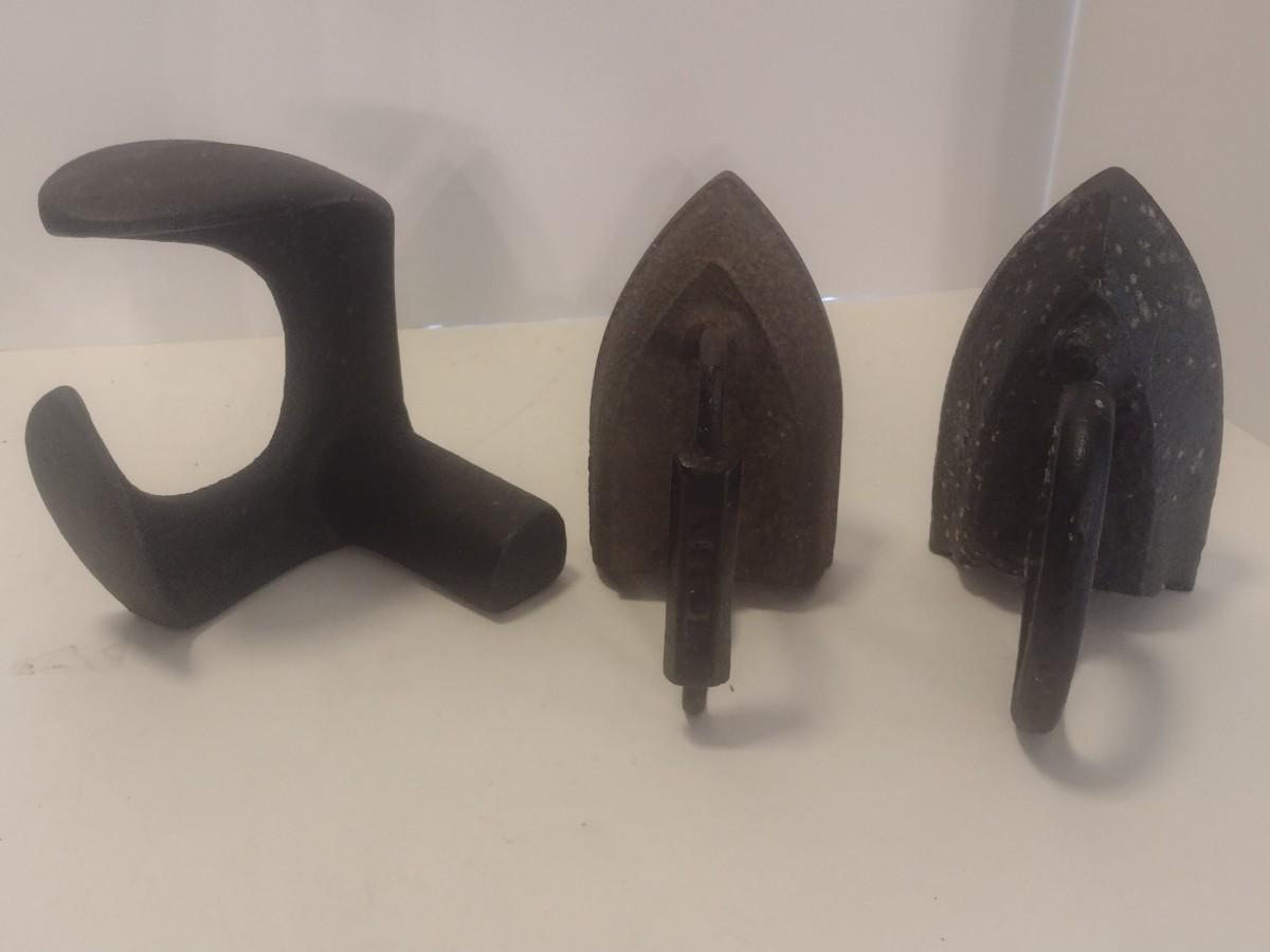 Collection of Antique Cast Iron Sad Irons and Cobblers Anvil