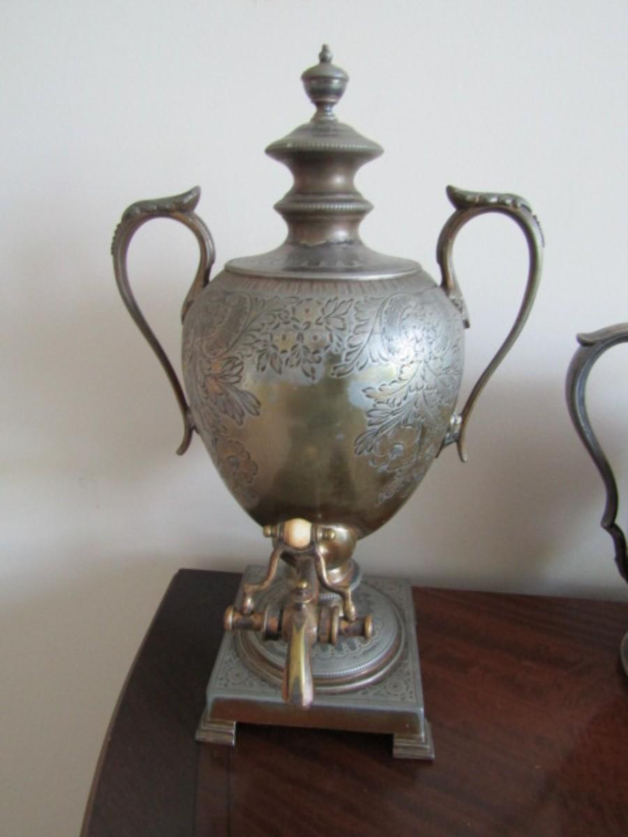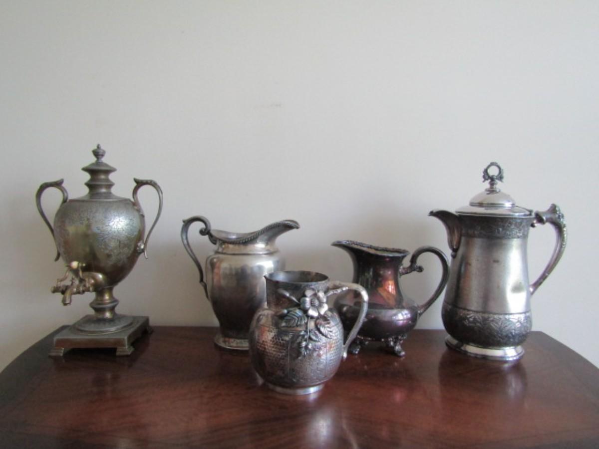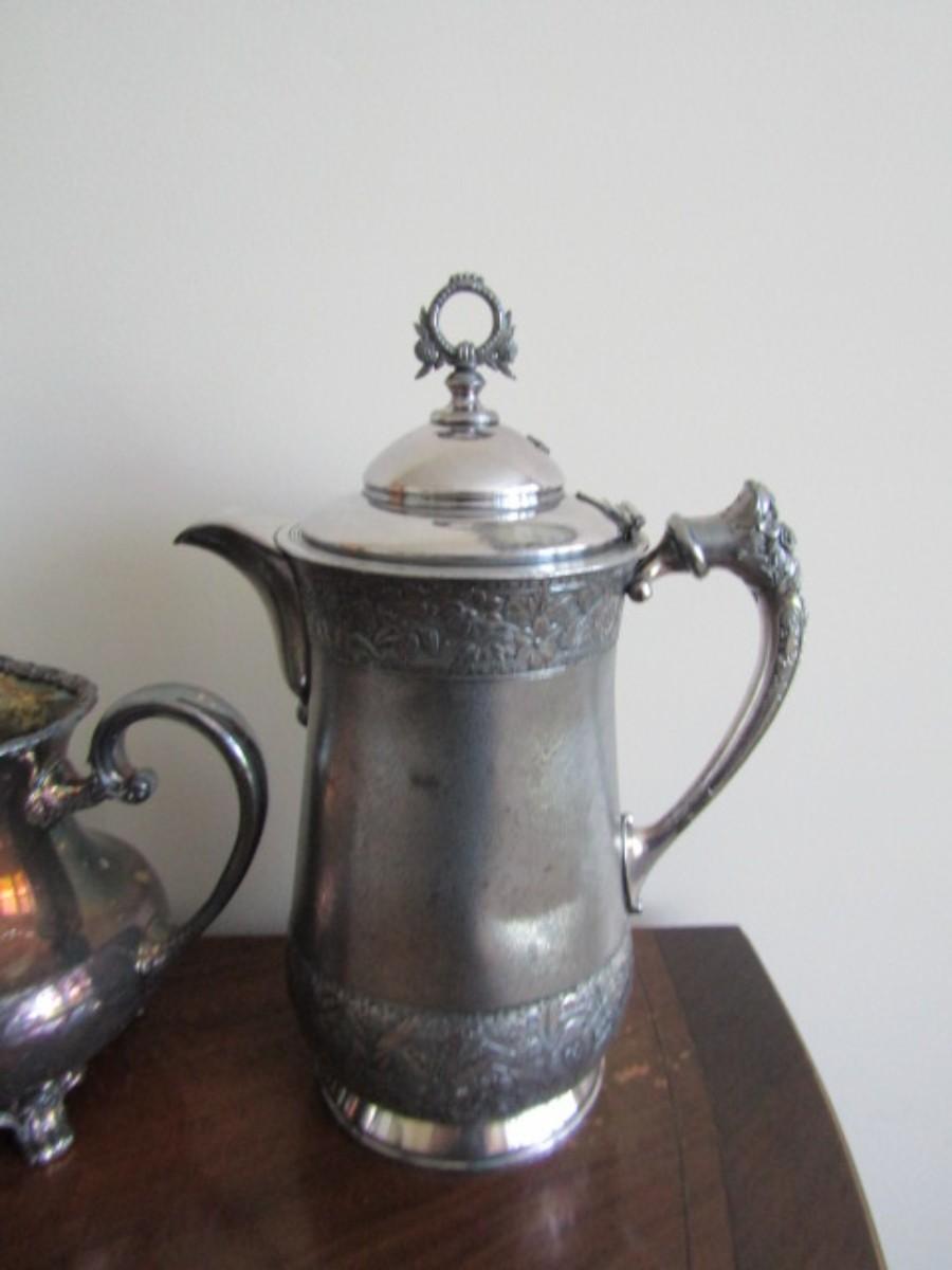 Collection of Antique Silver-Plate Coffee and Pitcher Serving Pieces (#9)