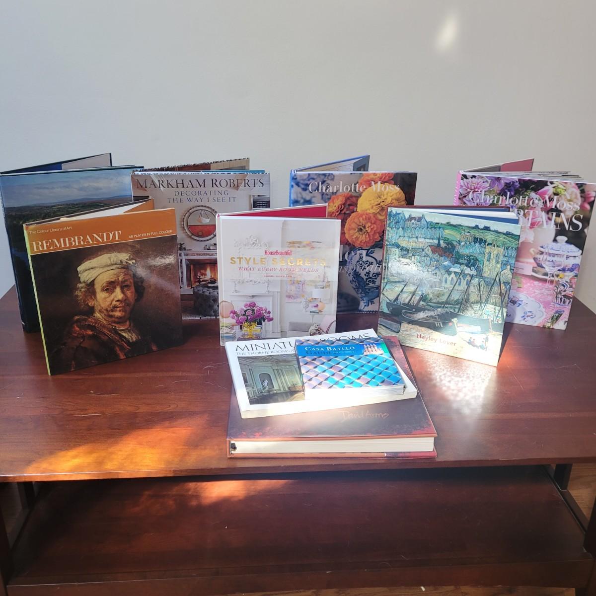 This collection of art books includes Charlotte Moss books on entertaining and gardening, home decor and styling. Artist’s works including Hayley Lever, Rembrandt and David Arms, and more. Shipping available.