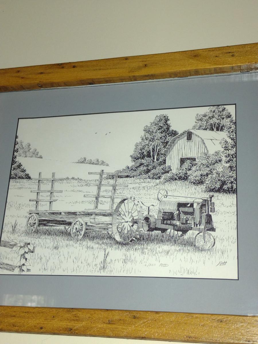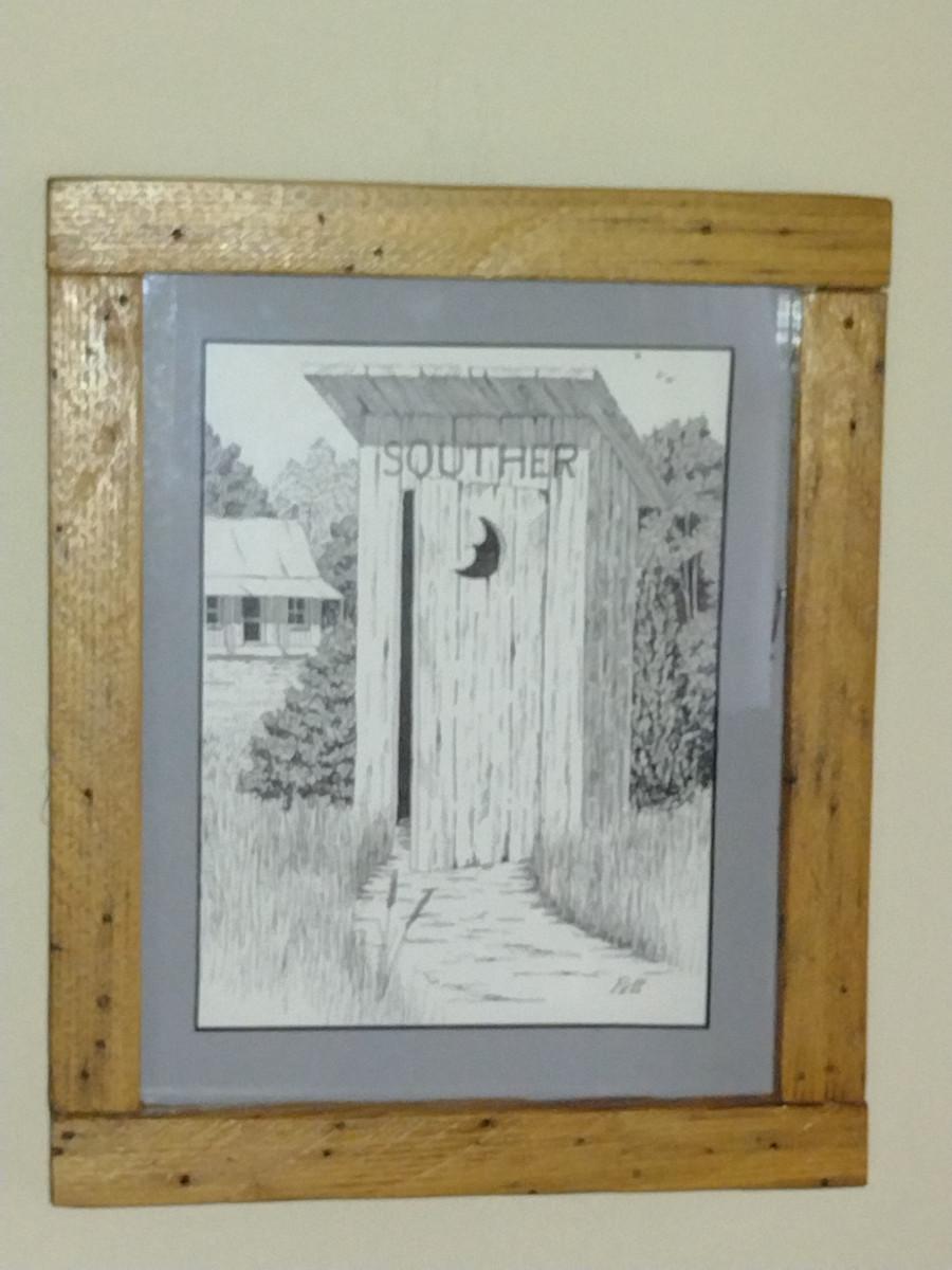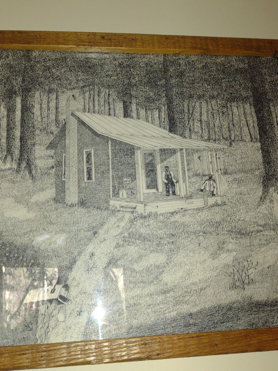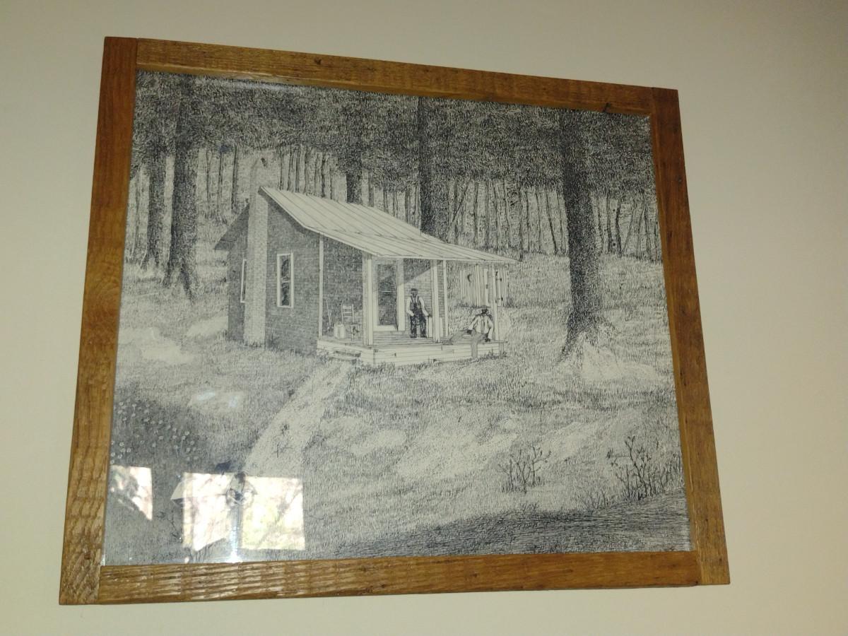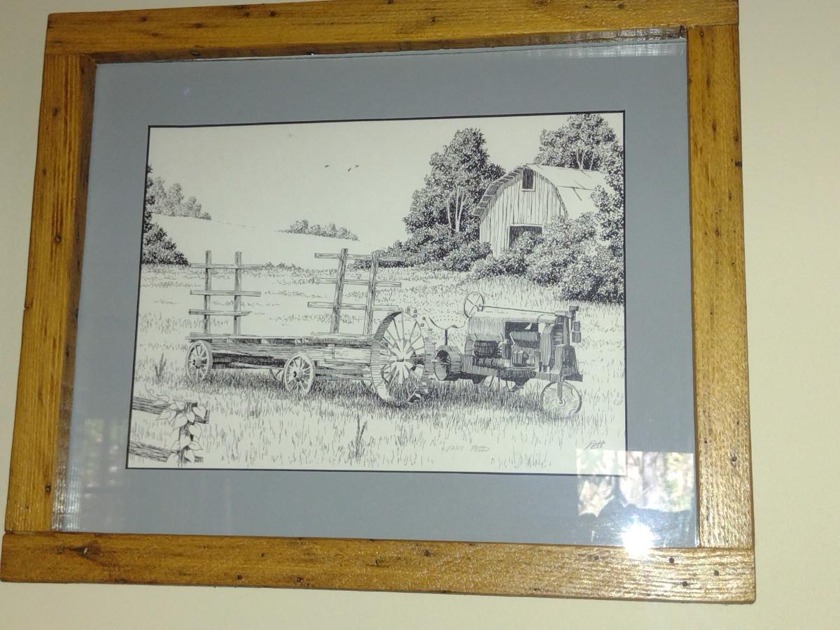 Collection of Art in Wooden Frames- Farm, Cabin, Outhouse