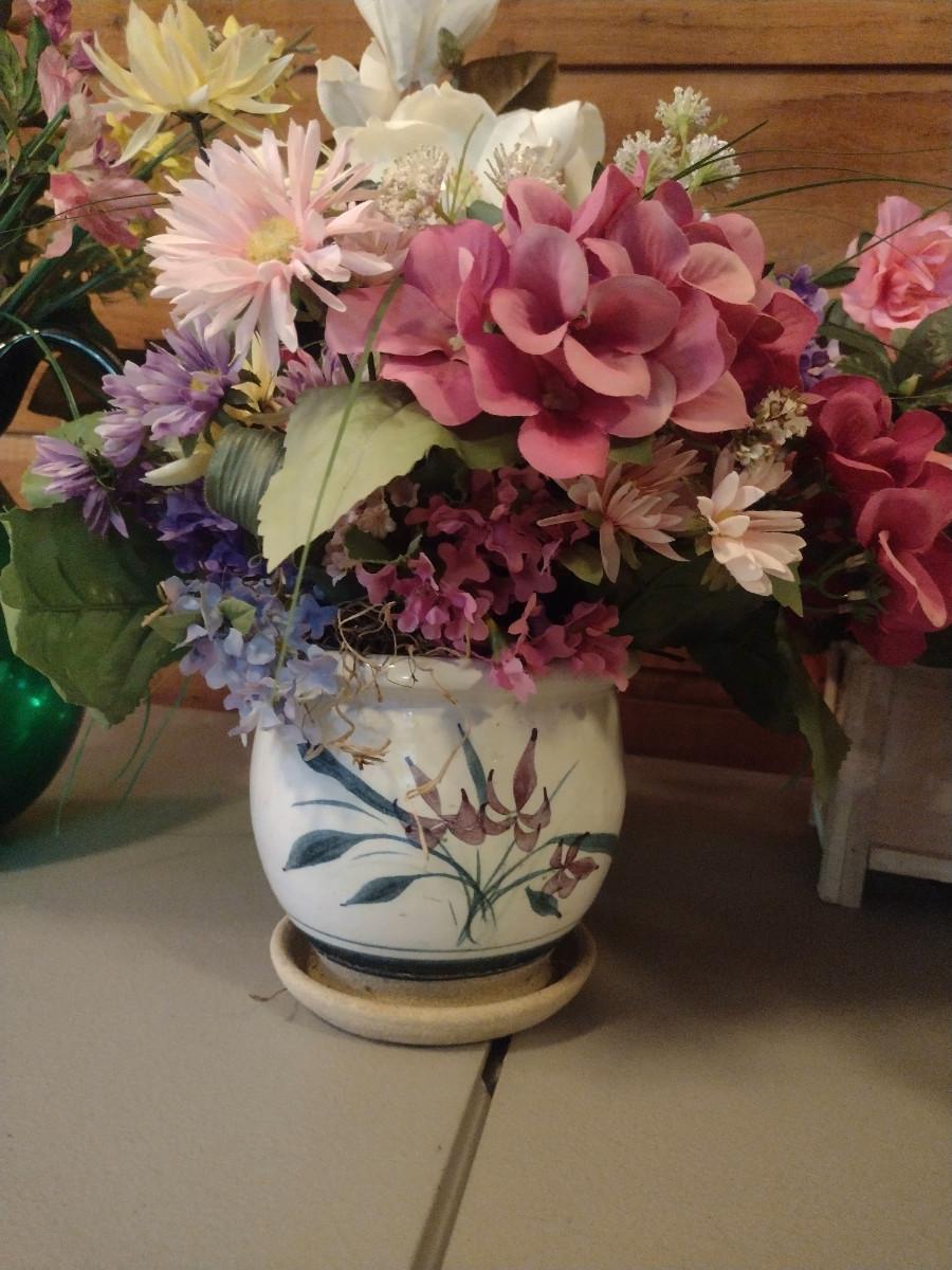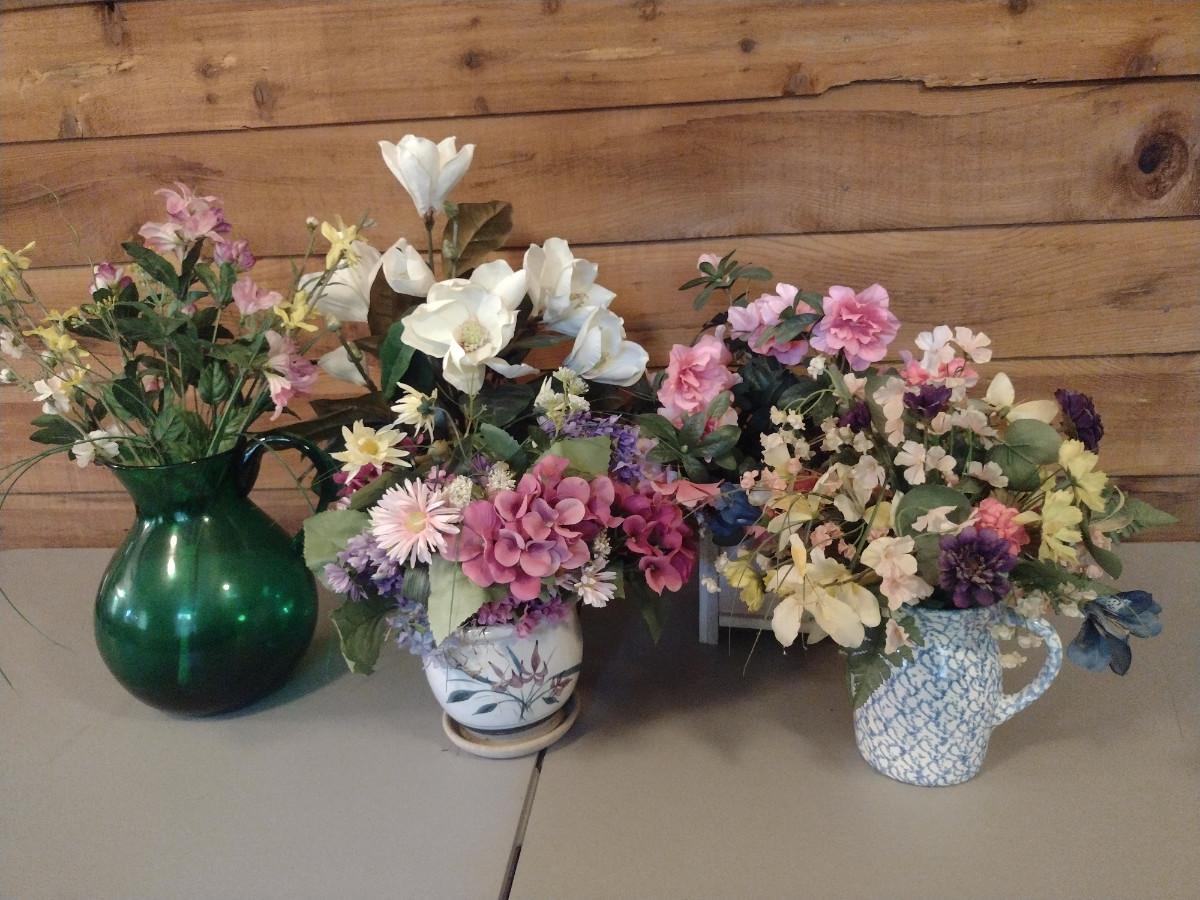 Collection of Artificial Flower Arrangements. Please see all pictures for selection. Some are in nice, ceramic planters/pots.
