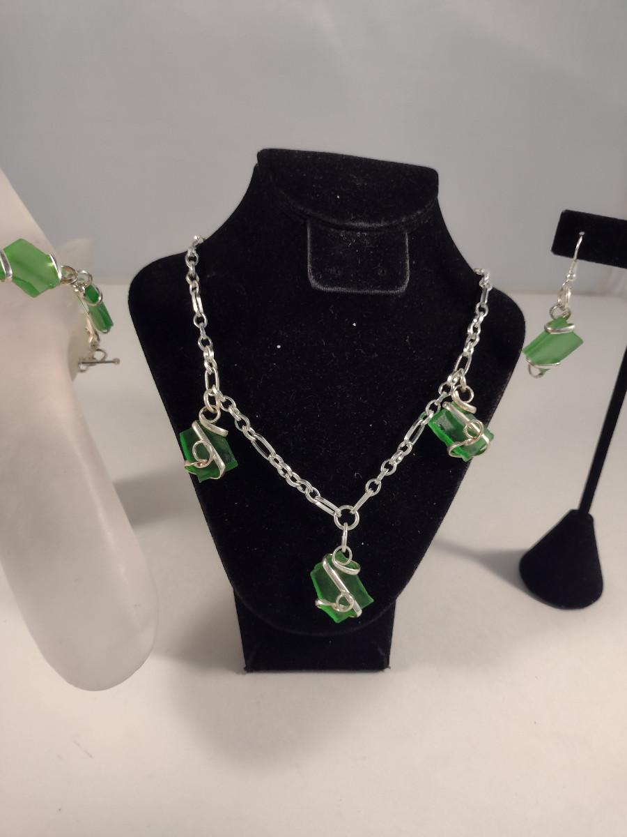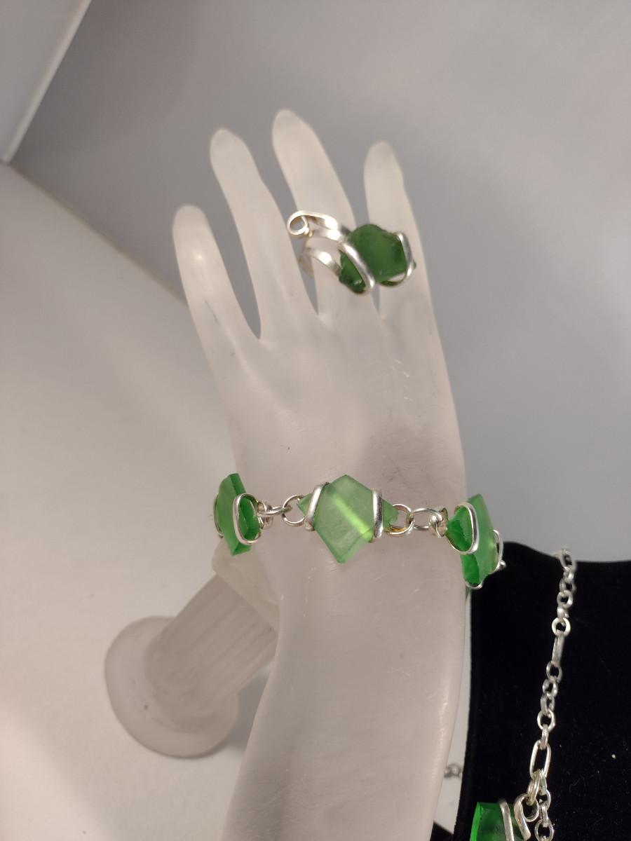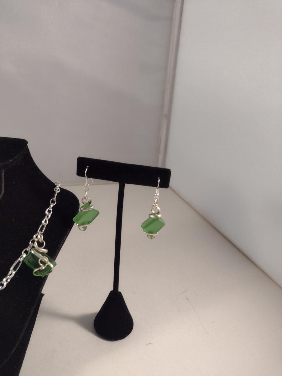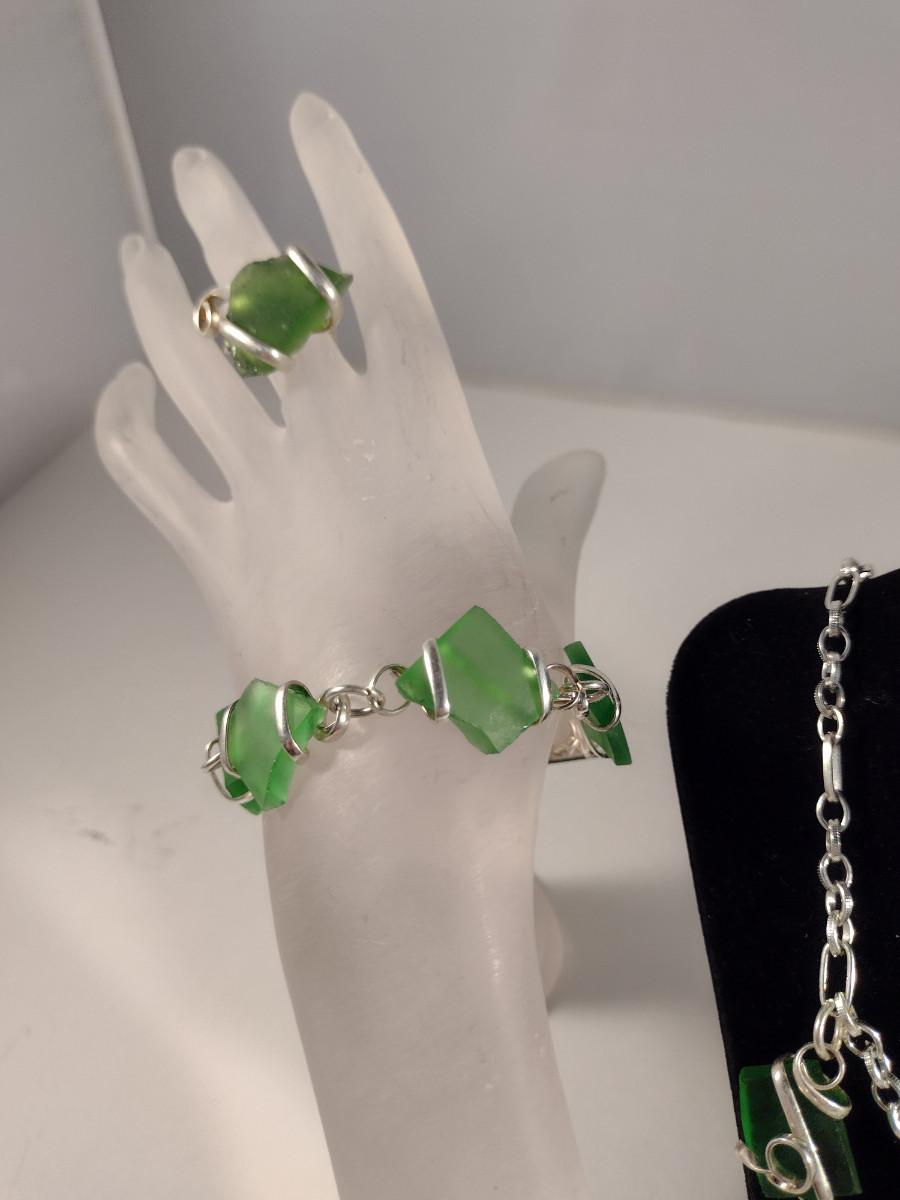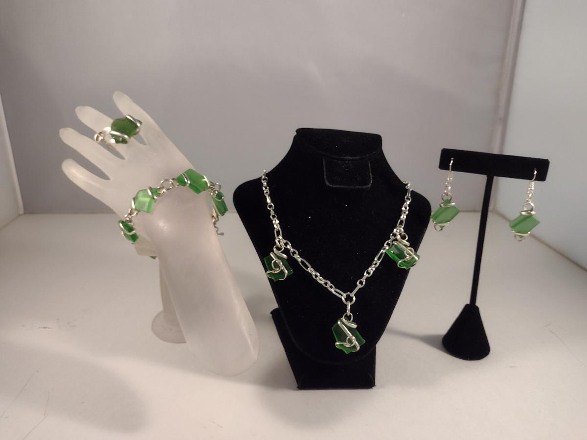 Collection of Artisan Made Green Sea Glass Jewelry (#13)