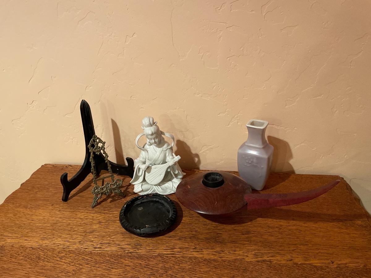 #280 Collection of Asian Smalls Vase Ikebana Wood Frog, Etc Lot of 6