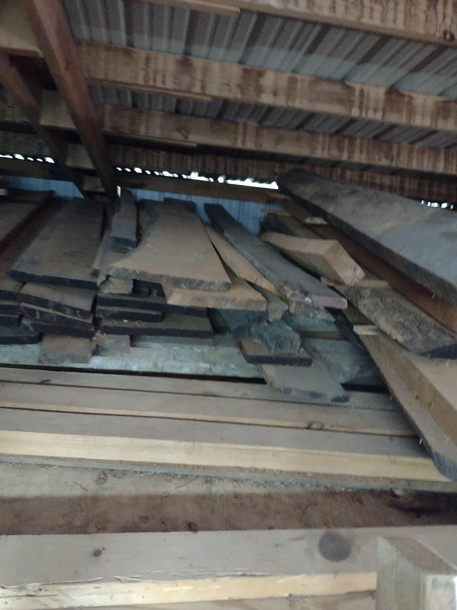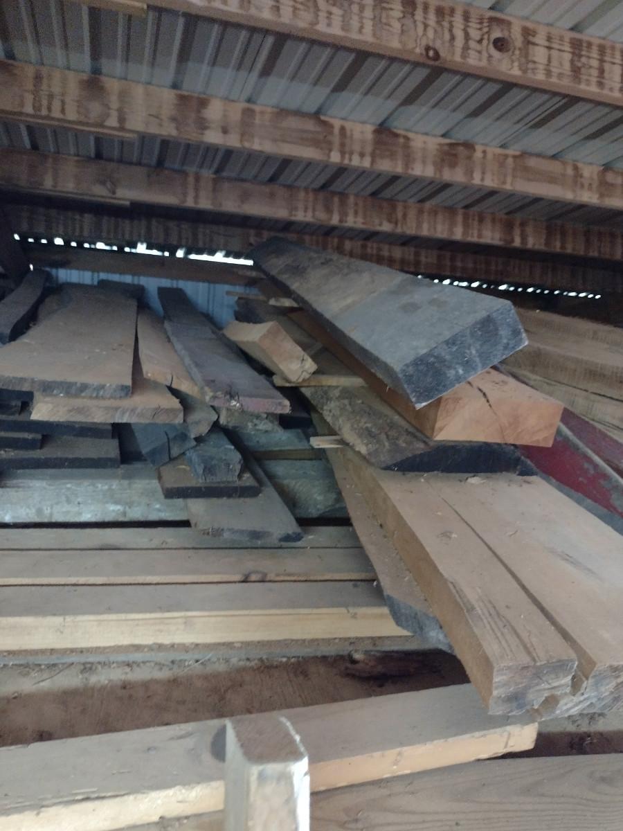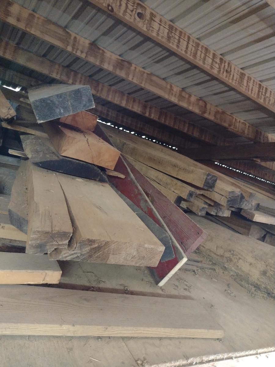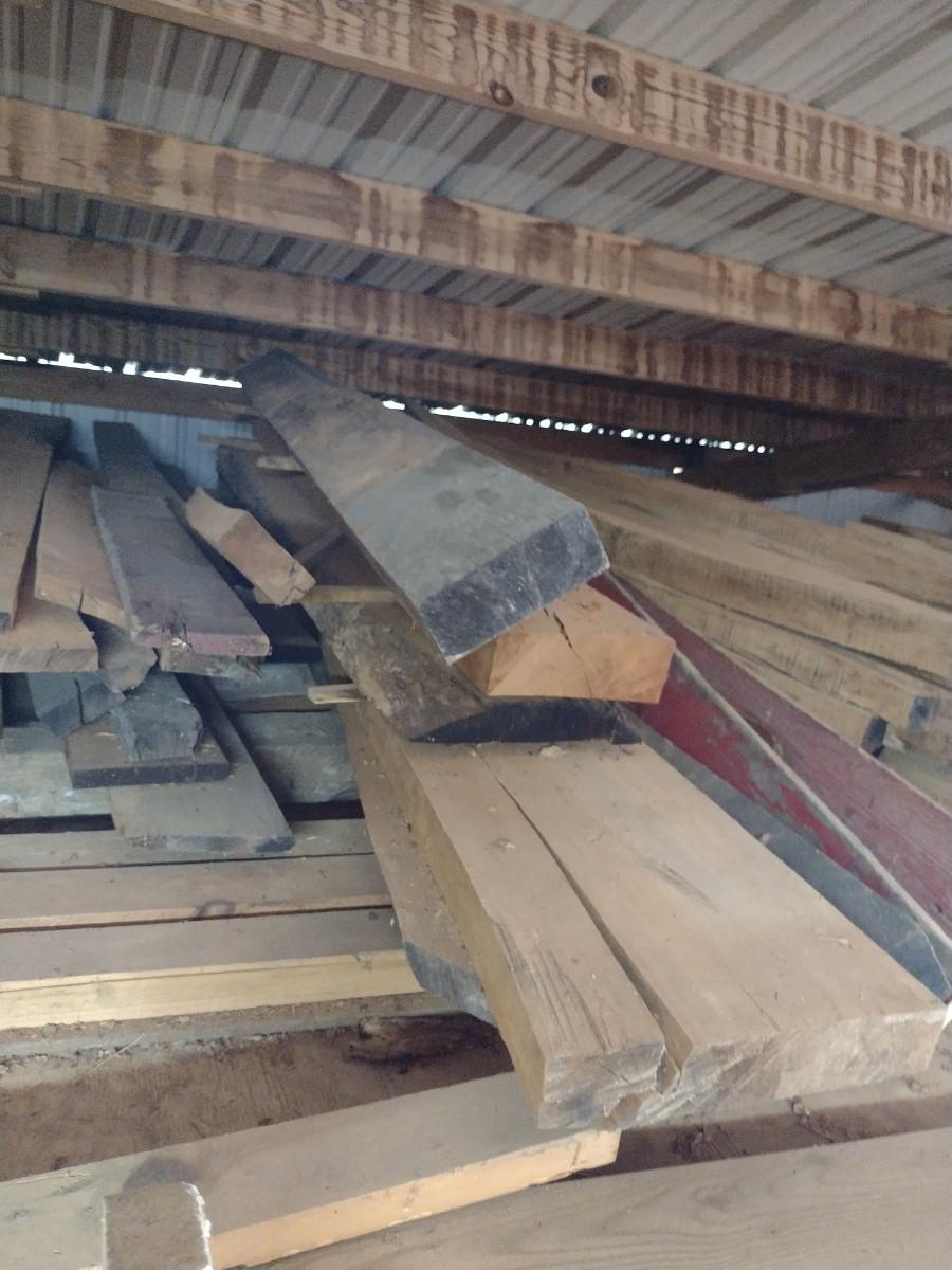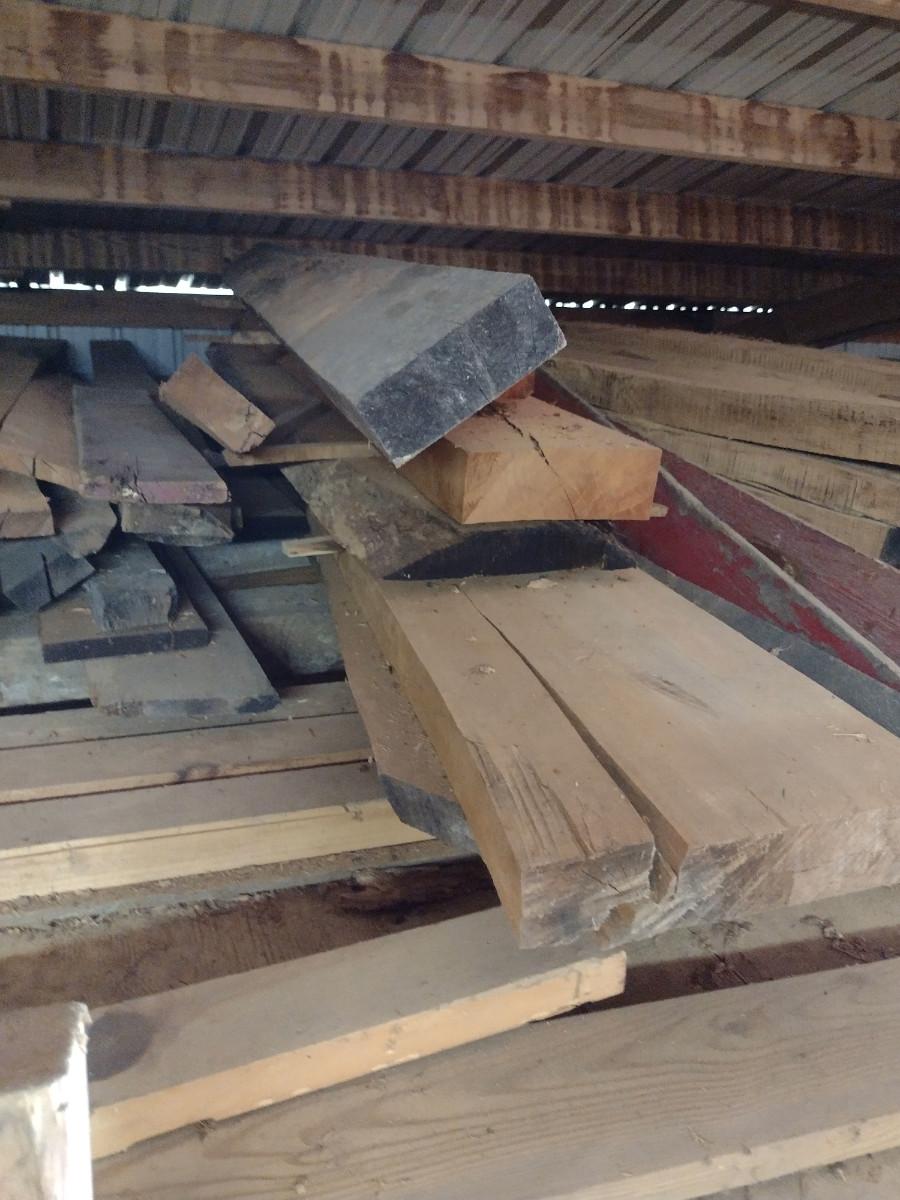 Collection of Assorted Milled Wood Planks (Center Section). Variety of lengths, widths, and thicknesses. Some live edge. These planks are in loft of barn and will require two people to remove
