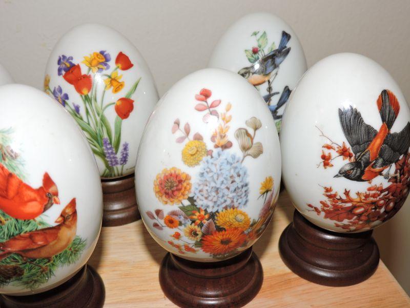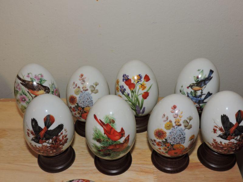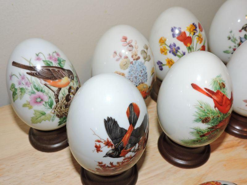 Collection of 8 Avon decorative eggs with stands. **Please read Terms and Conditions before placing a bid. Pick up is Thursday, August 15, 2019 from 4pm to 7pm or Sunday, August 18 from 11am-2pm in Mullica Hill. All sales are final. All sales are as is, where is. Please review all photos. Any props included in photos are not included in listing. All measurements are approximate.