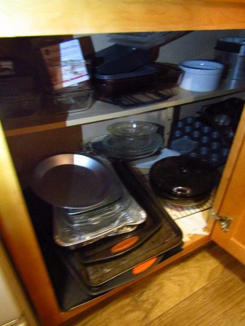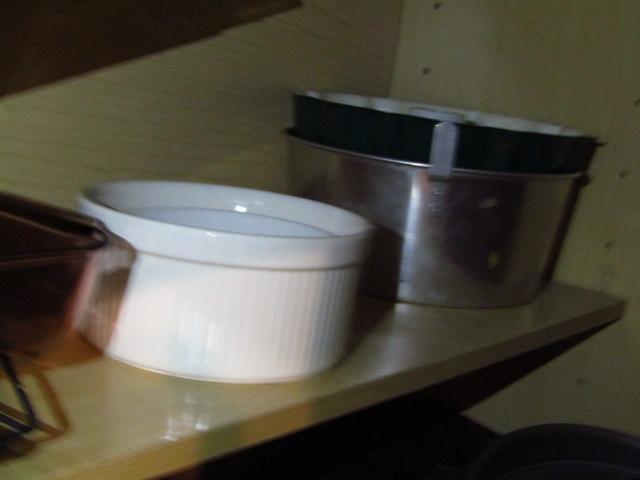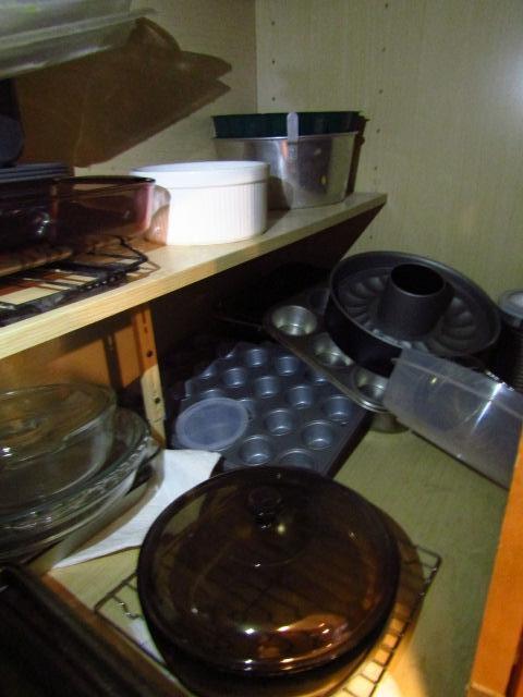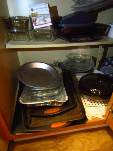Collection of Bakeware. Glass and metal pans, cooling racks, strainers, etc. Very good selection.