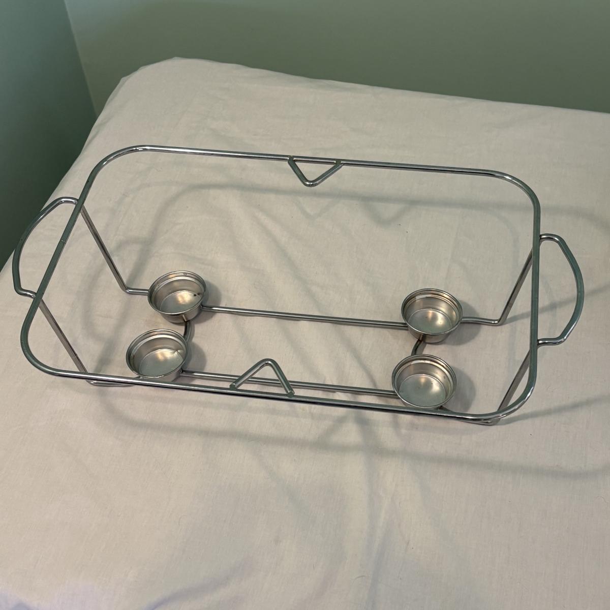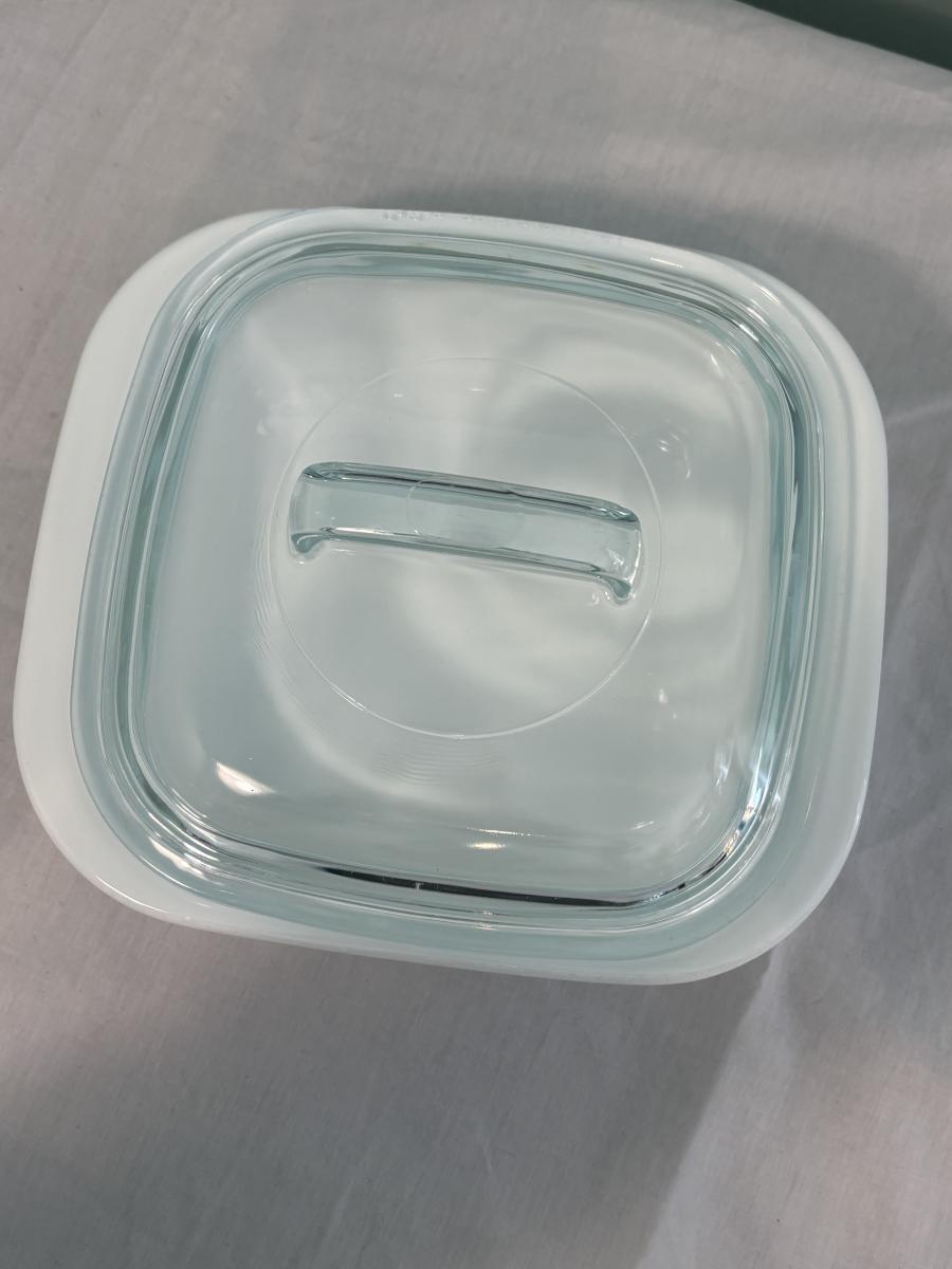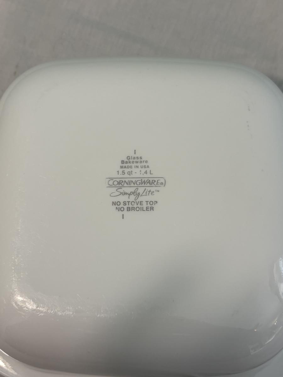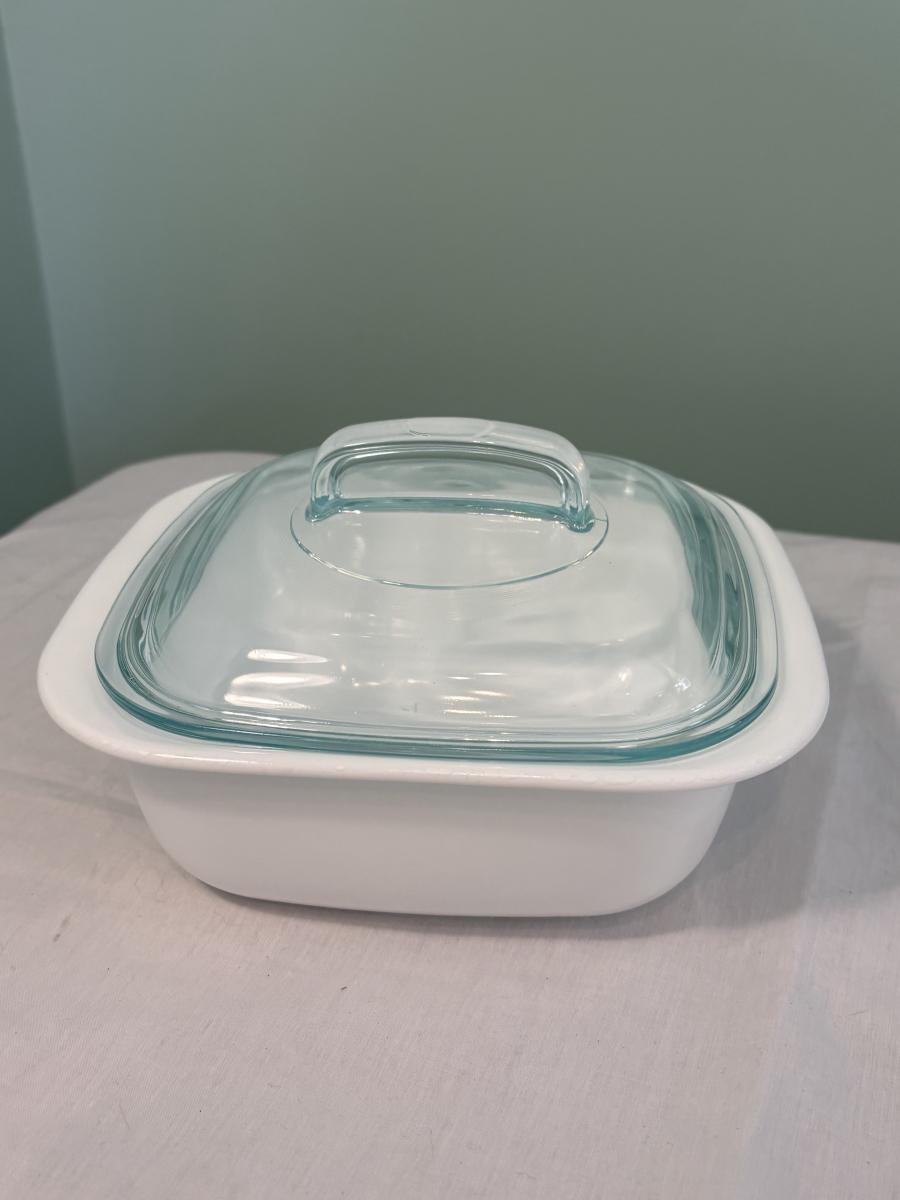 This lot is made up of a chafing dish buffet set (approximately 15"x10"x5"H), a Coringware baking dish (approximately 8.5"x7.5"x3"H), and an Anchor casserole dish (approximately 16"x10"x2.5"H).