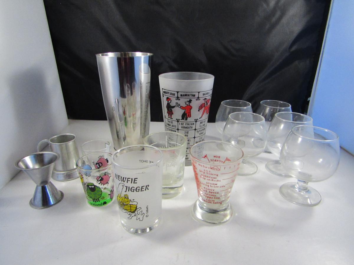Collection of Bar Ware- Assorted Glasses and Shaker