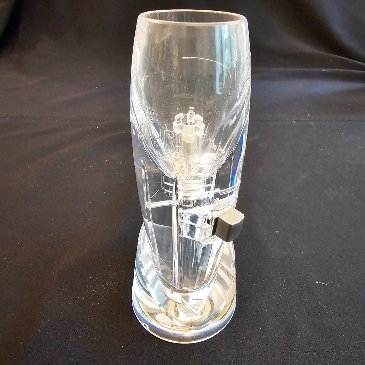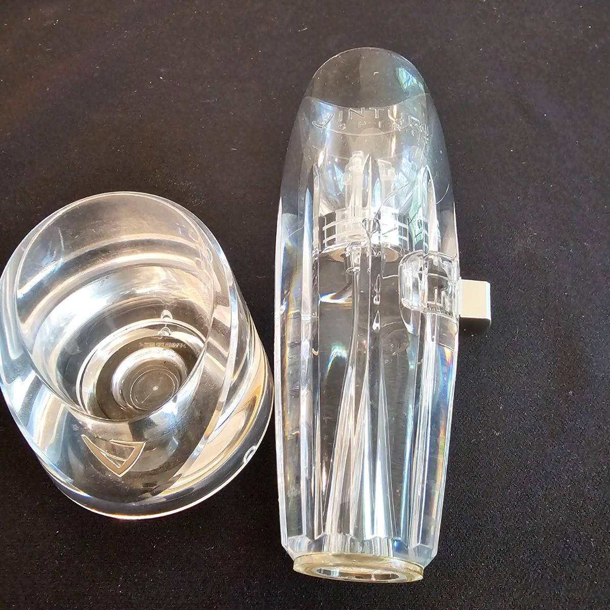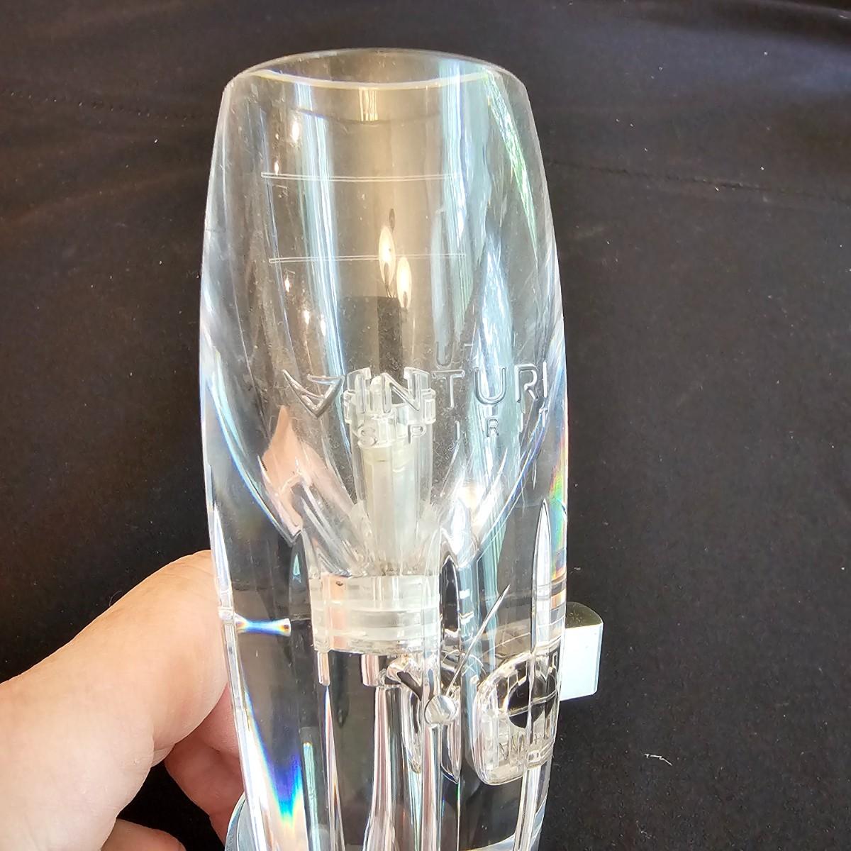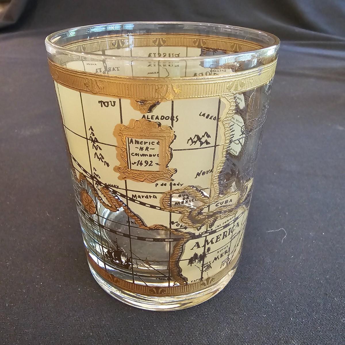 Bar glasses, a decanter and two Vinturi brand pieces for aerating wine. Glass decanter is by Simon Pearce, measures 4.5"D x 10.5"H. Set of six gold colored glasses have world maps on them, measure 3.25" x 4"H. A set of four clear glasses have four different mountain range impressions rising up from the bottom. See photos for details. Shipping available.