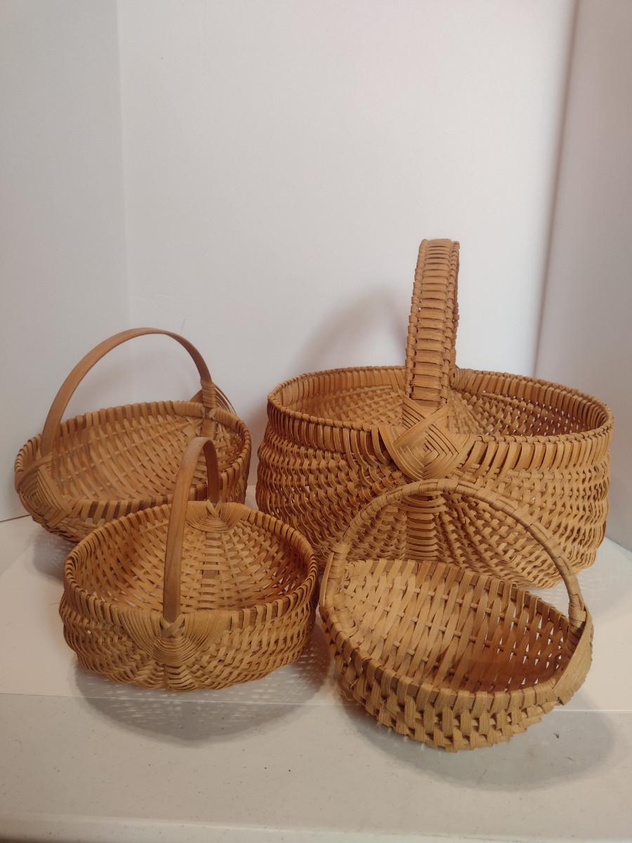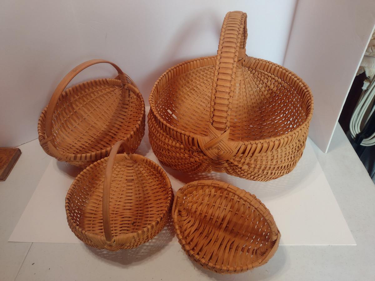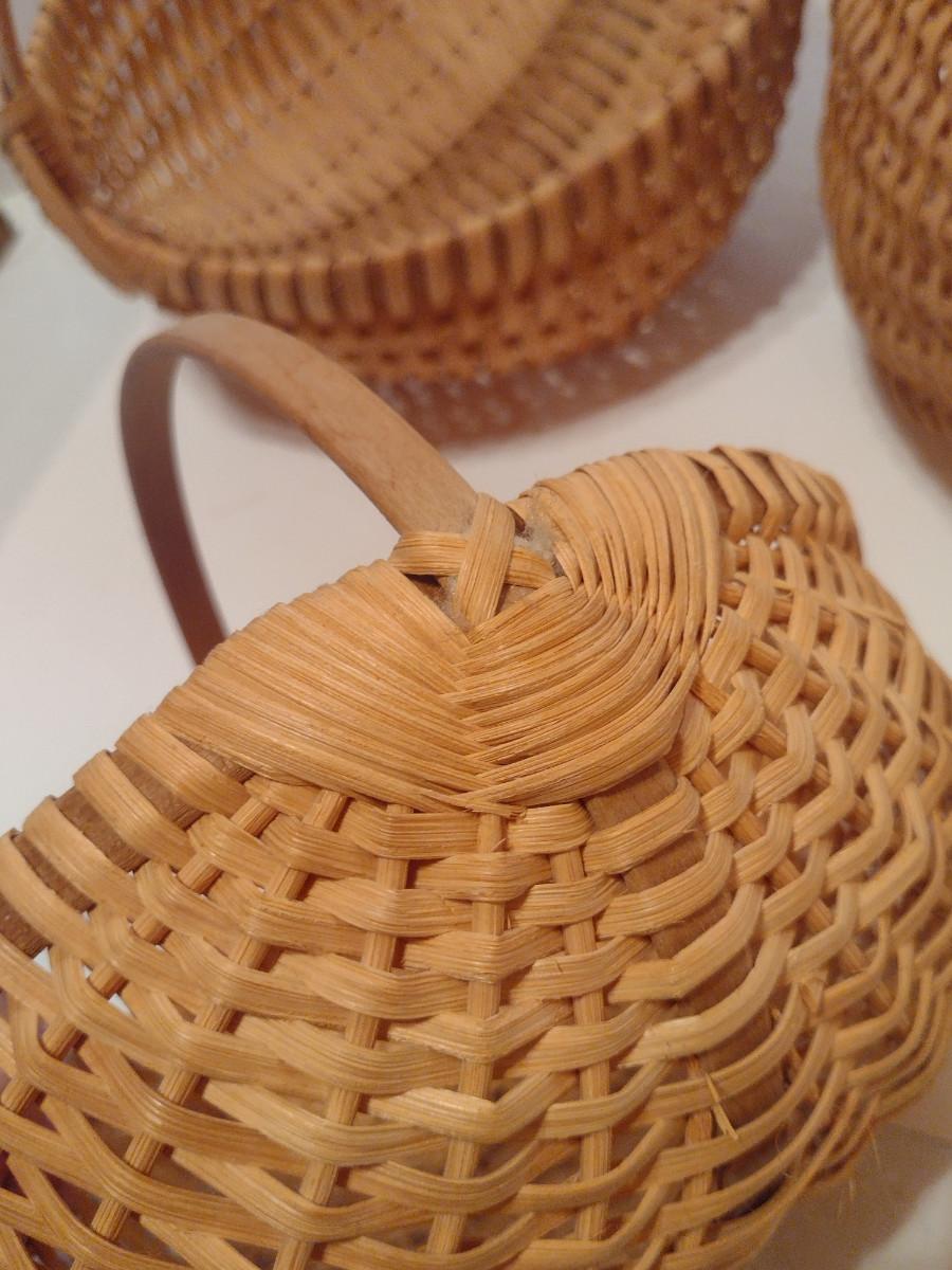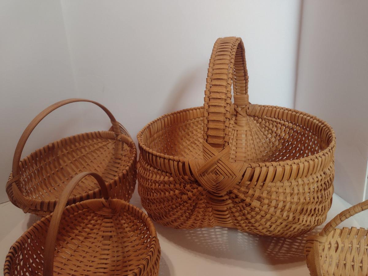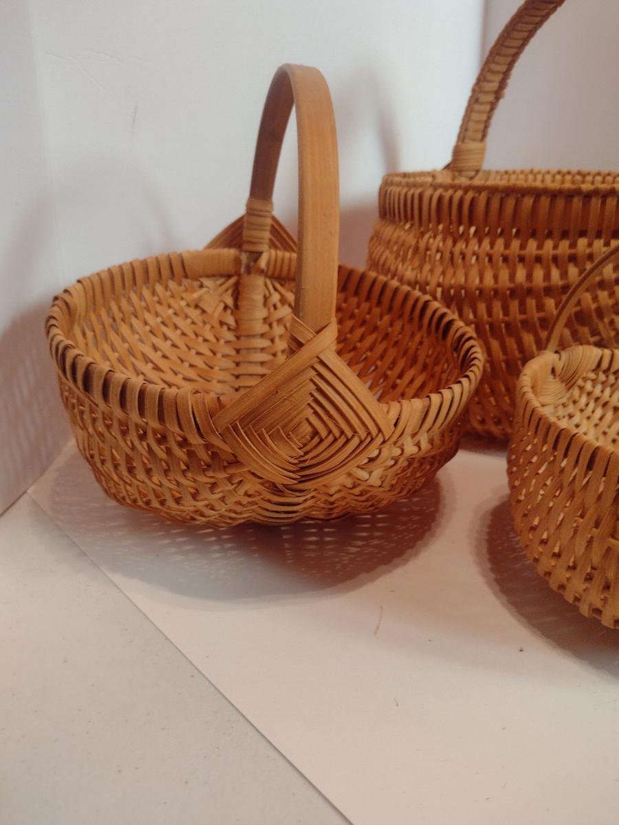 Collection of Baskets (#2). Egg/gathering baskets. Some with Eye of God design at handle.