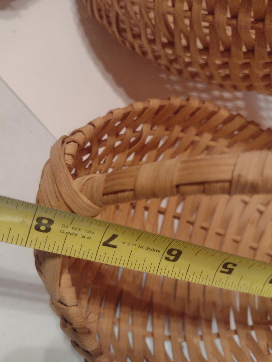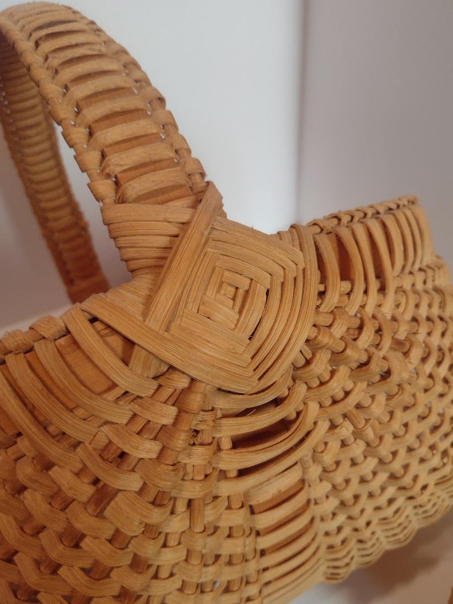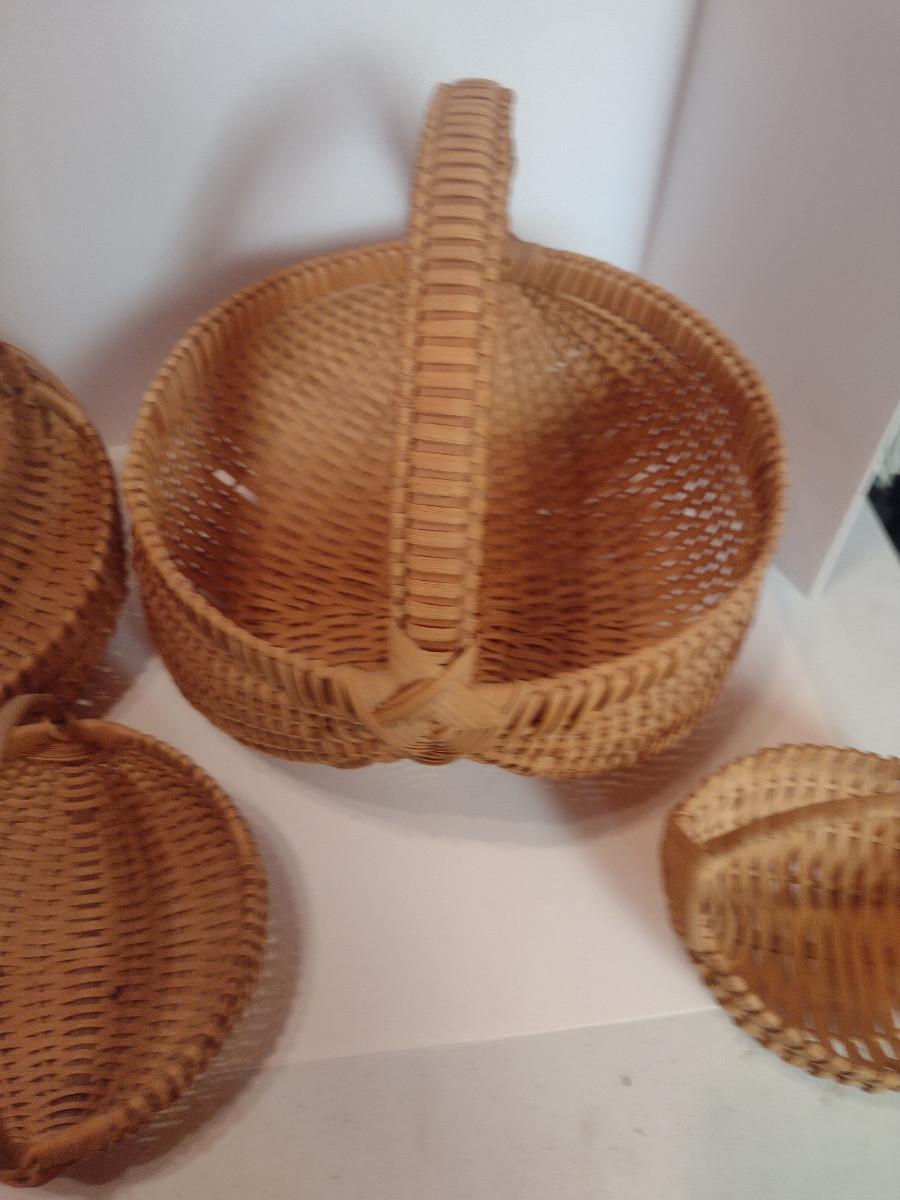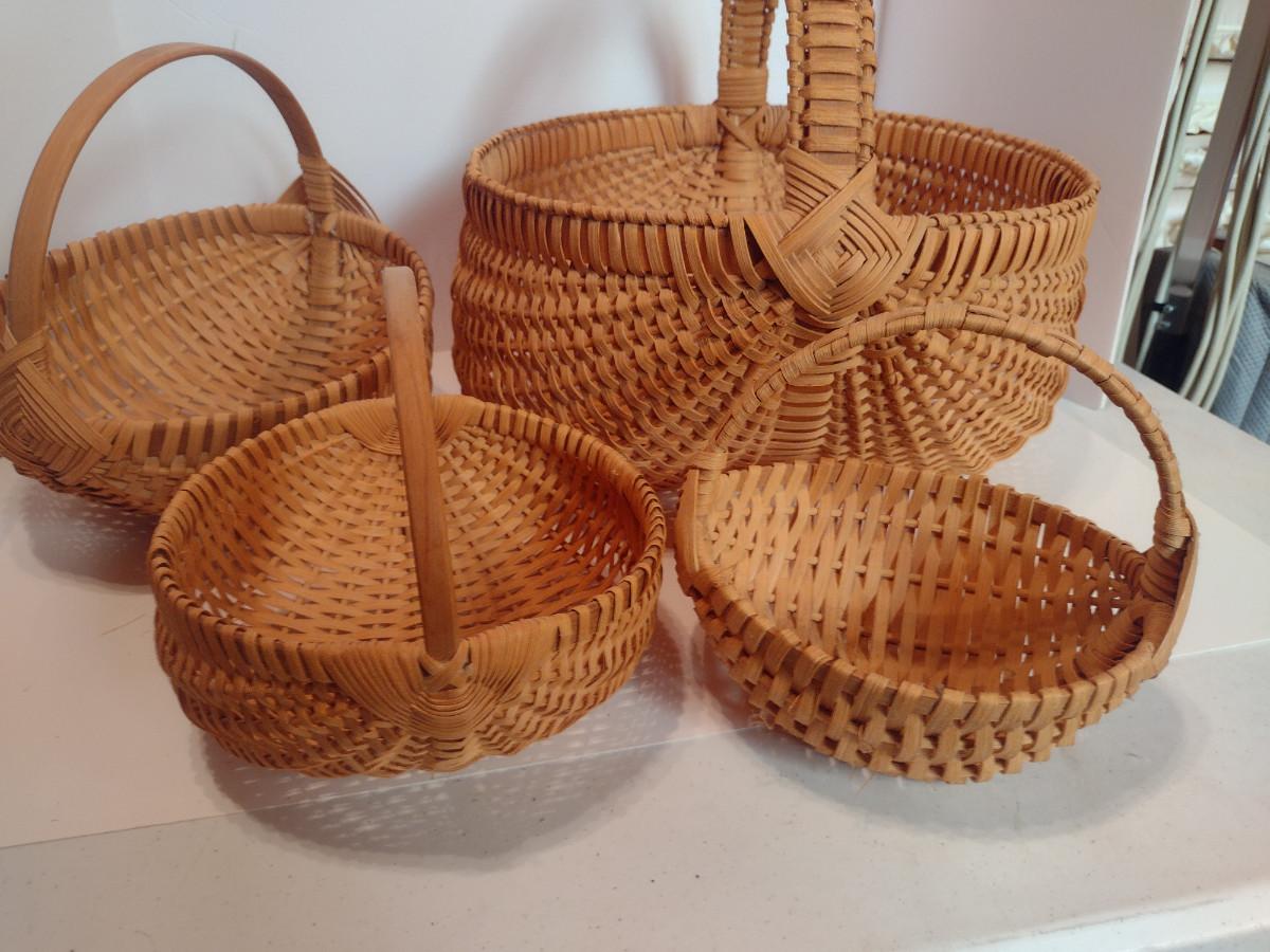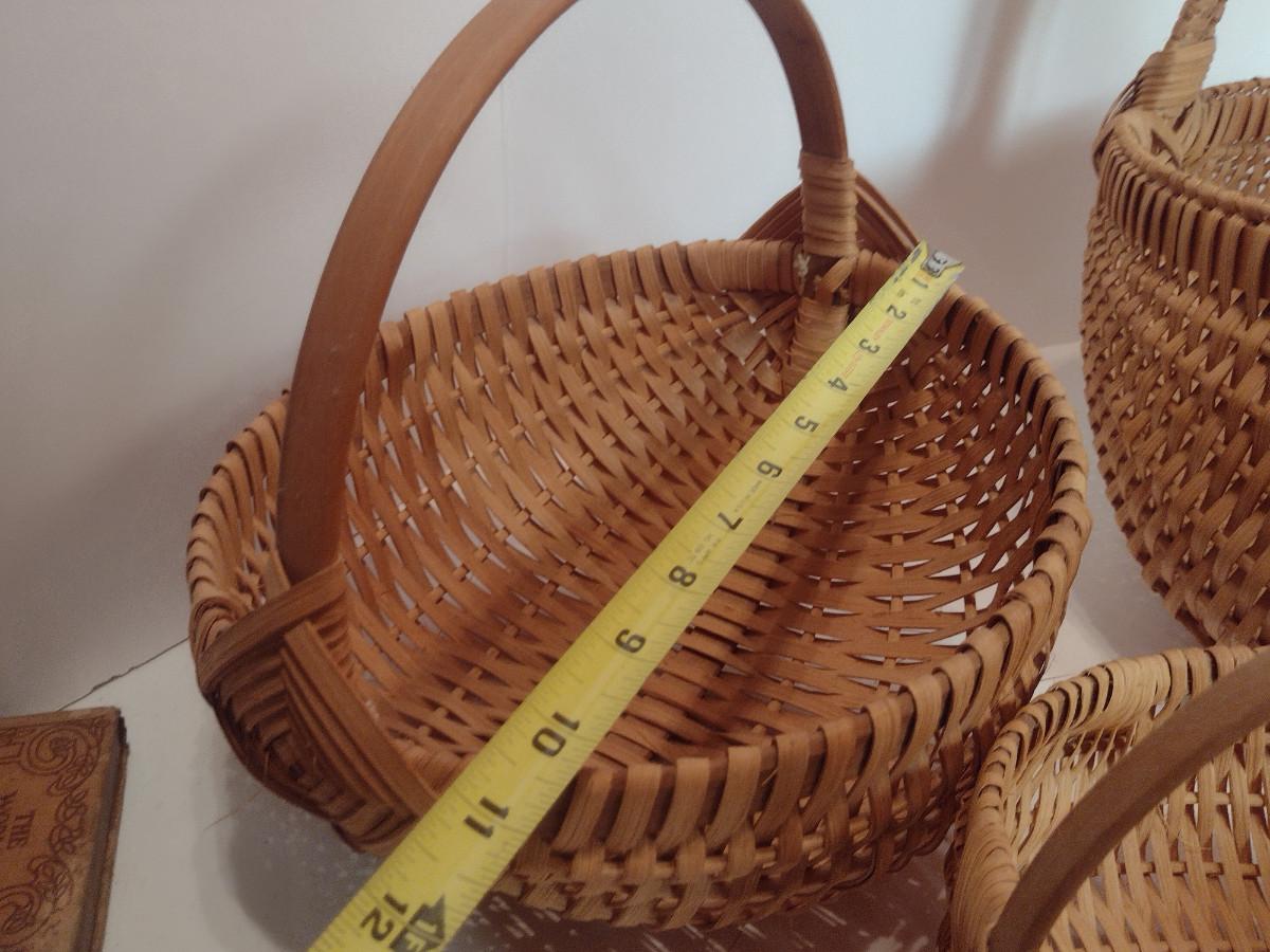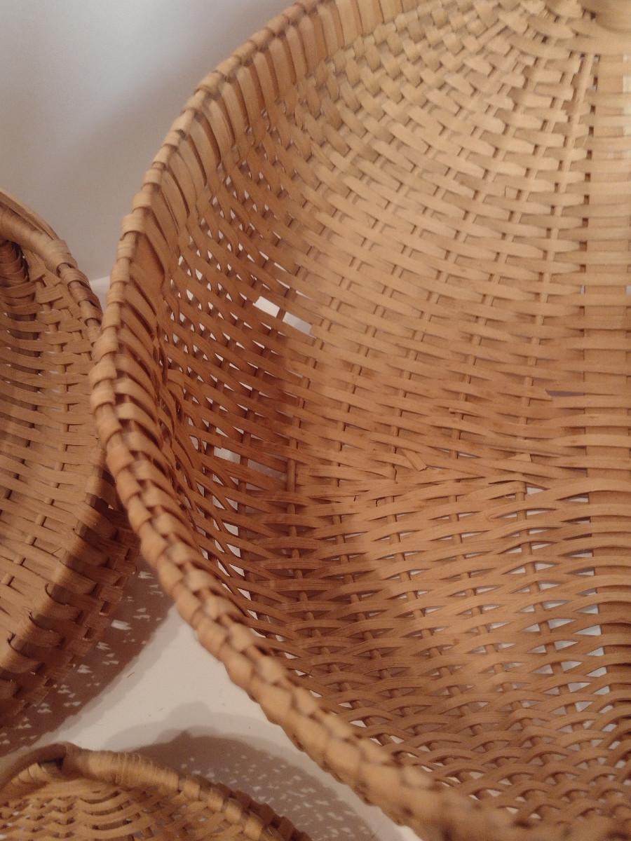 Collection of Baskets (#2). Egg/gathering baskets. Some with Eye of God design at handle.
