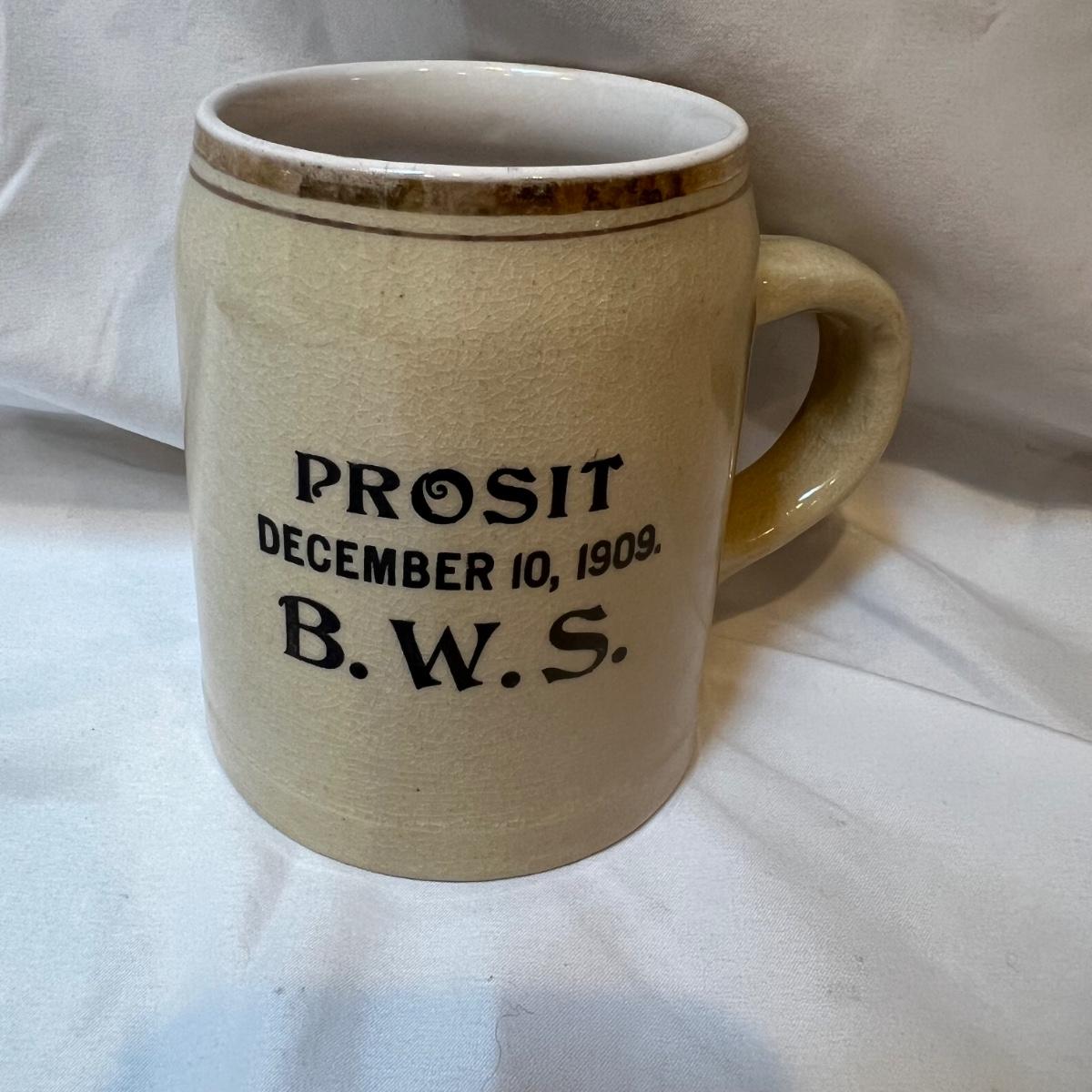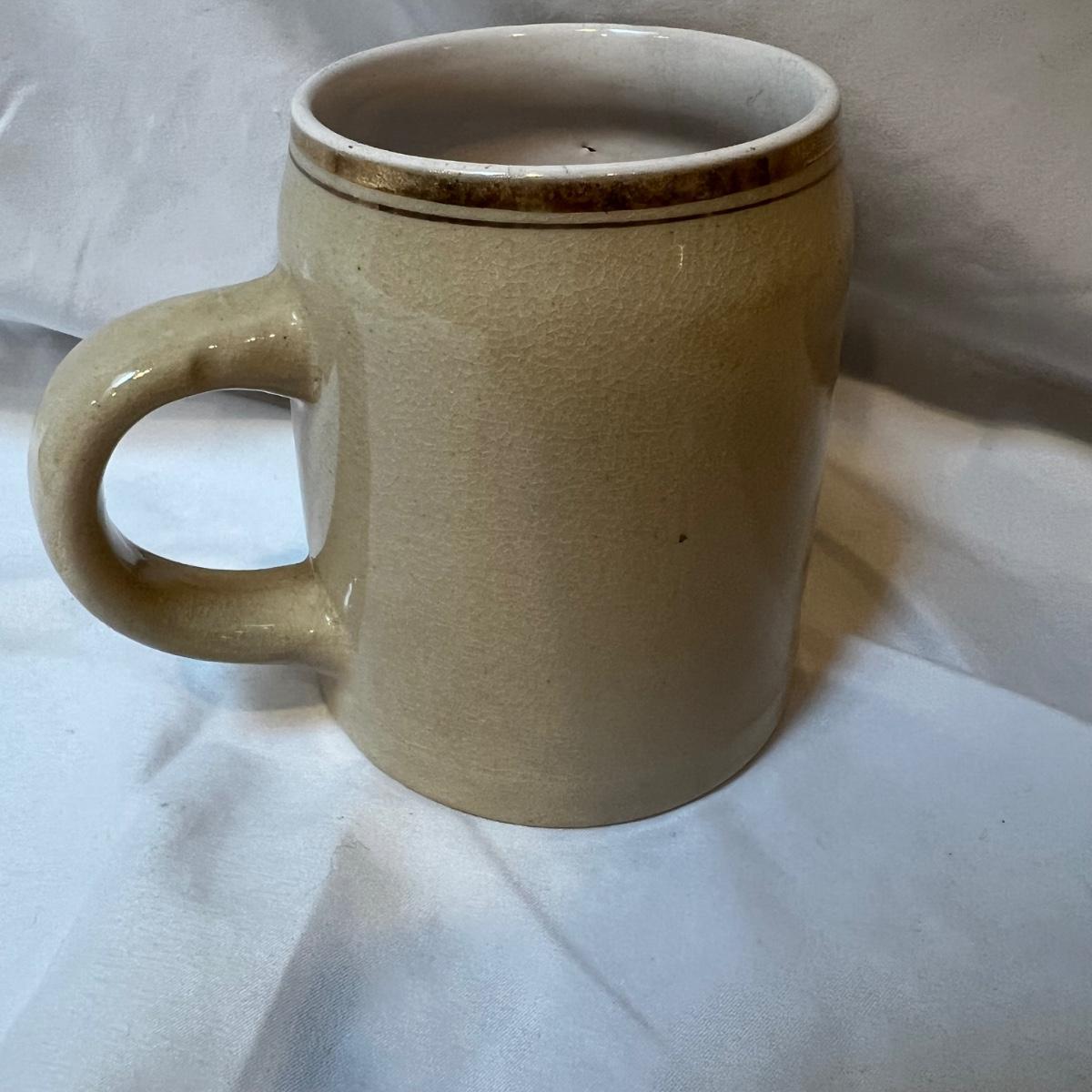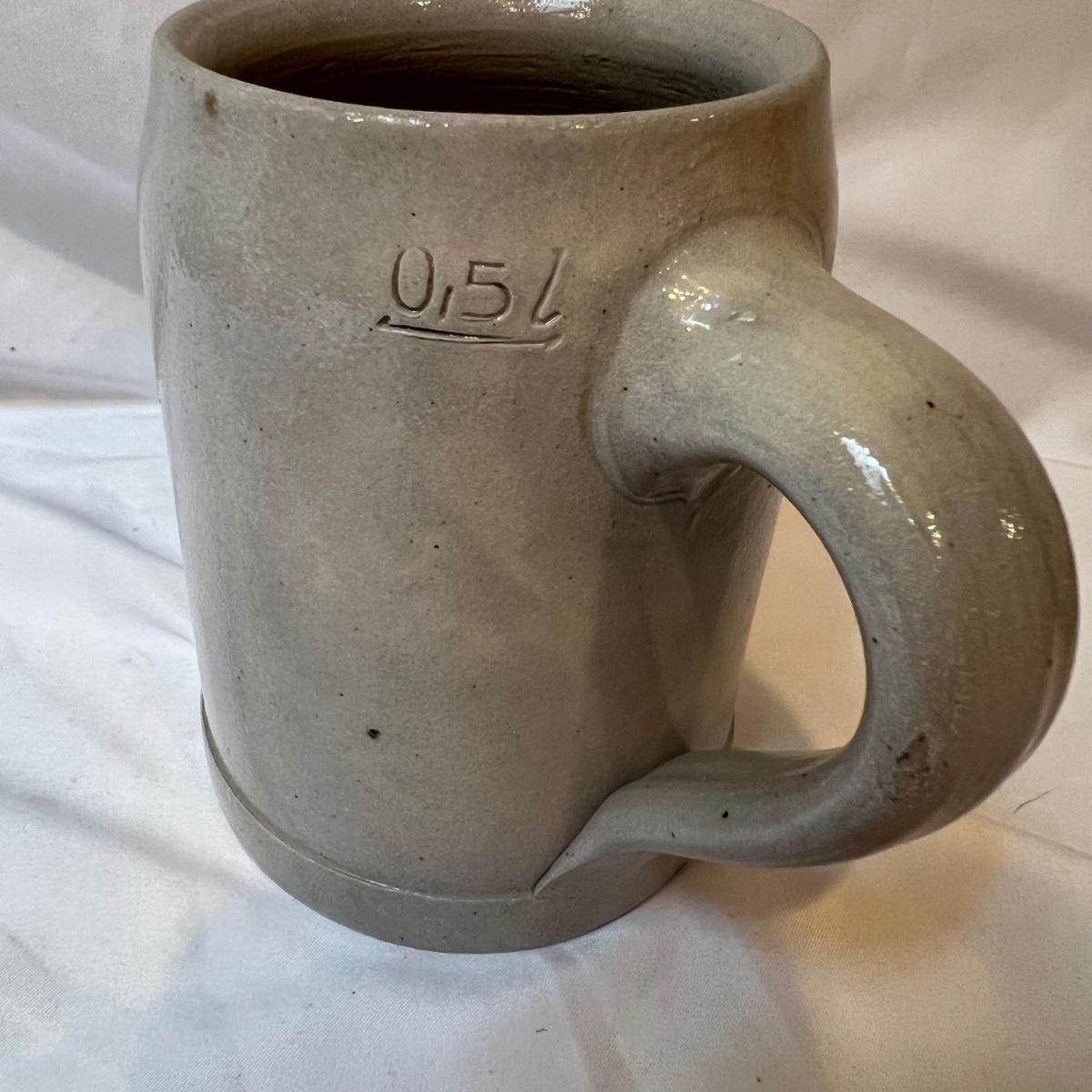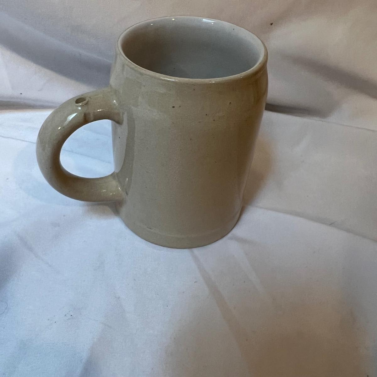 A collection of six ceramic beer steins. The largest measuring 3”D x 7”H and the smallest 2”D x 4”H.