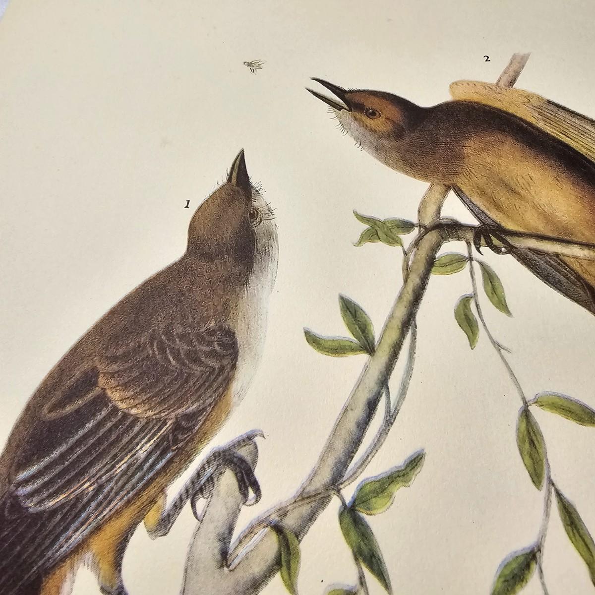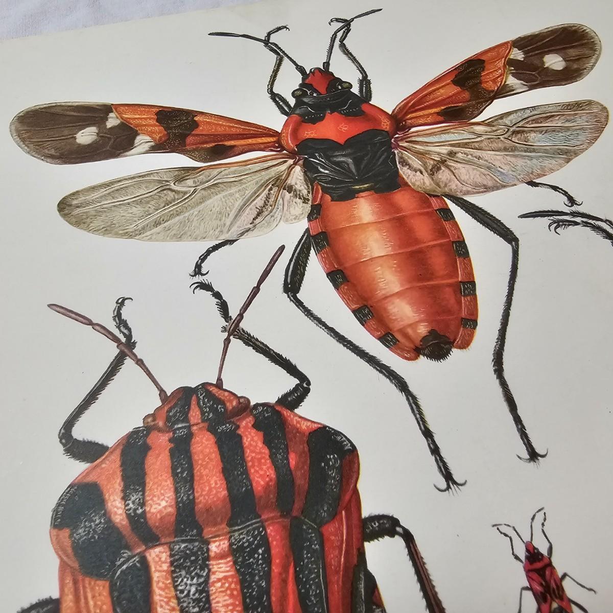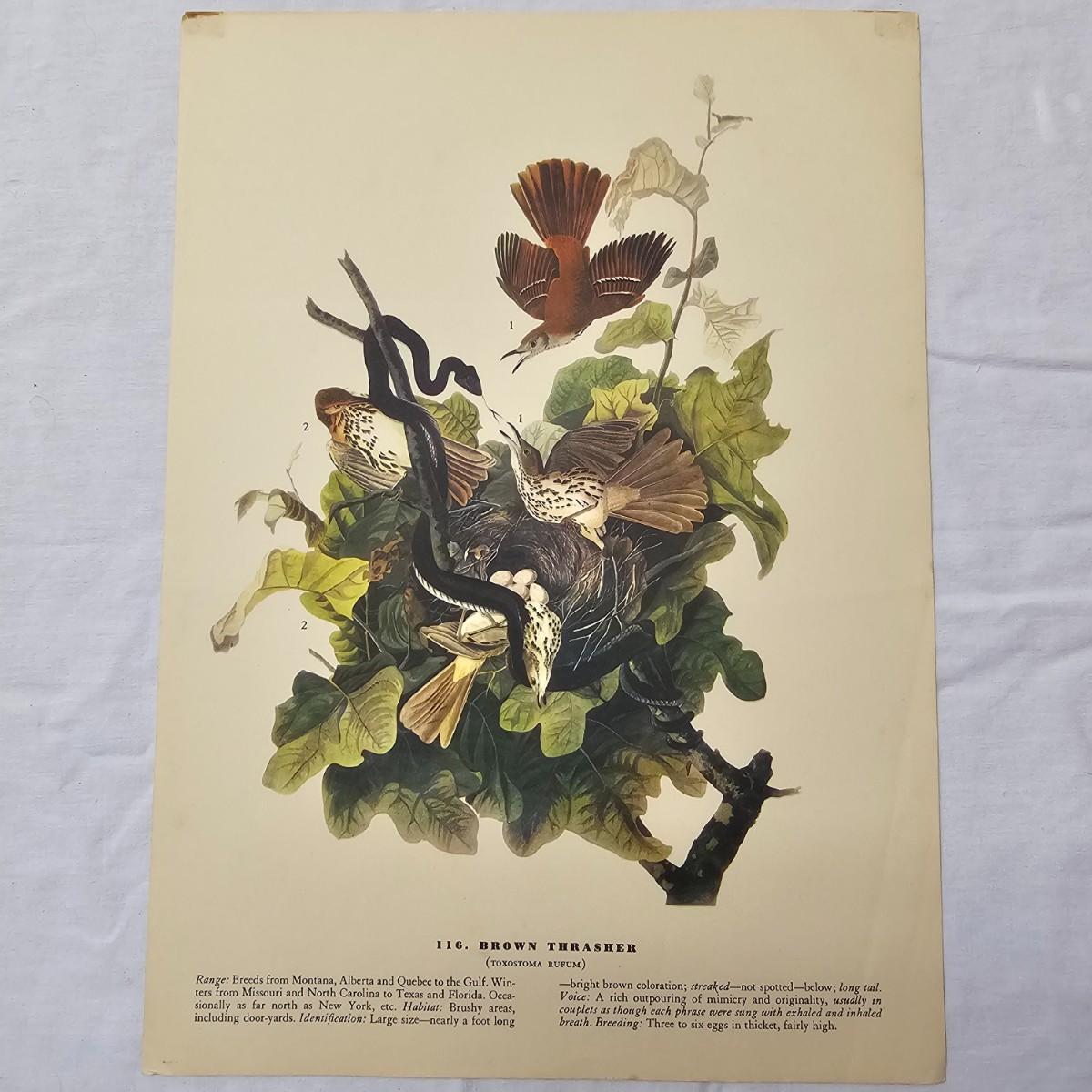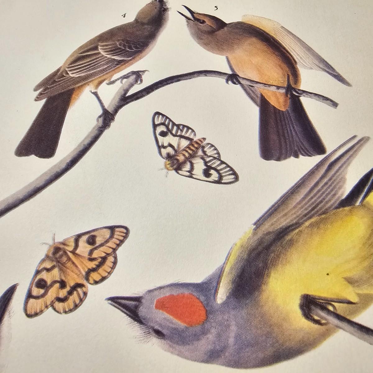 Twenty individual prints of various birds and insects. All items are unmounted, printed on heavy stock. Small insect plates measure 7" x 9". Vertical and horizontal bird images are 9" x 12.75". Large flower print is 11.75" x 15.5". Most all pieces have some discoloration on edges and backs. One piece has crease running across bottom. See photos for details. Shipping available.