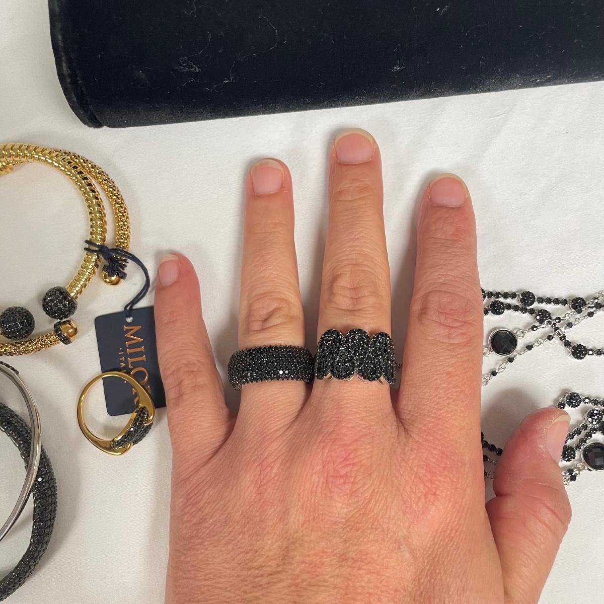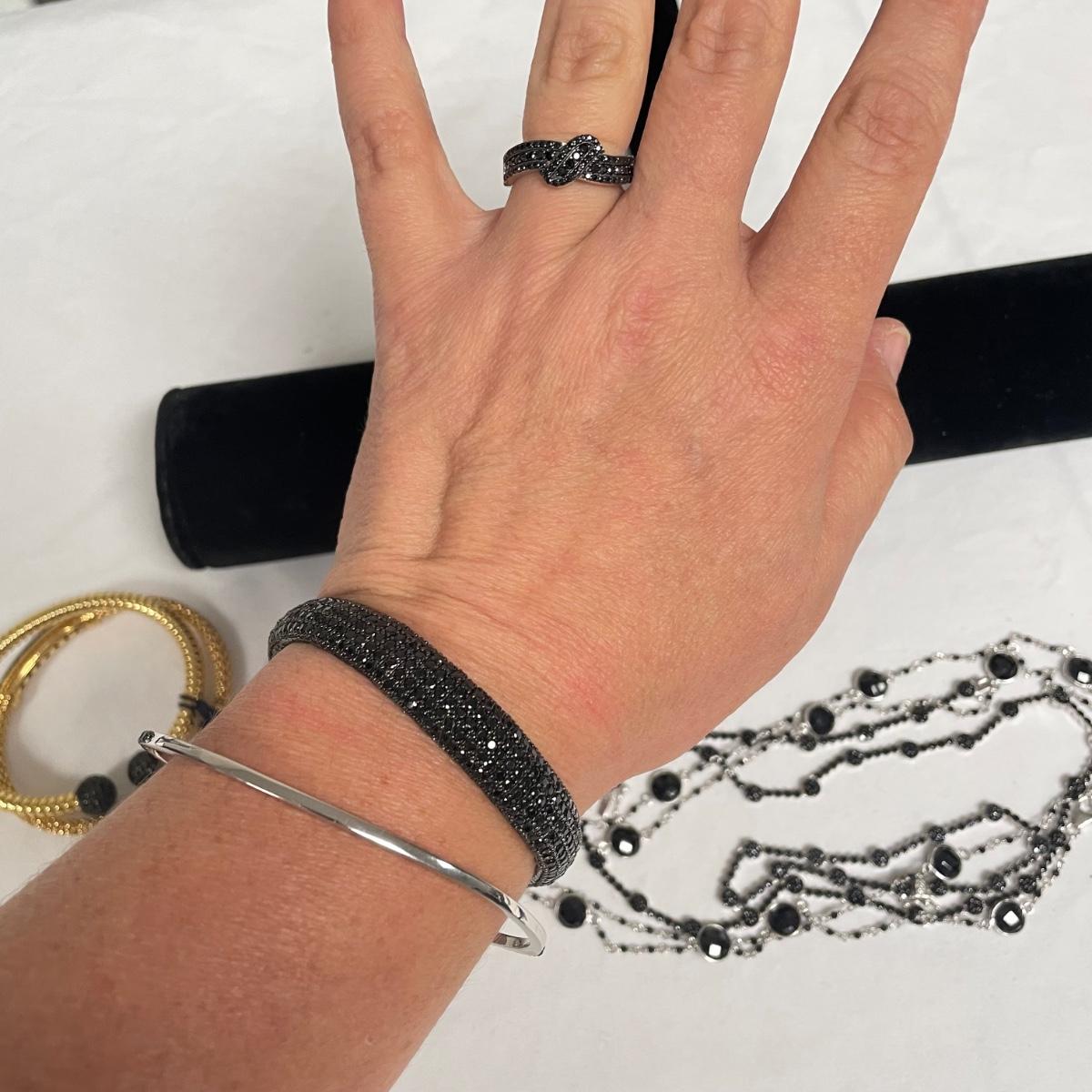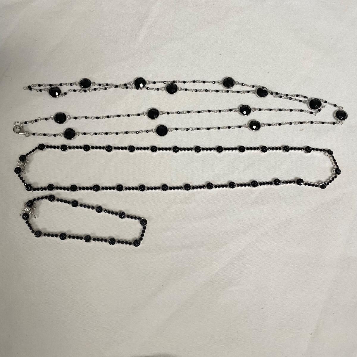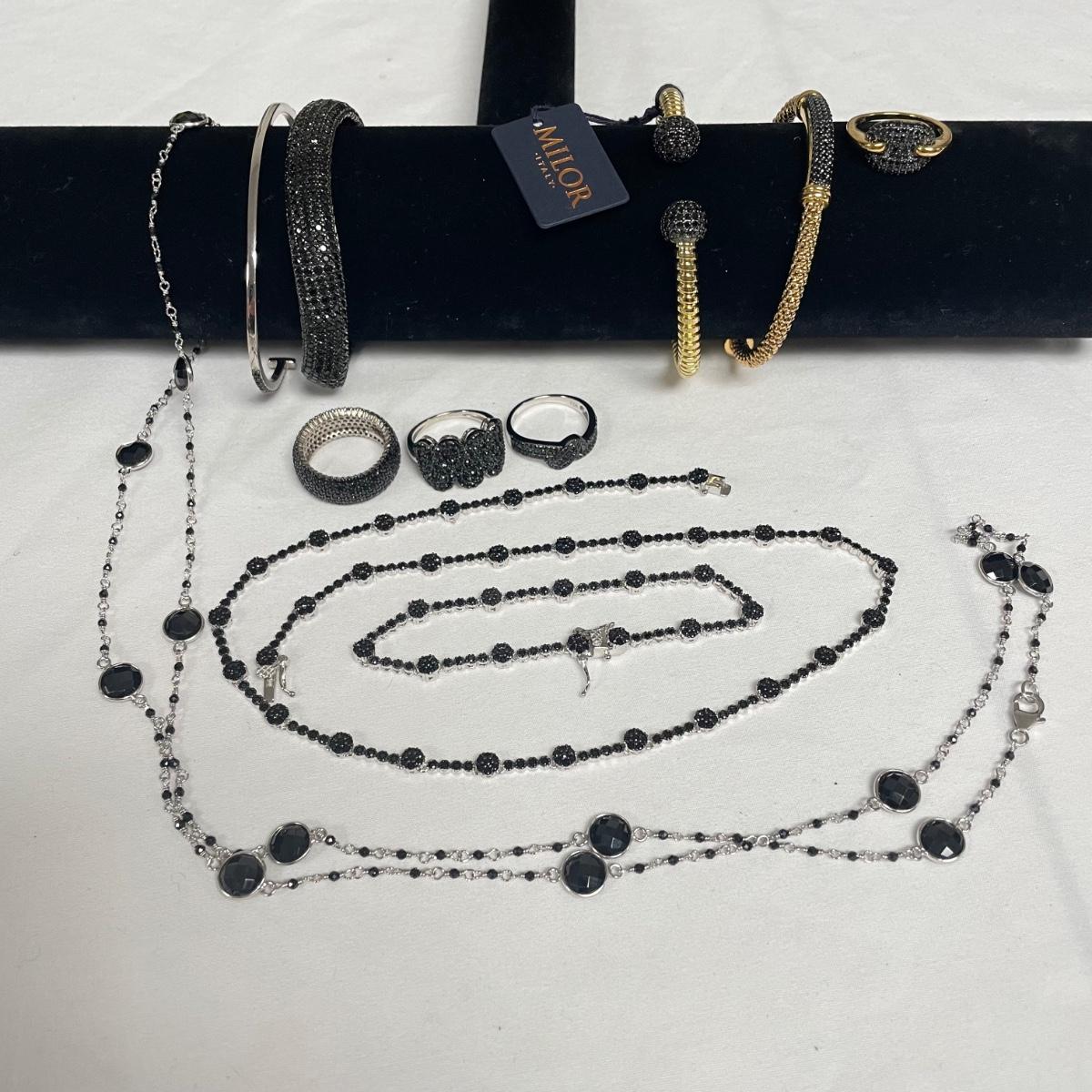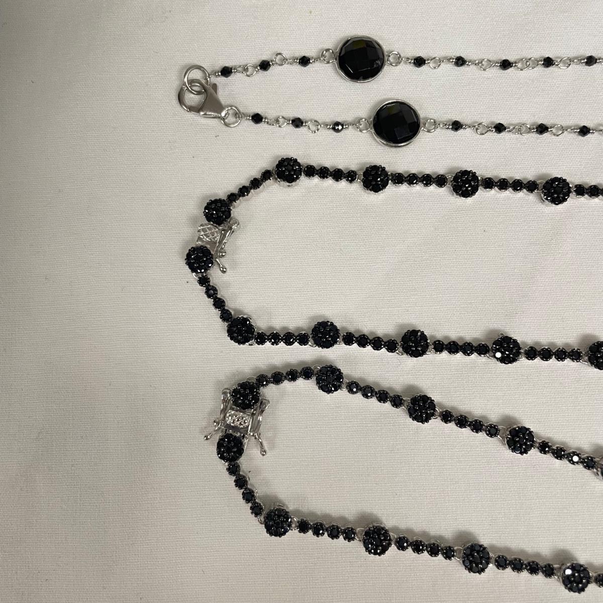 Stunning collection of jewelry mostly marked 925 adorned with Spinel style gems. The two gold colored bracelets are the only pieces in the lot with no known markings, the rest have at least 925, see images. Lot includes a bracelet/necklace set plus another necklace with larger gems measuring 34”, four more bracelets and four rings. See images. Please see photos for all markings found. We cannot guarantee the authenticity of the gemstones. All sales are final. No returns or refunds. Please bid accordingly.