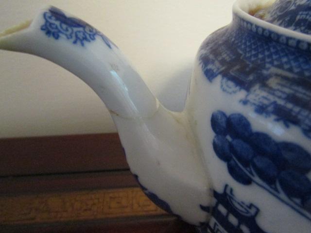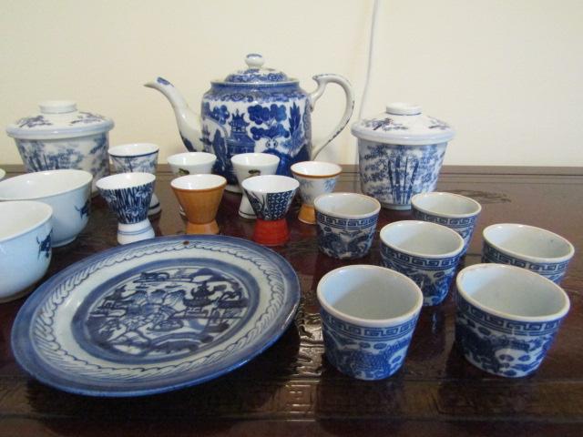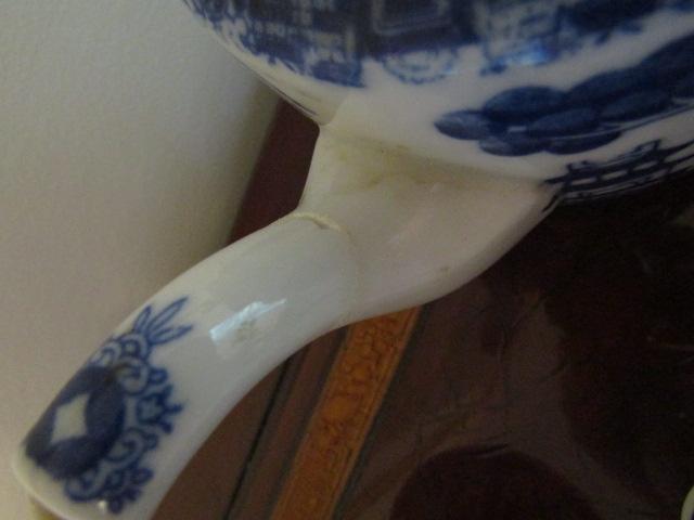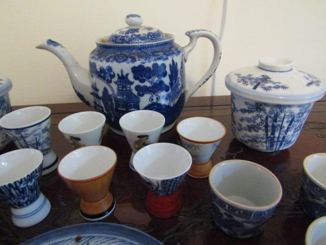 Collection of Blue and White Asian Style Dishware we noticed that the tea pot spout has been repaired.