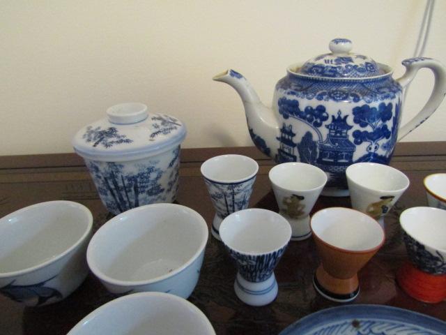 Collection of Blue and White Asian Style Dishware ( See Description Below)