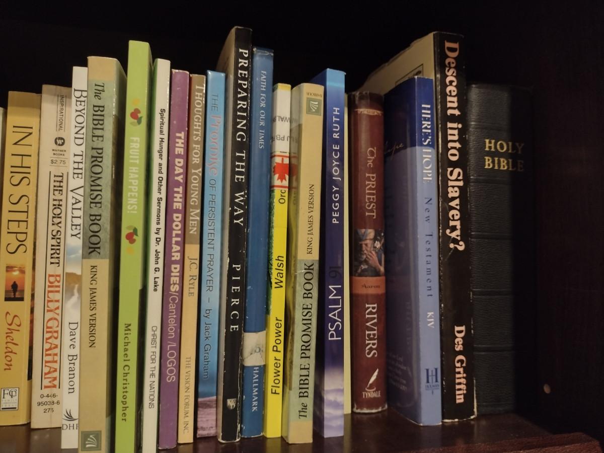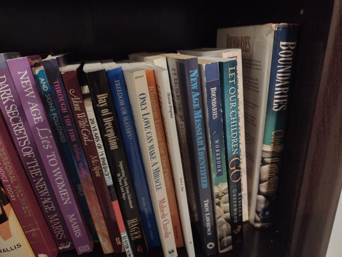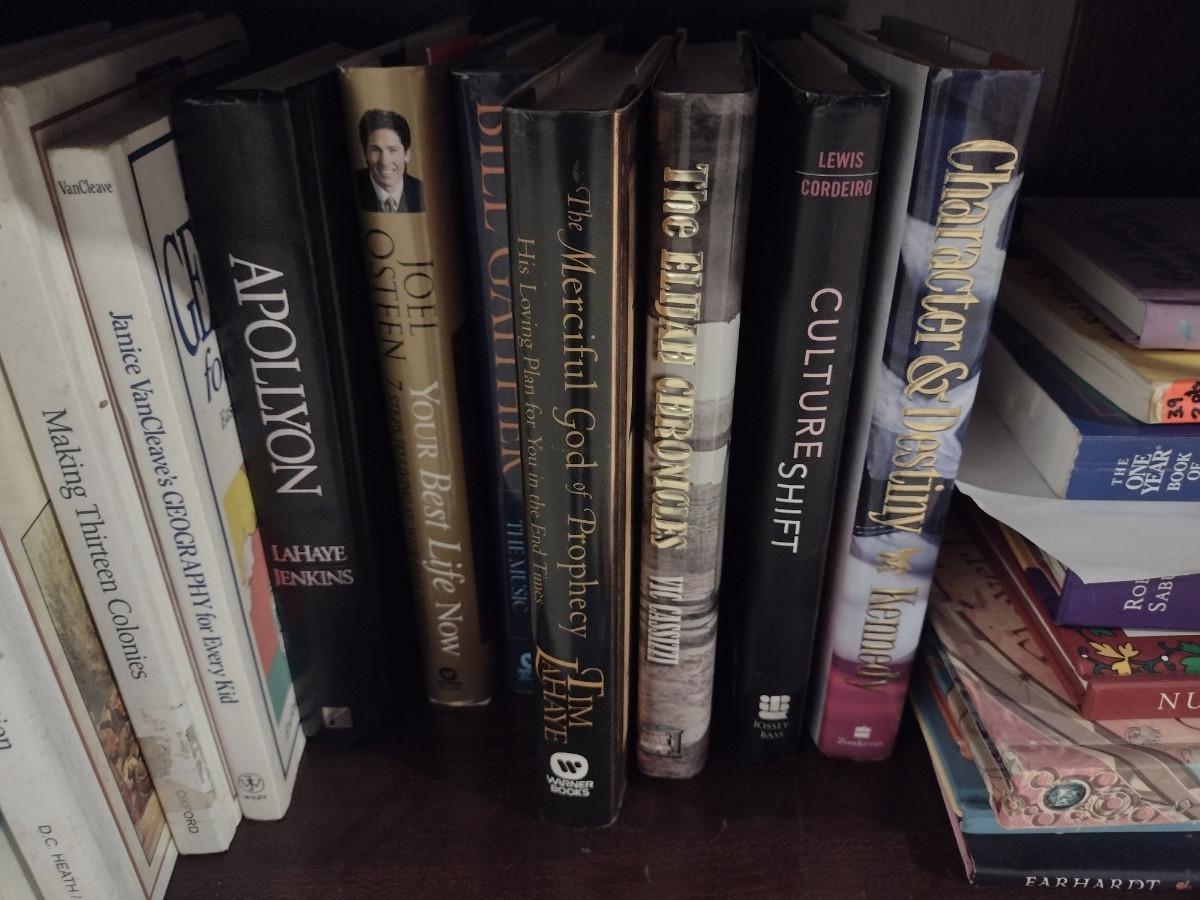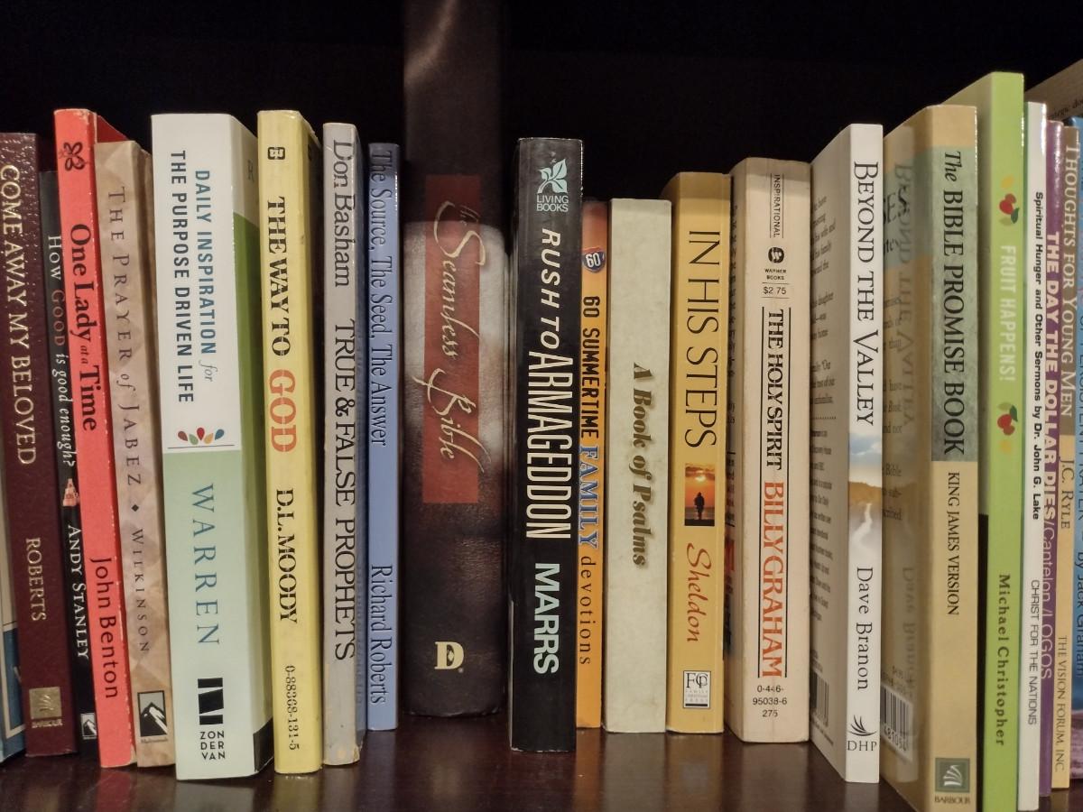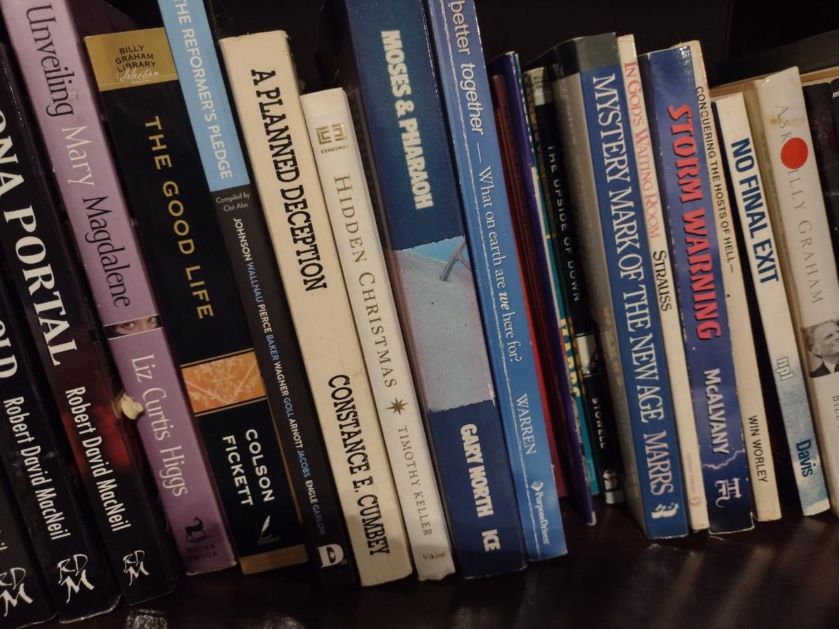 Collection of Books- Mostly Religious Genre. Shelf not included.