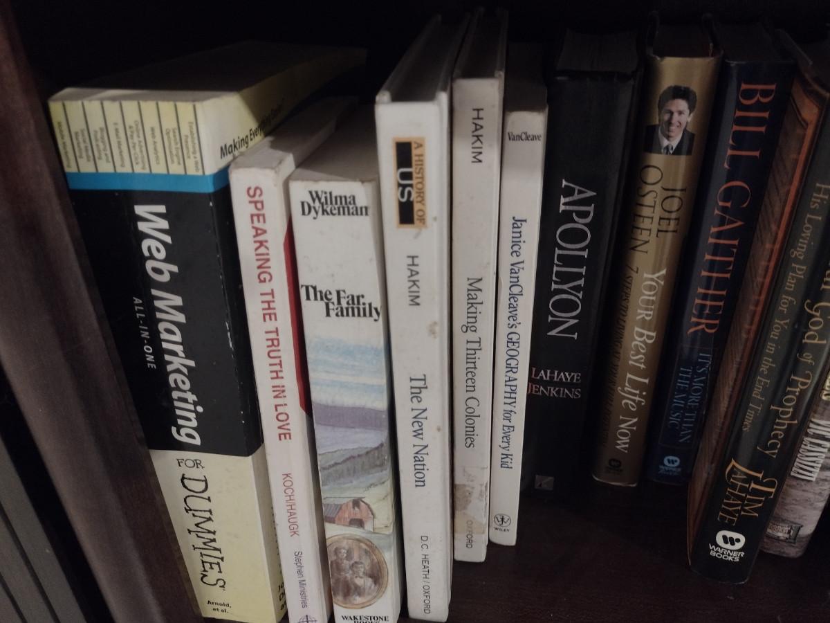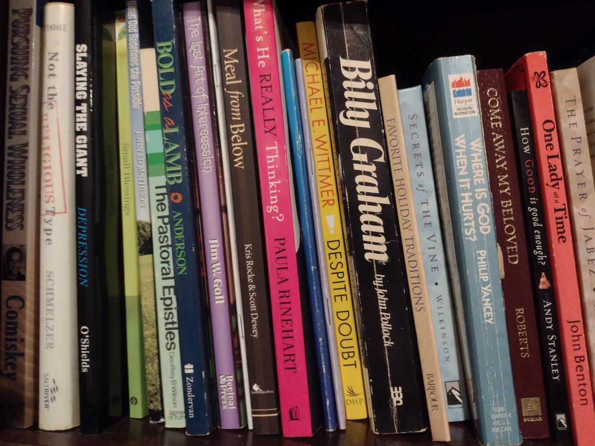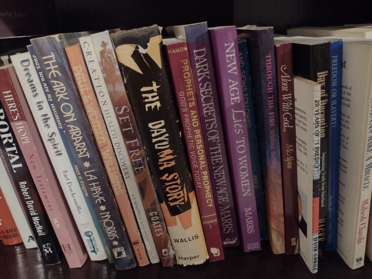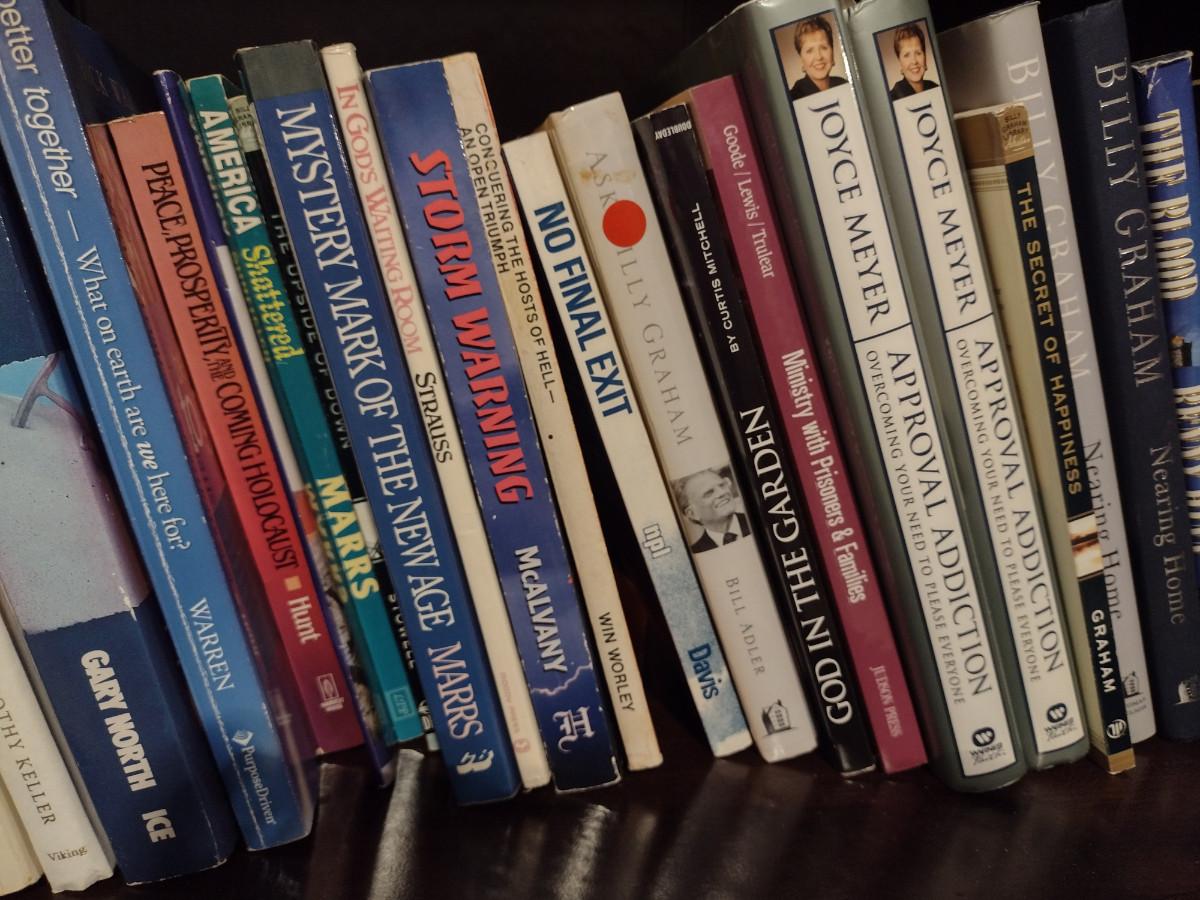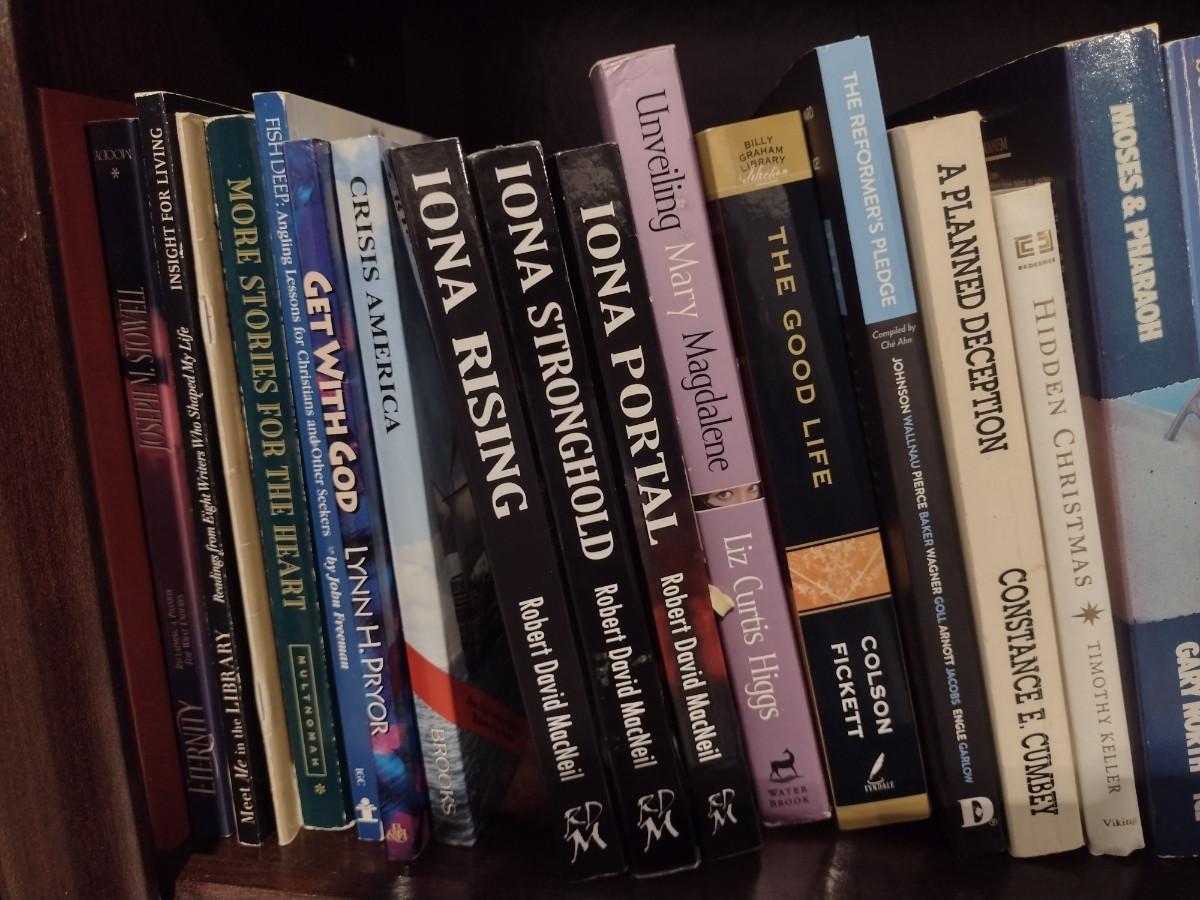 Collection of Books- Mostly Religious Genre. Shelf not included.