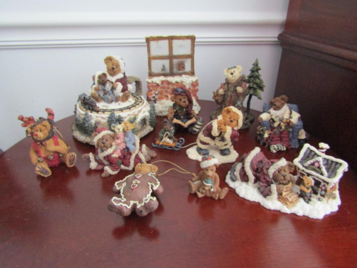 Collection of Boyd's Bears Figurines (Group #1). Music box has small piece that needs to be glued back on- please see pictures.