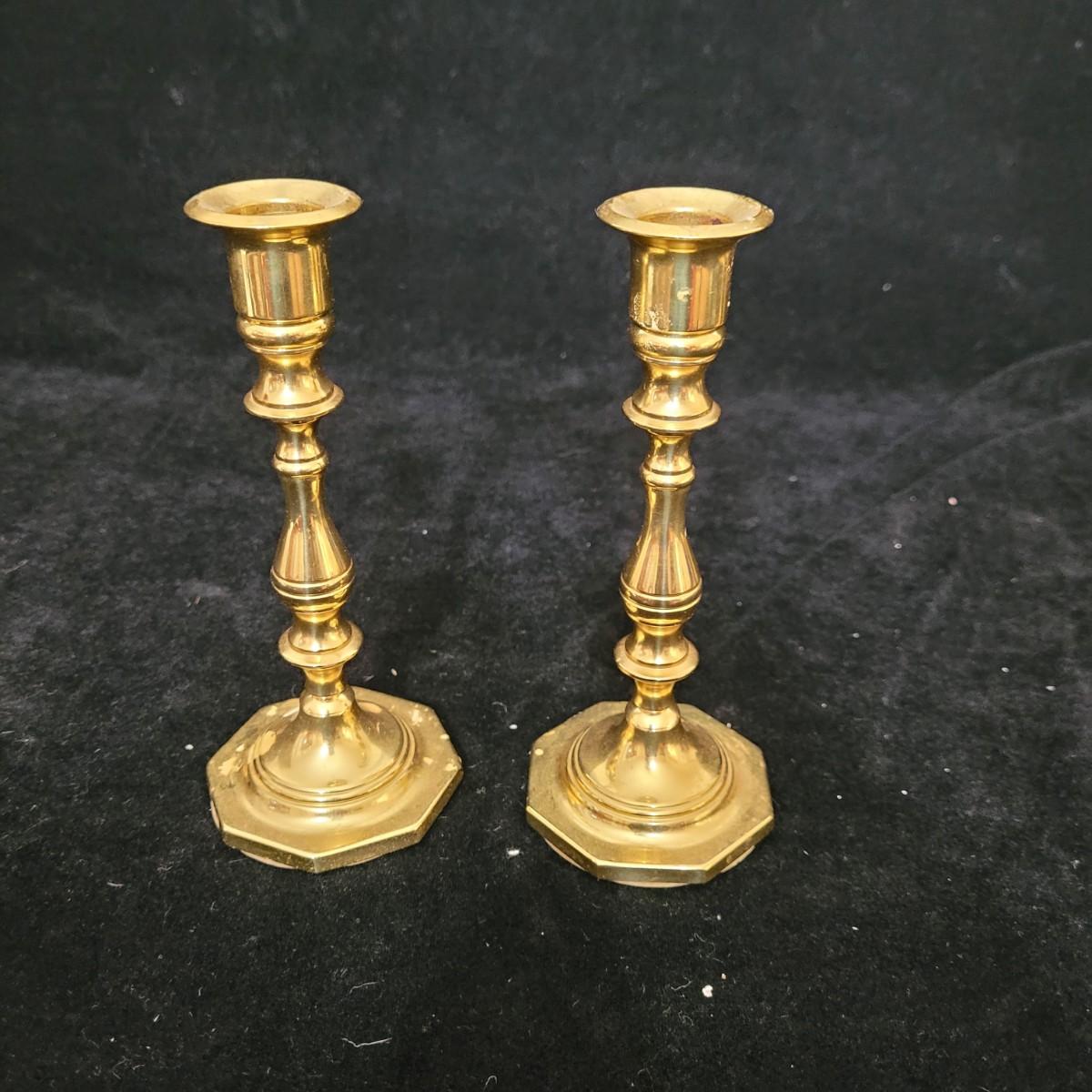 Baldwin & More Brass Candlesticks Plus Variety of Taper Candles (DR-CE)