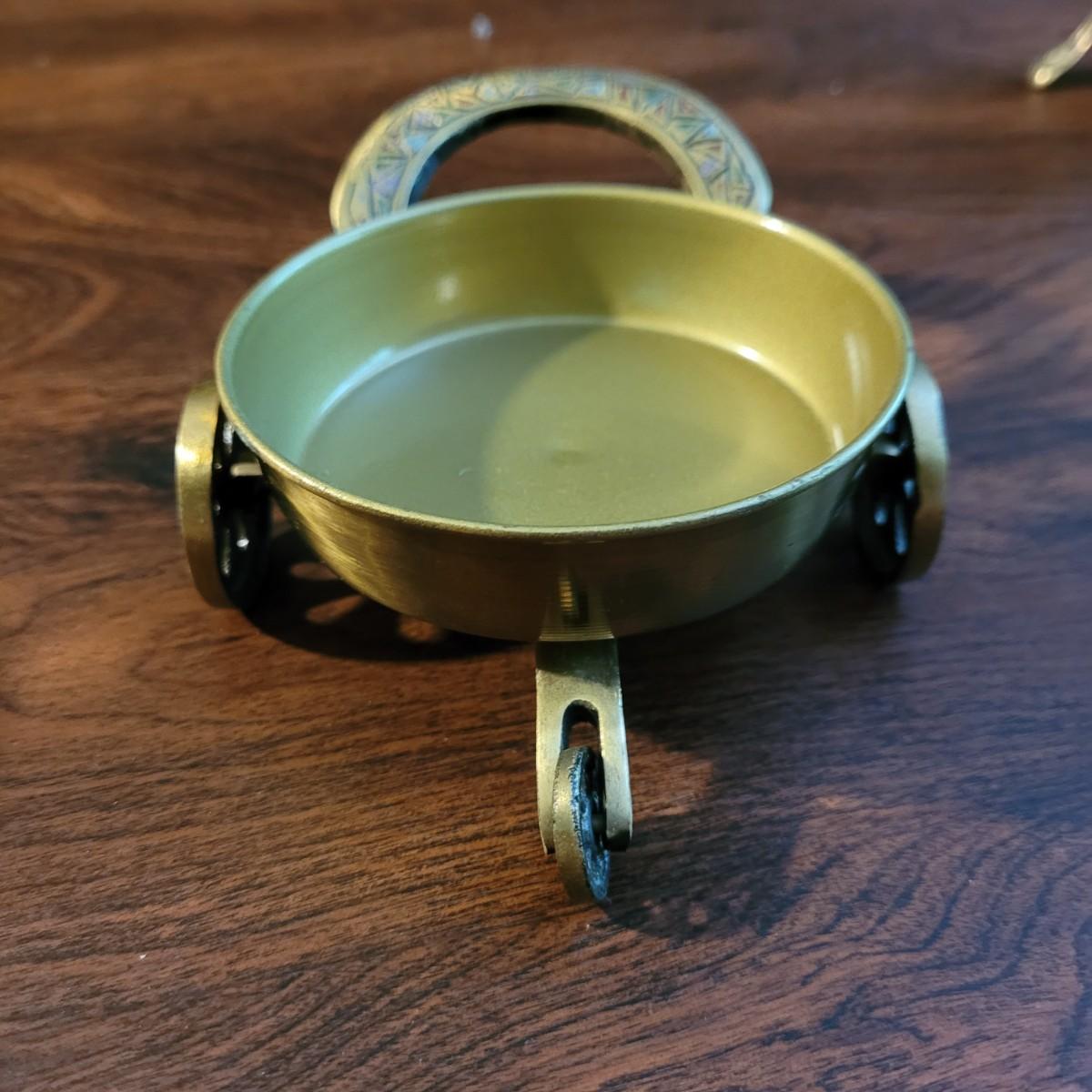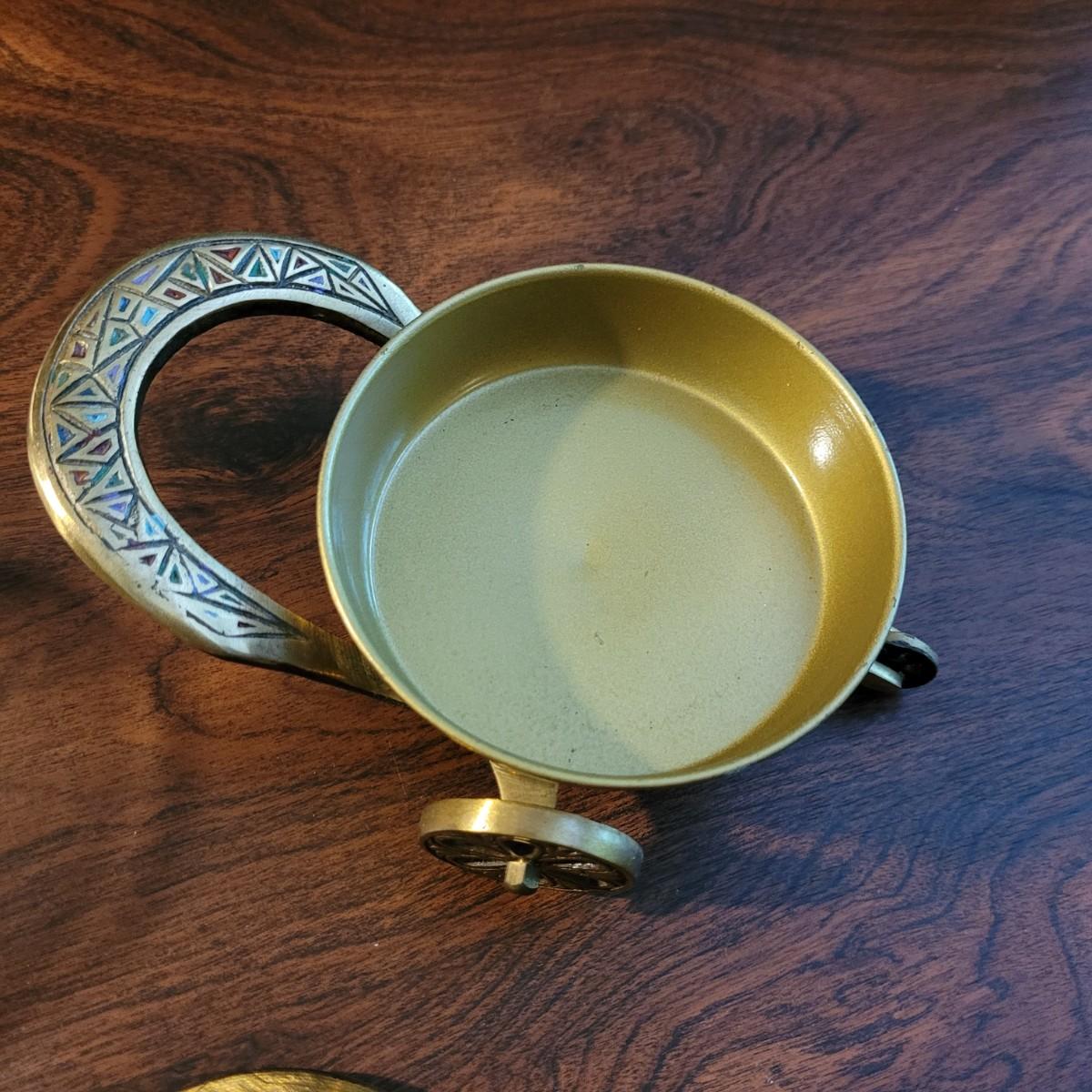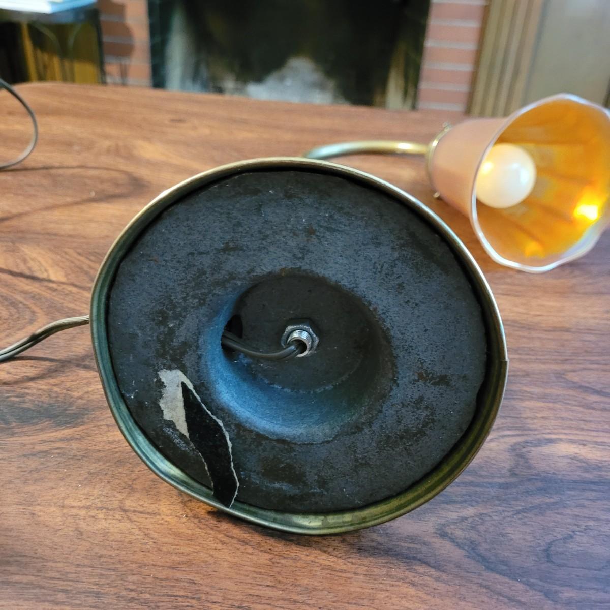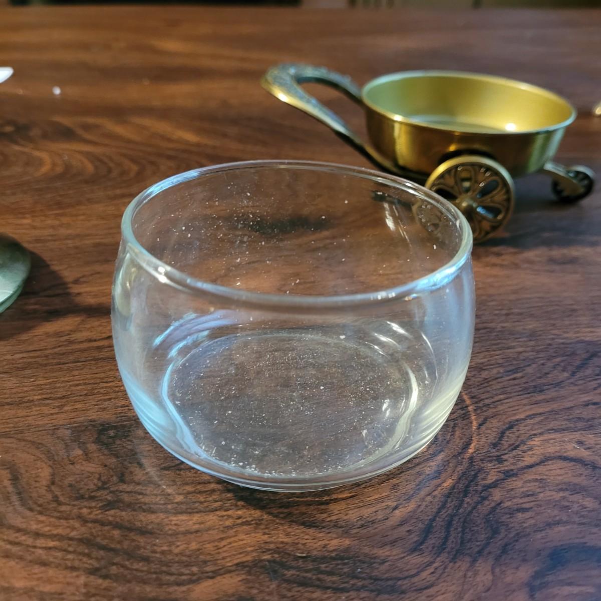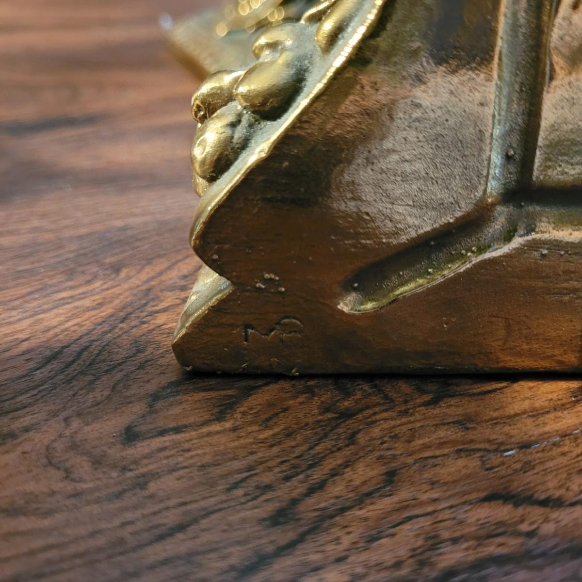 Collection of decor with brass style and coloring. Can not verify if items are real brass. Decor includes glass floral shade lamp that works when plugged in. Lamp in good condition with small crack at base and where shade attaches to body. Other items included are a small unicorn, book ends that are heavy, glass vase with stand, and small bowl on rolling cart (made in Israel). Lamp measures approximately 18.5"H at tallest point. Shipping available.
