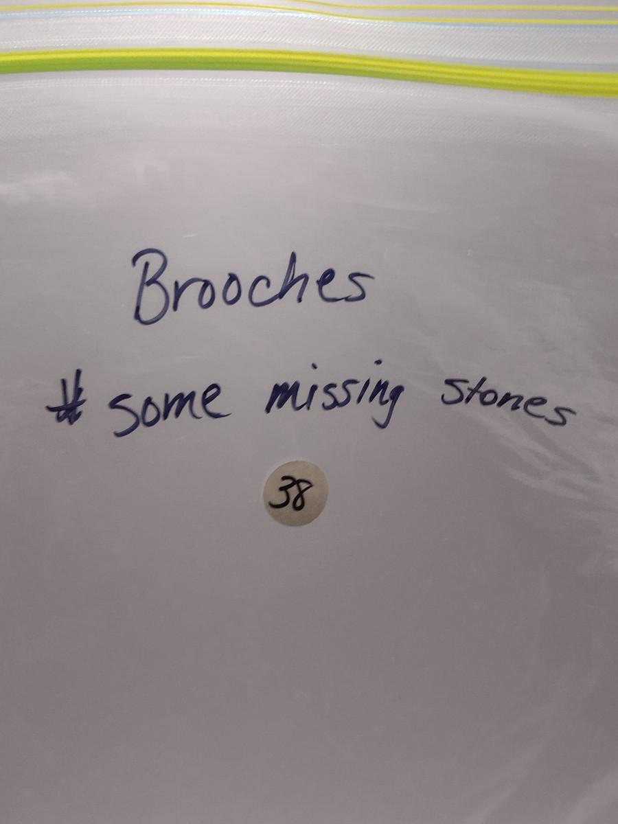 Collection of Brooches (#38). Some may be missing stones/be incomplete.