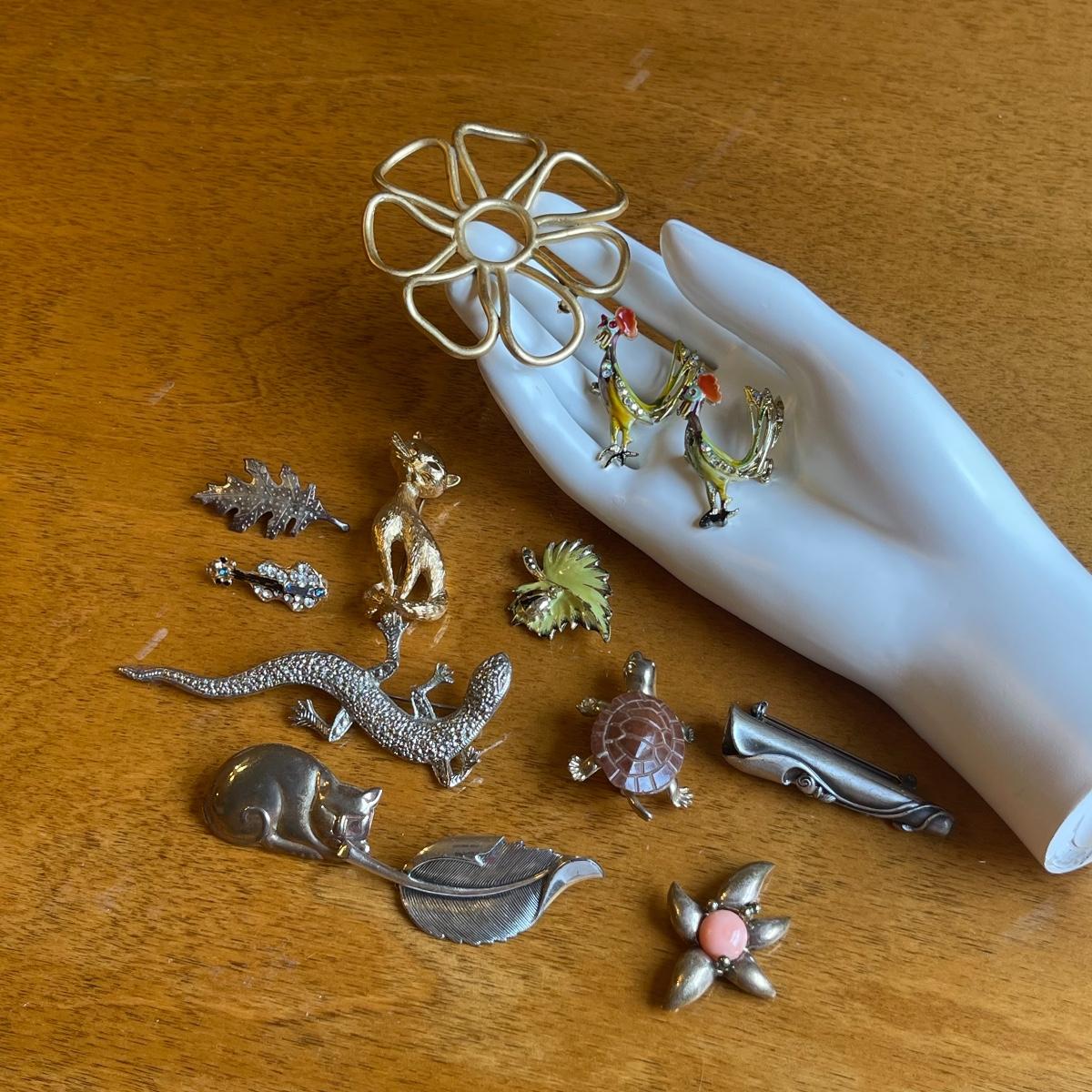 Collection of 13 Sterling & Costume Pins/Brooches