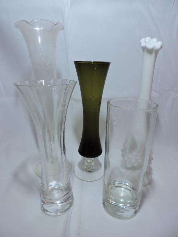 Glass, crystal, and milkglass. **Please read Terms and Conditions before placing a bid. Pick up is Saturday, November 30 from 9am to 3pm in Bridgeton, NJ. All sales are final. All sales are as is, where is. Please review all photos. Any props included in photos are not included in listing. All measurements are approximate.