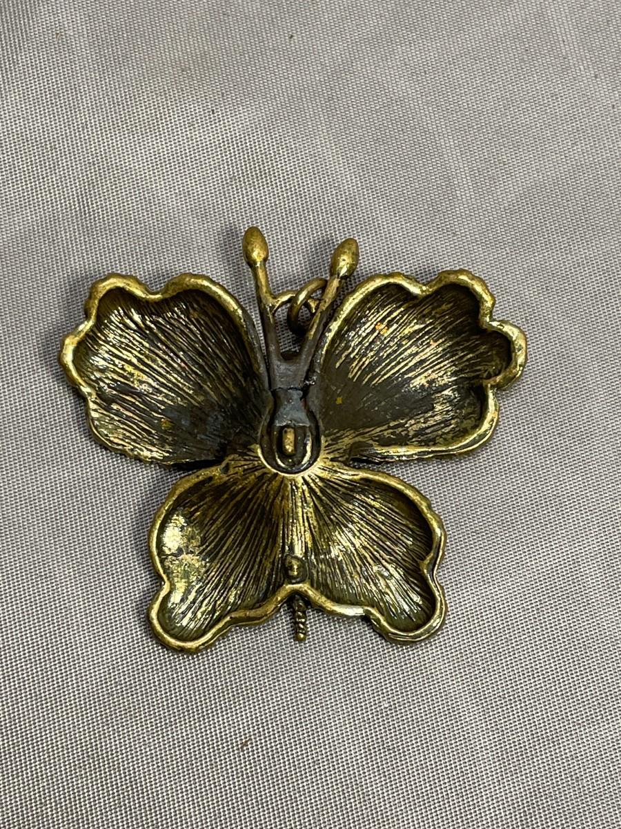 The gold tone wire butterfly near the bottom is marked Monet and the silvertone butterfly to the left of it is marked Sarah Cov. The others are not marked. The very bottom is a pendant and not a brooch.