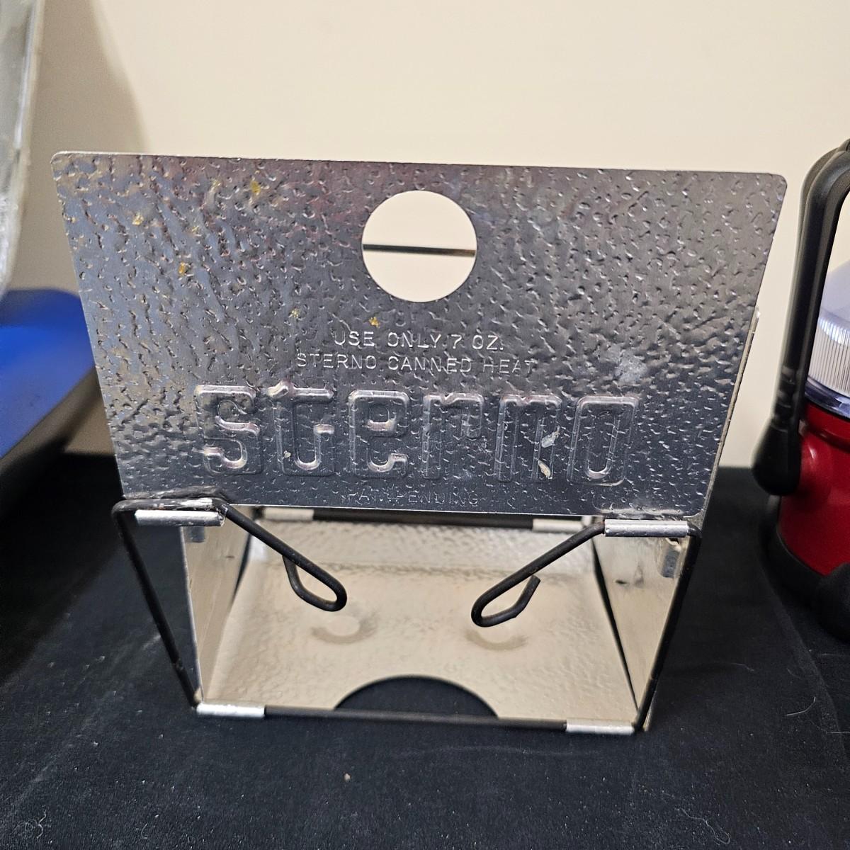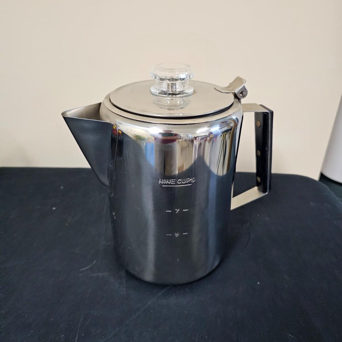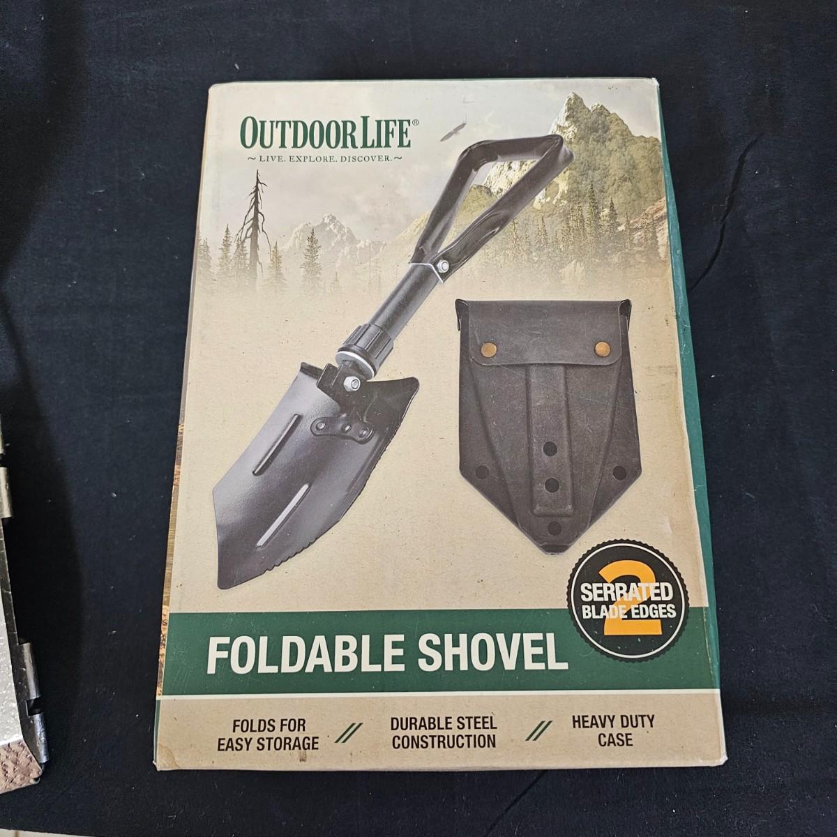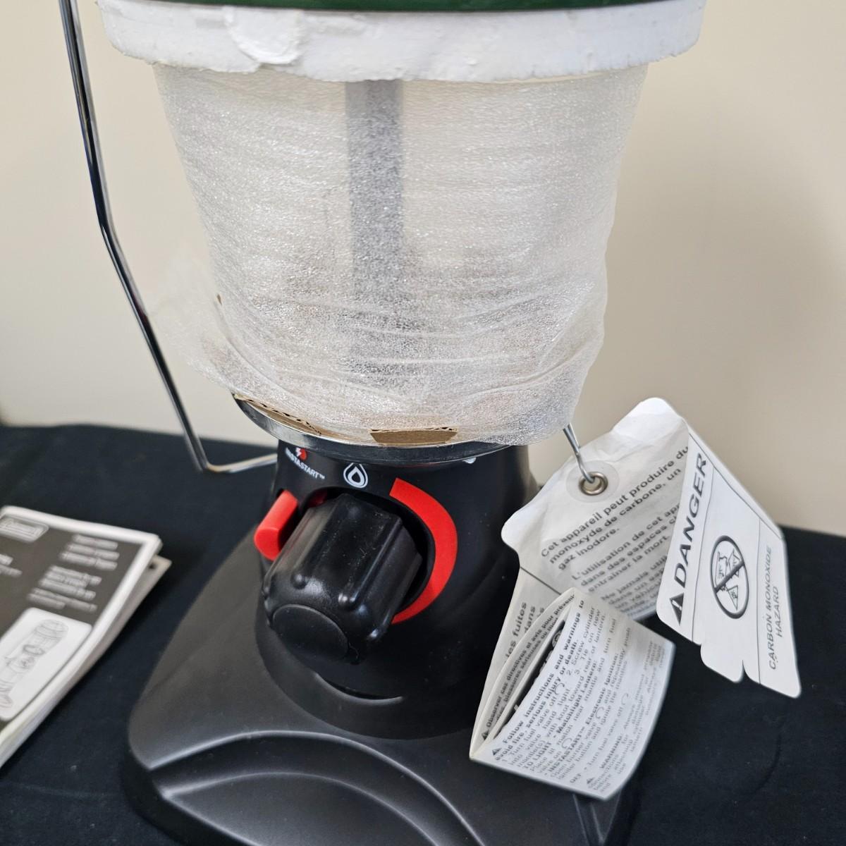 Camp stove, propane lantern, folding shovel, griddle and more. Coleman items include NIB propane stove, propane lantern, set of stainless flatware. Also one Outdoor Life NIB folding camp shovel. An older style stainless percolator coffee pot. Two NIB solar battery chargers. 16" x 10" camp griddle, tablecloth and battery lantern. Propane items not tested as are new. See photos for details. Local pickup only.