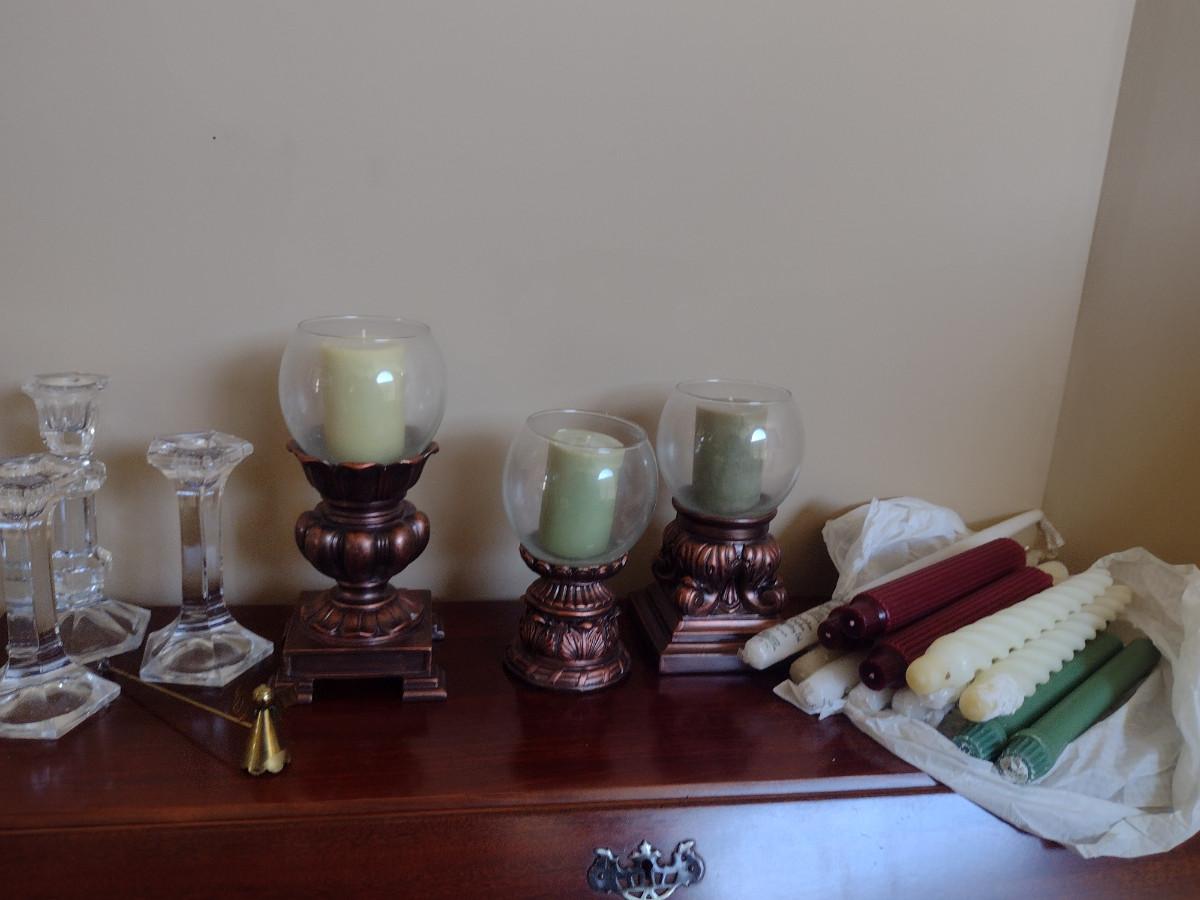 Collection of Candles and Candle Holders