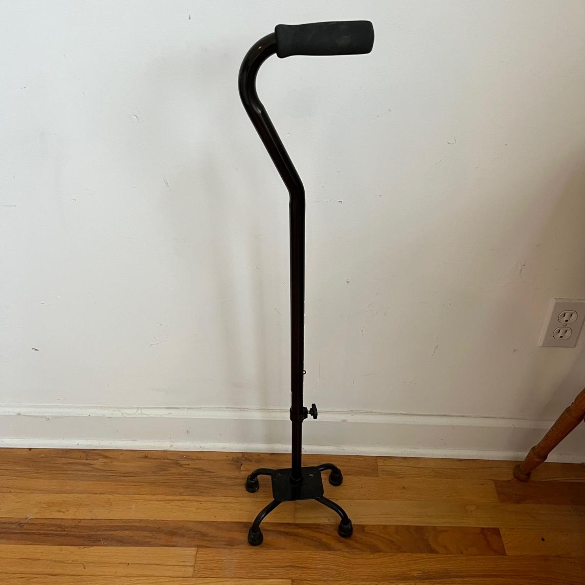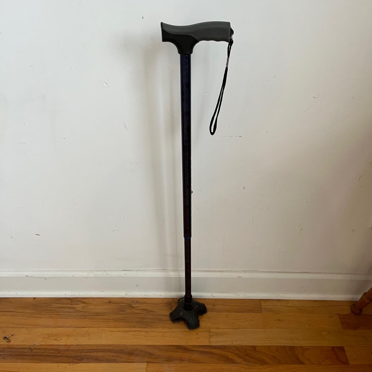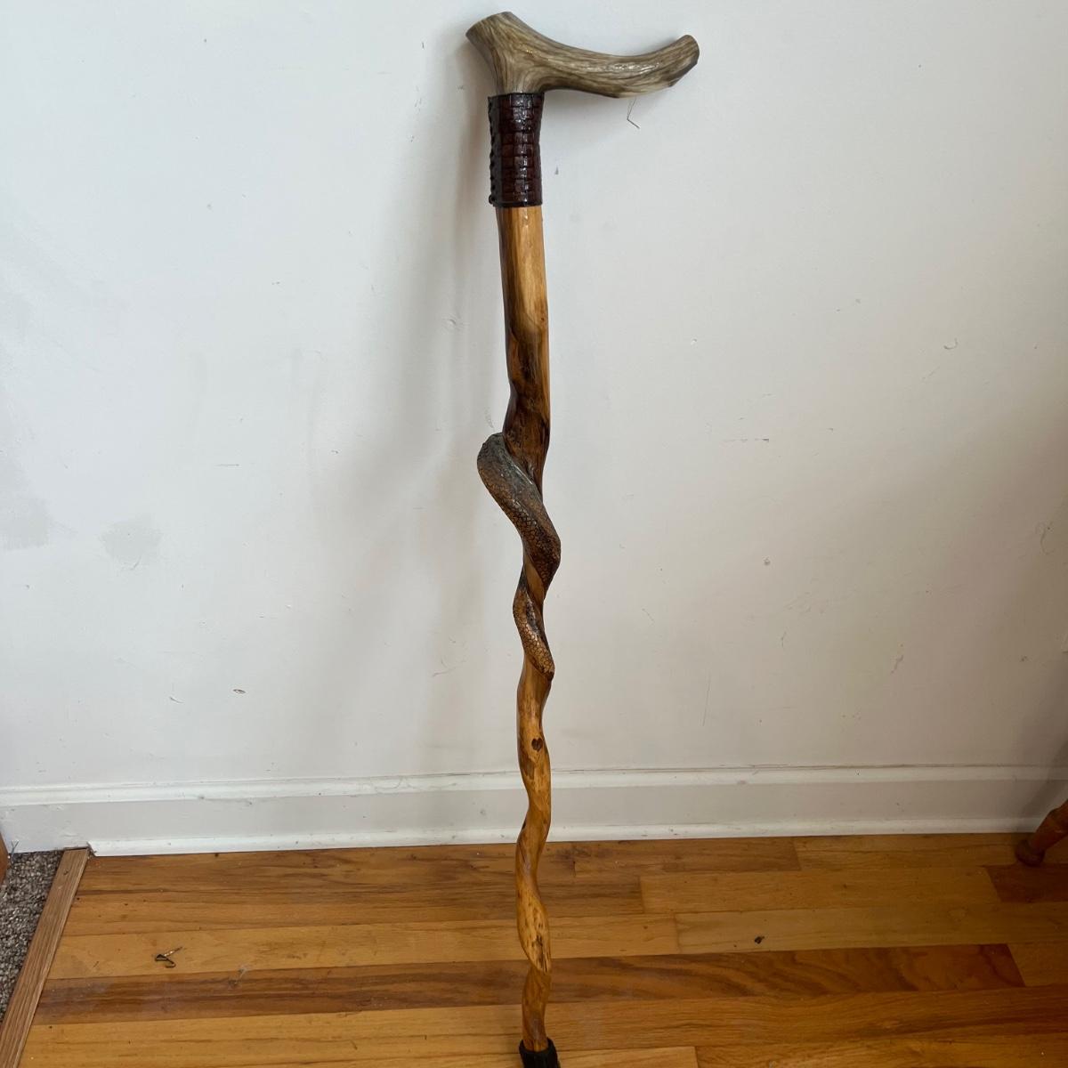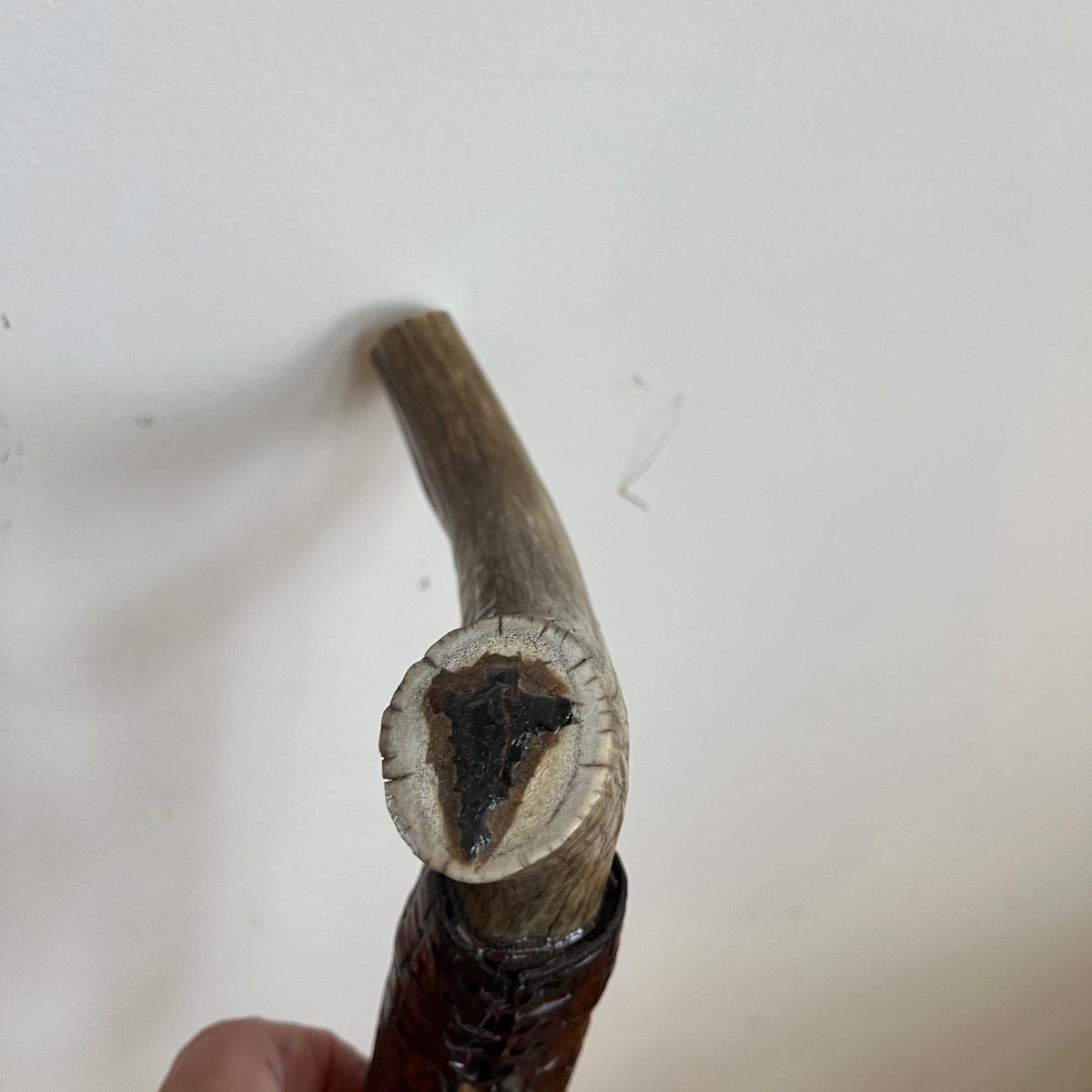 Lot includes a wooden cane with a antler for the handle, and two adjustable height metal canes with stable base.