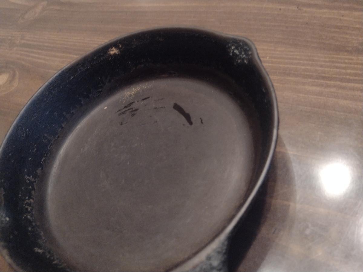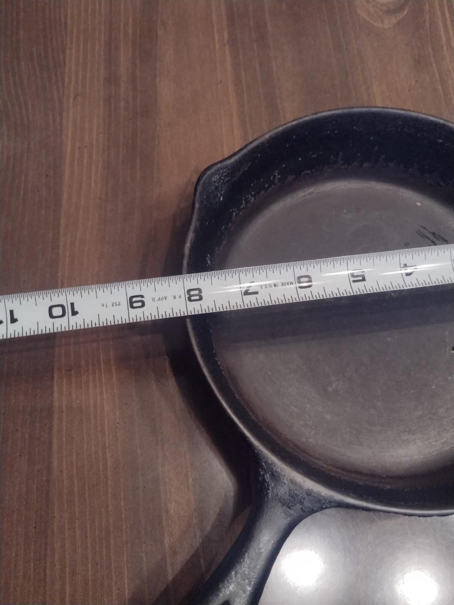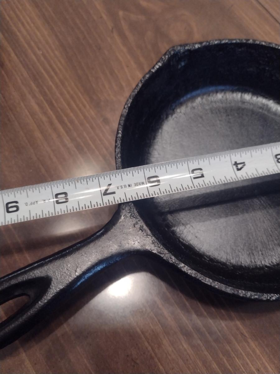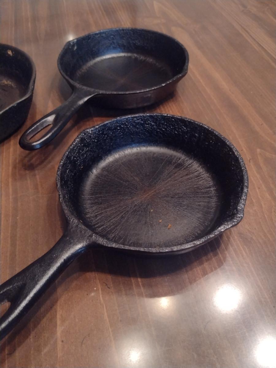 Collection of Cast Iron Skillets- Three Pieces. Two 6 3/4" pans, one 8" pan. Please see all pictures for markings and condition.