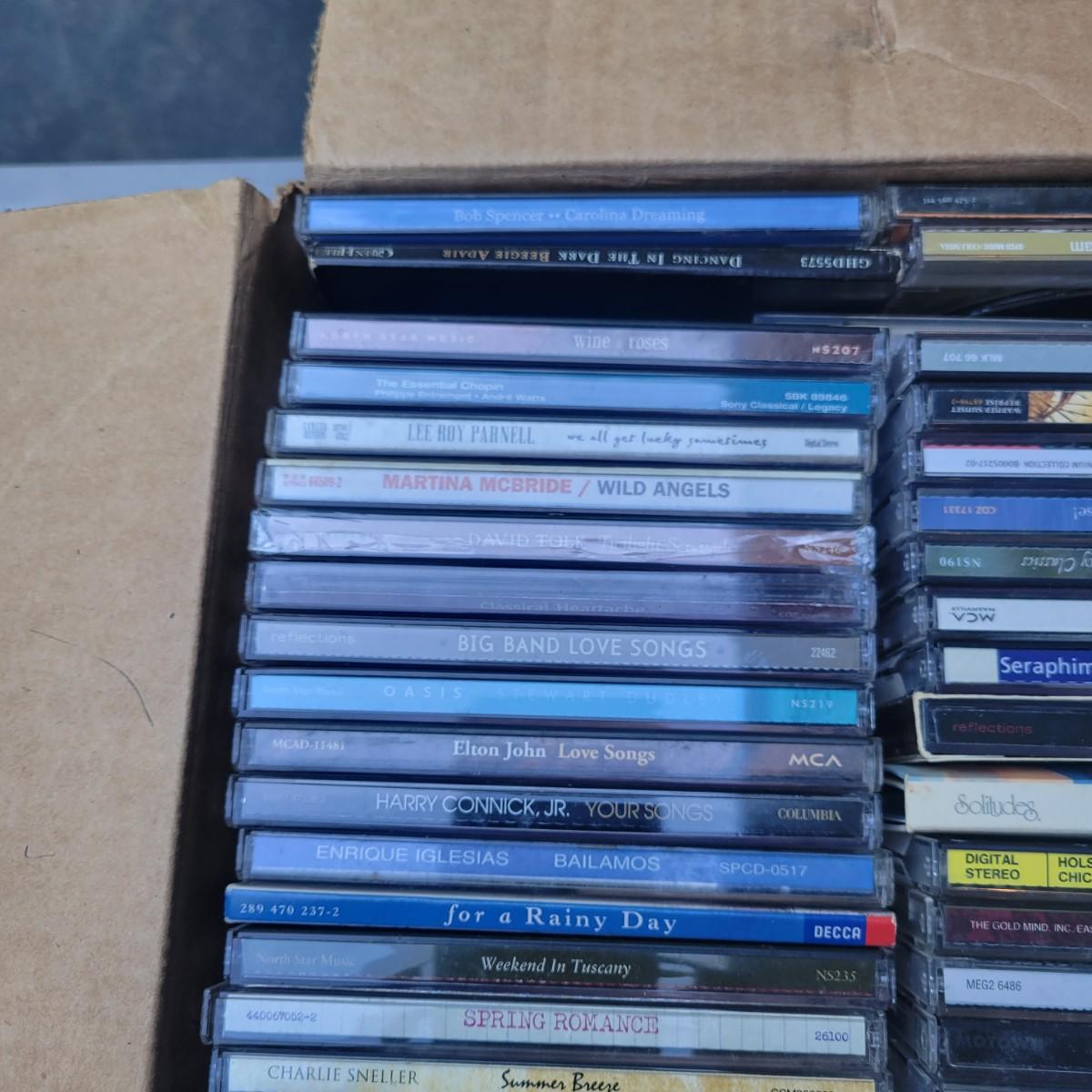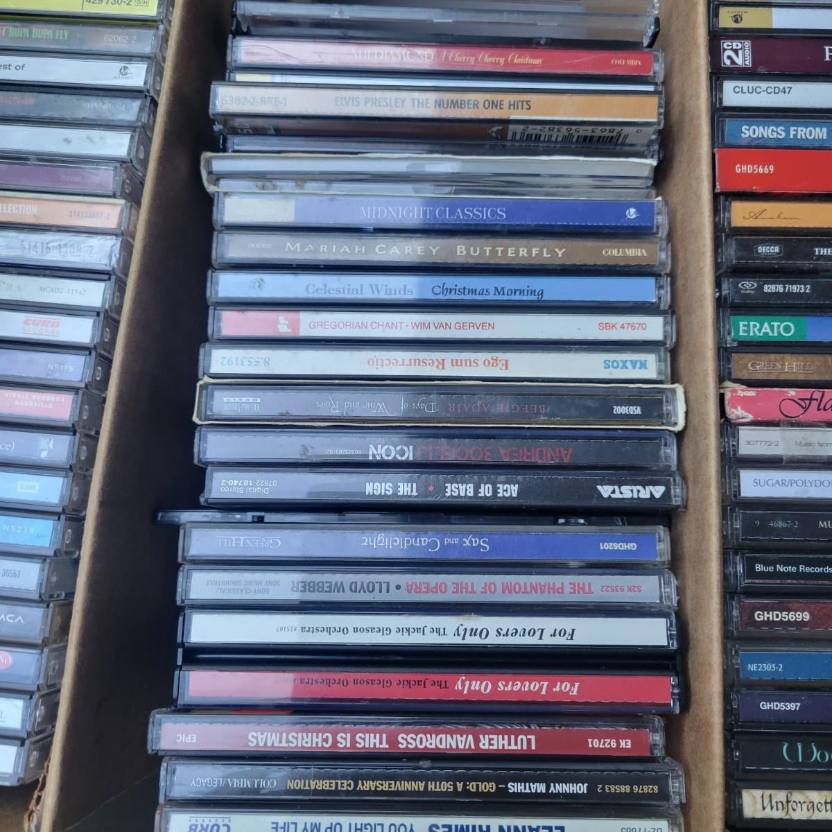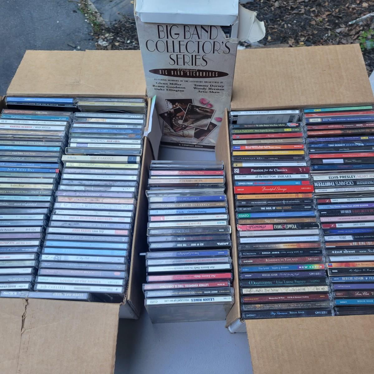 A collection of about 160 CDs. Large range of artists from Elton John, Elvis, and Beethoven. Includes a big band collector series box. Most disks show some use with light scratches. Local pickup only