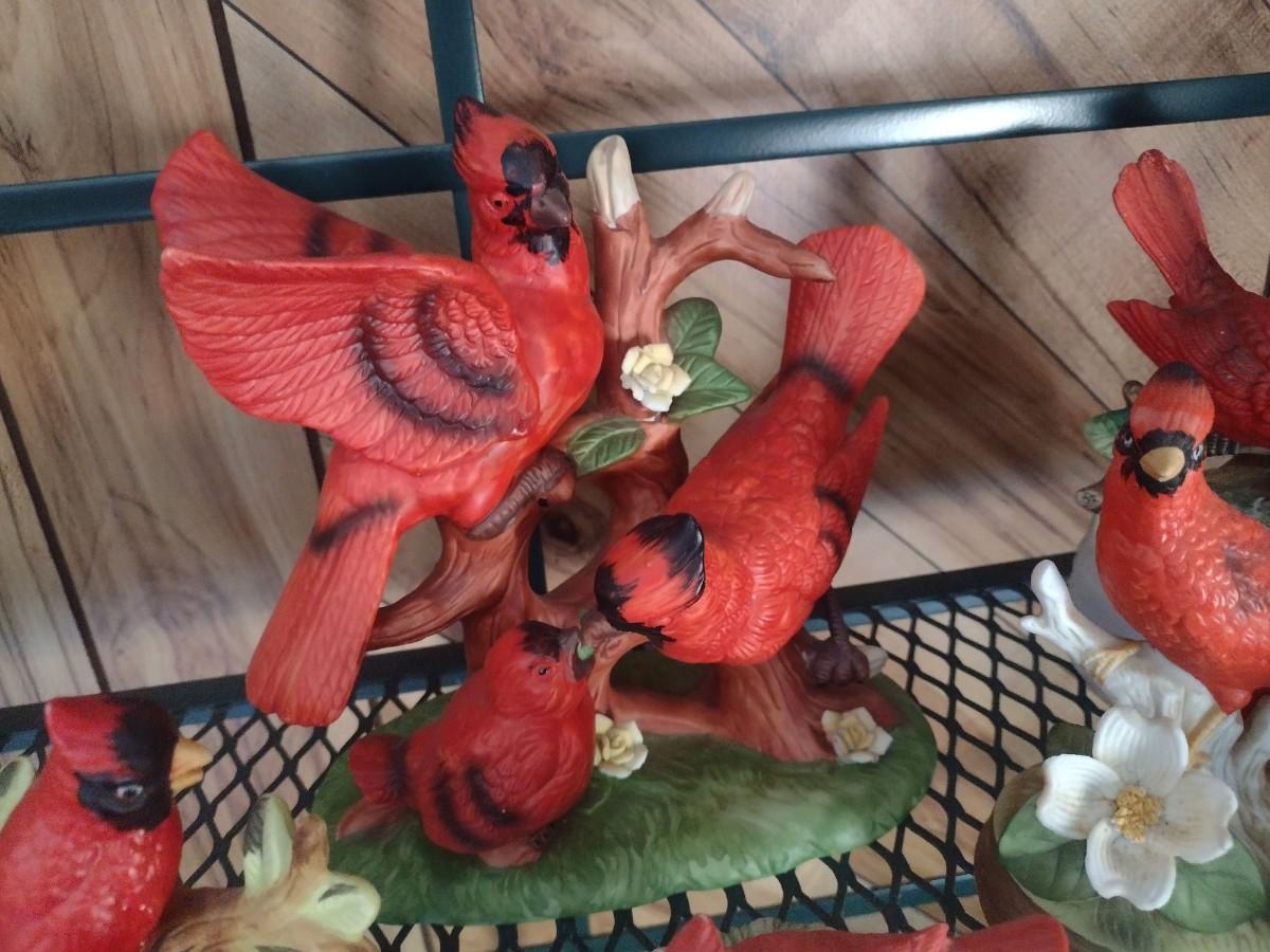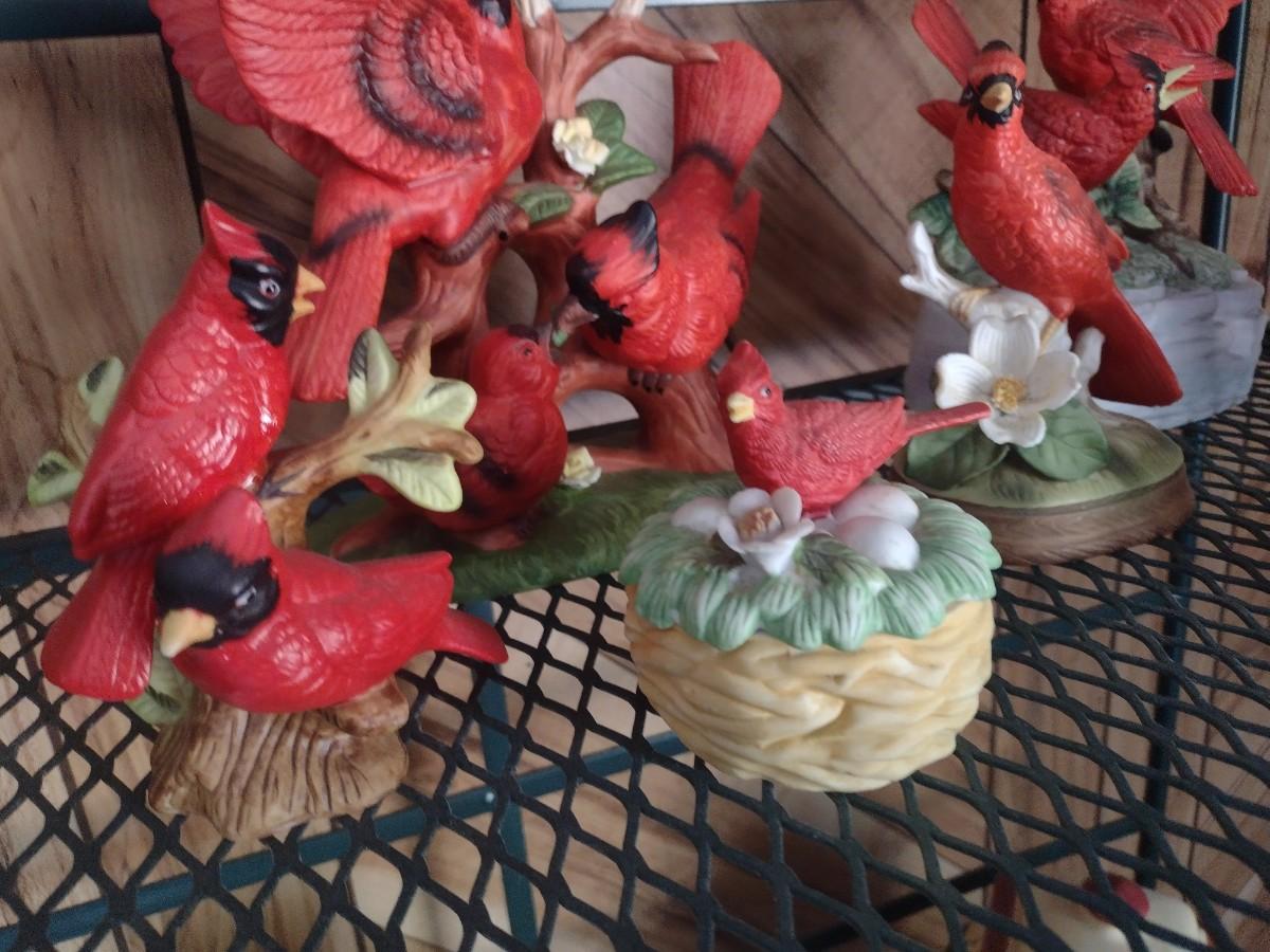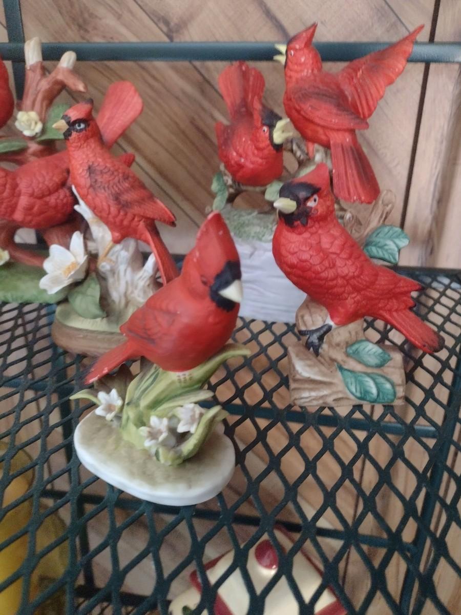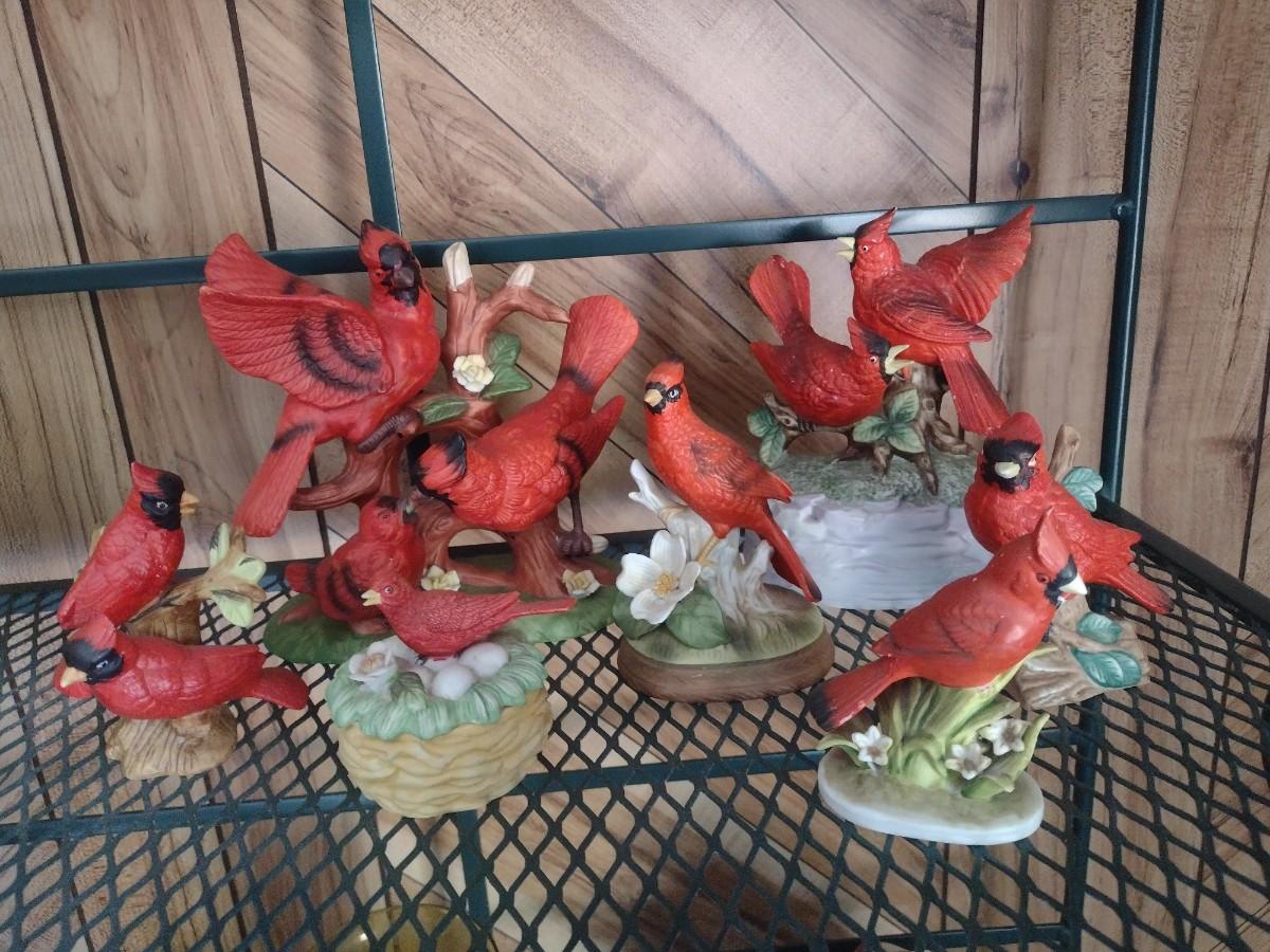 Collection of Ceramic and Composite Cardinal Bird Figurines