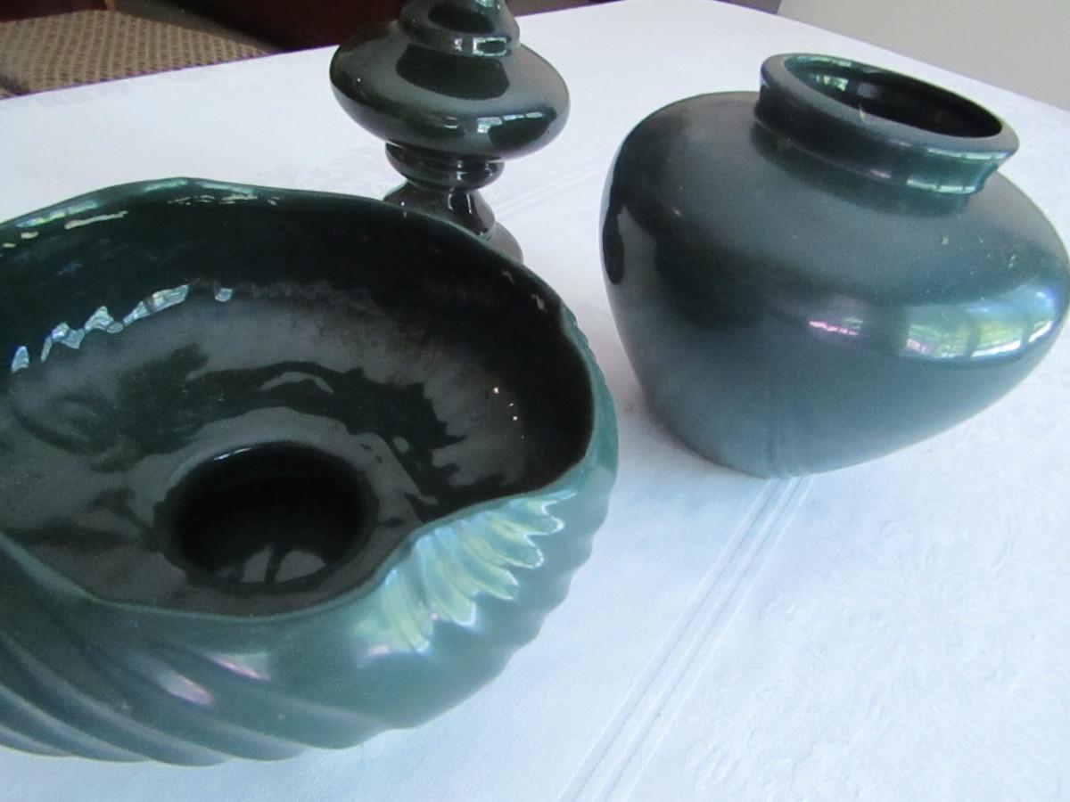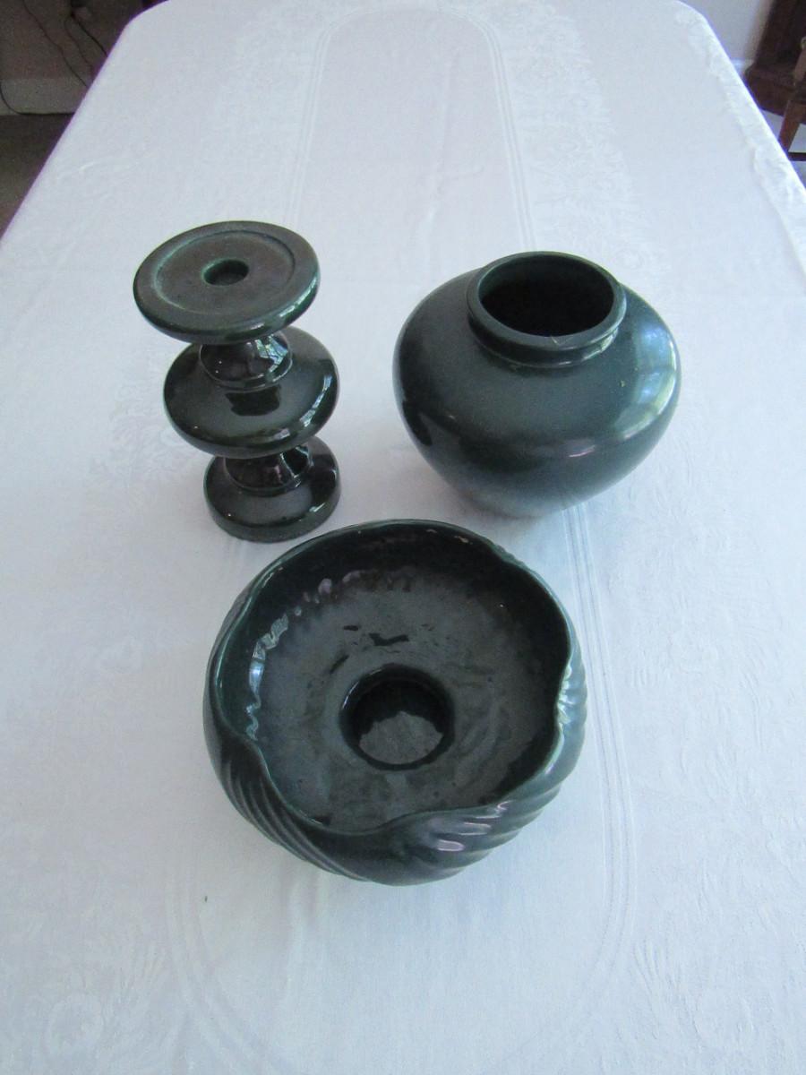 Collection of Ceramic Home Decor. Vase, flower bowl, candle stand.