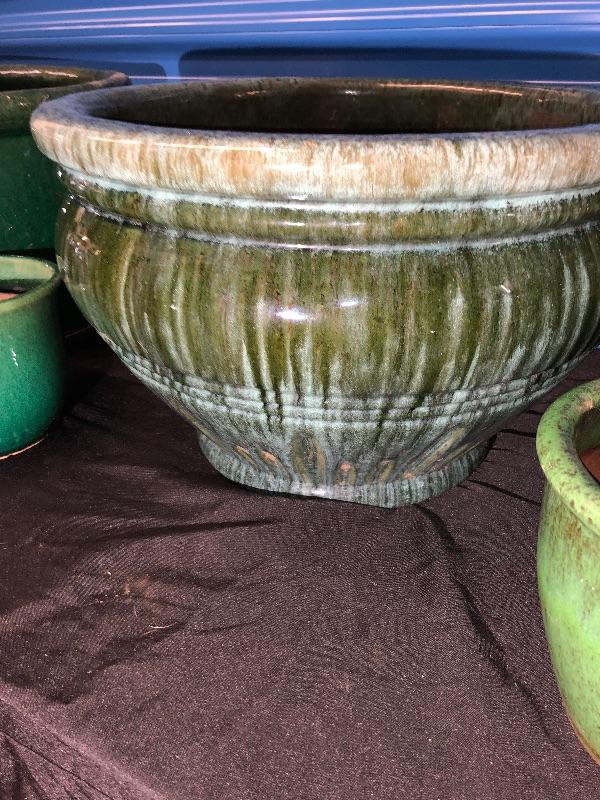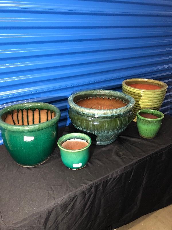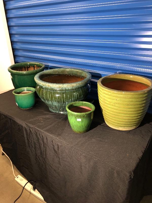 Collection of Ceramic Pots/Planters - Green/Yellow
