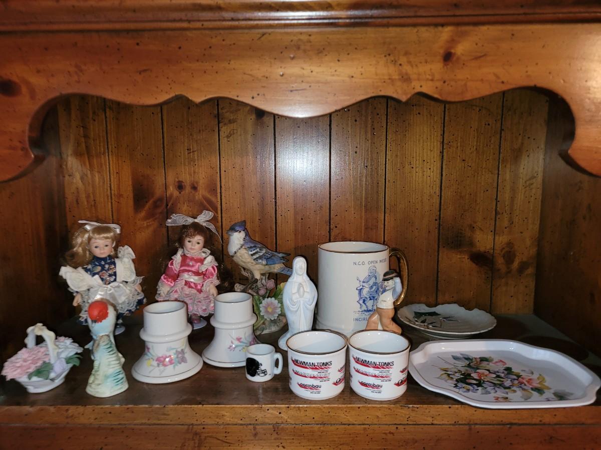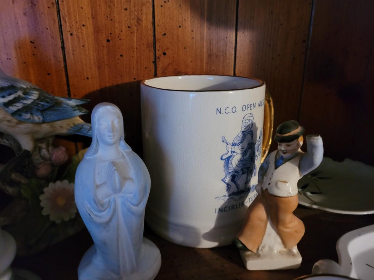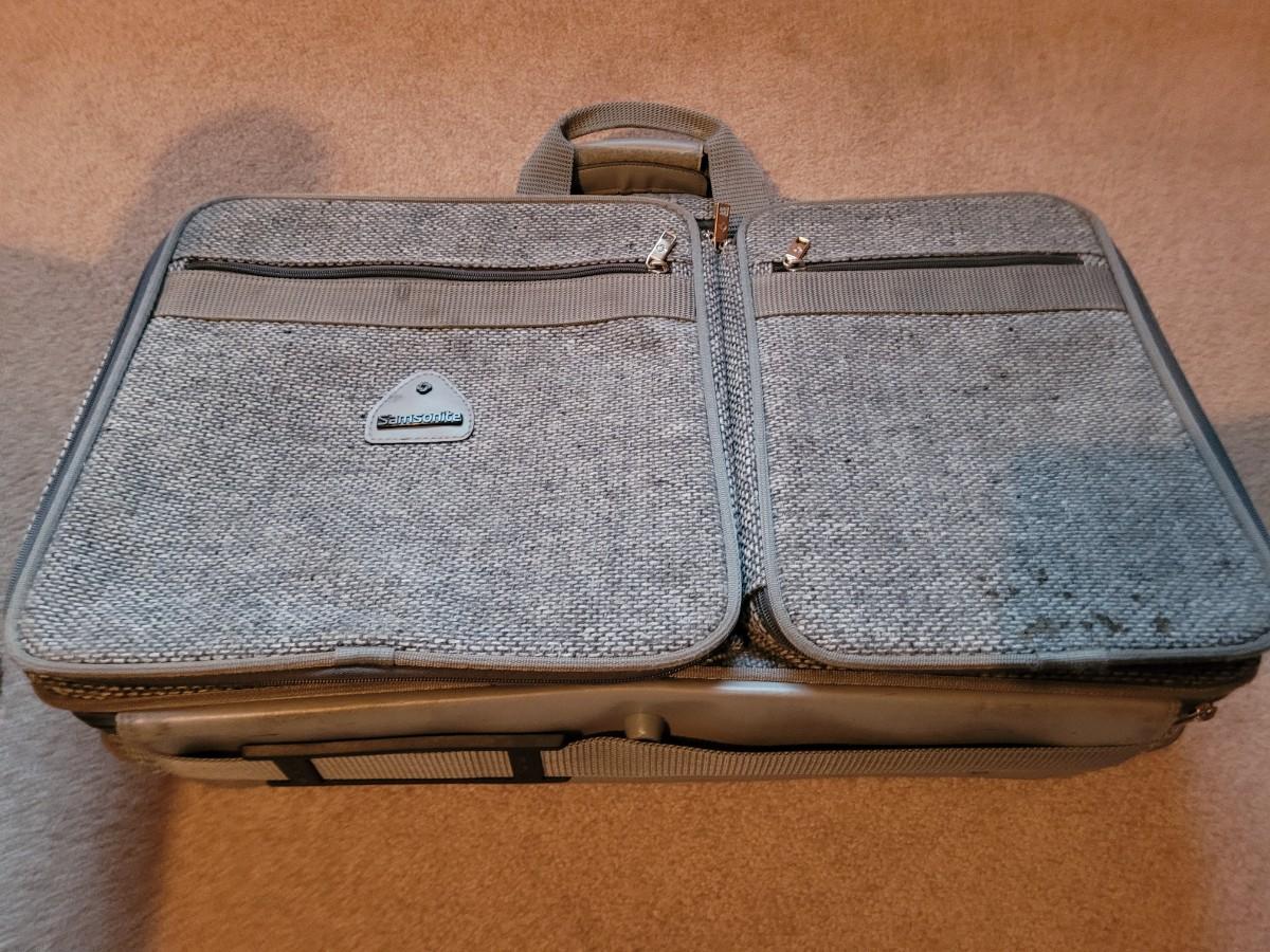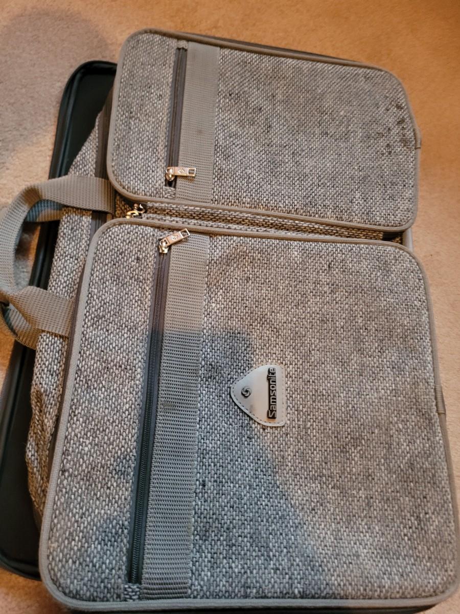 Collection of ceramics in a vintage Samsonite carry on bag