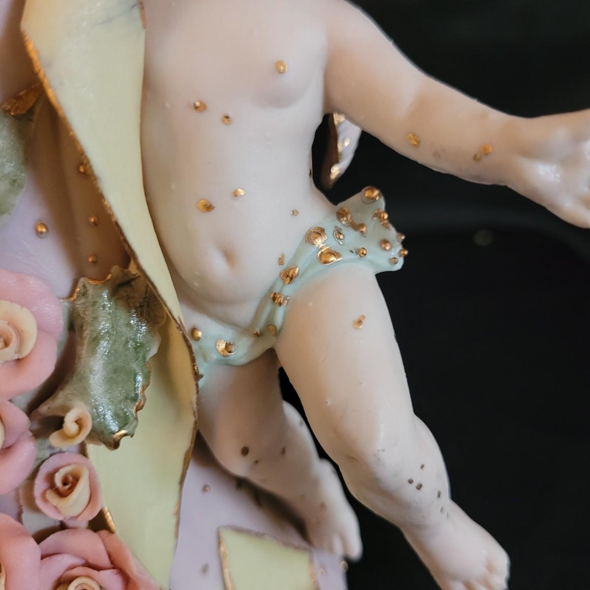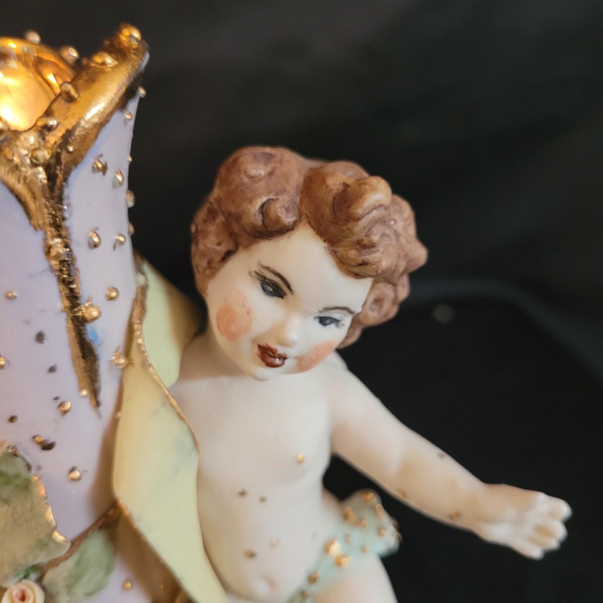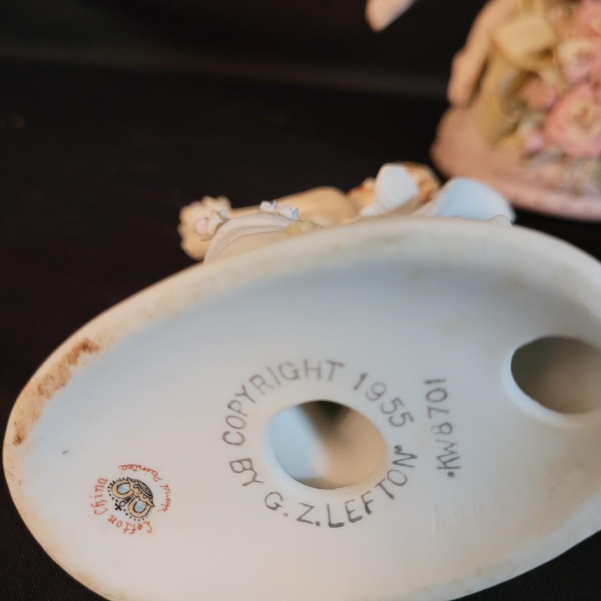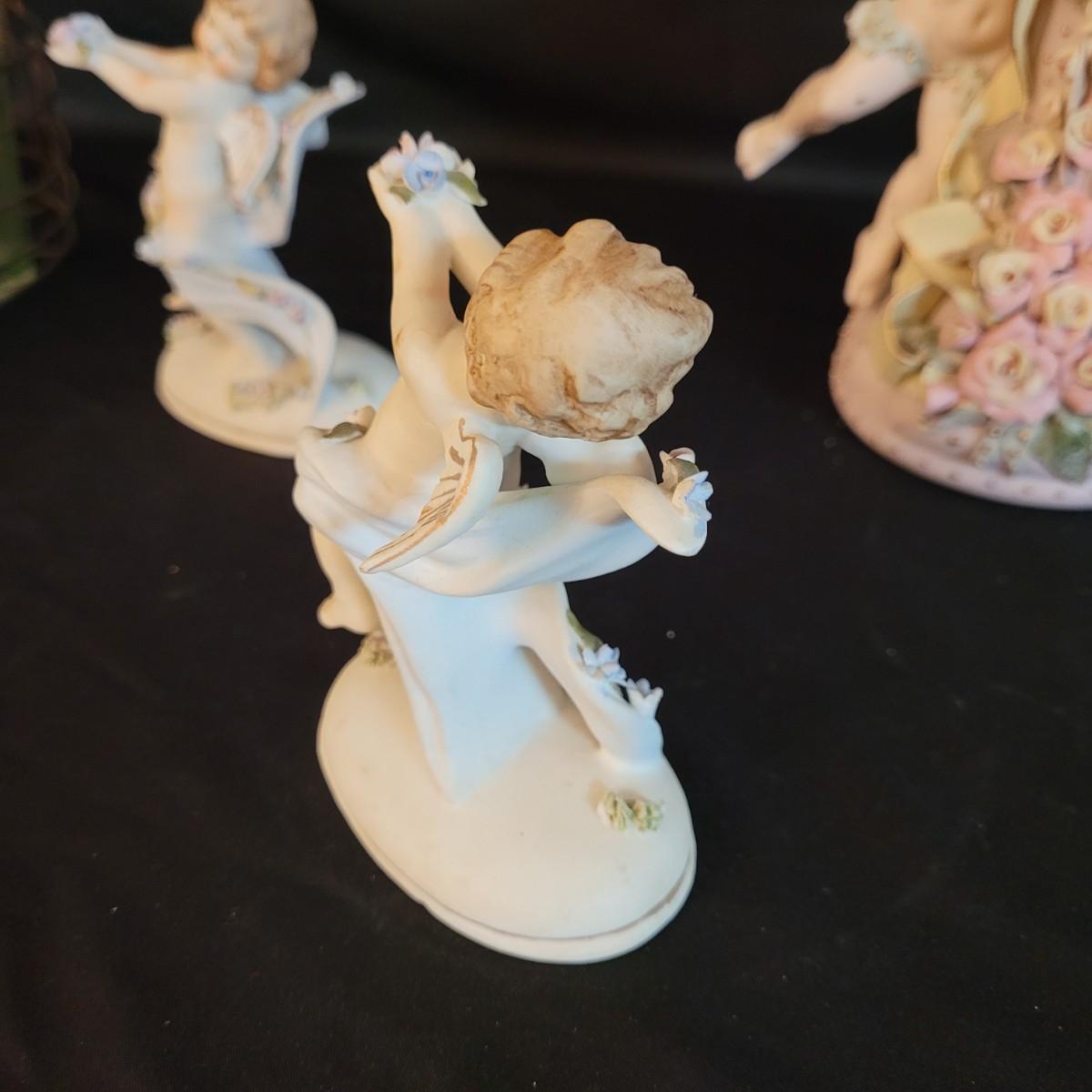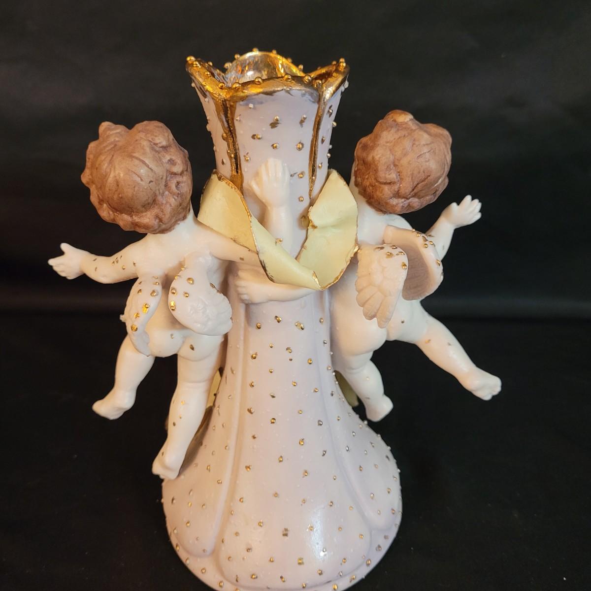A sweet collection of two Lefton cherubs and an ornate vase with intricate floral detail. Vase measures approximately 7.5”H. Shipping available.